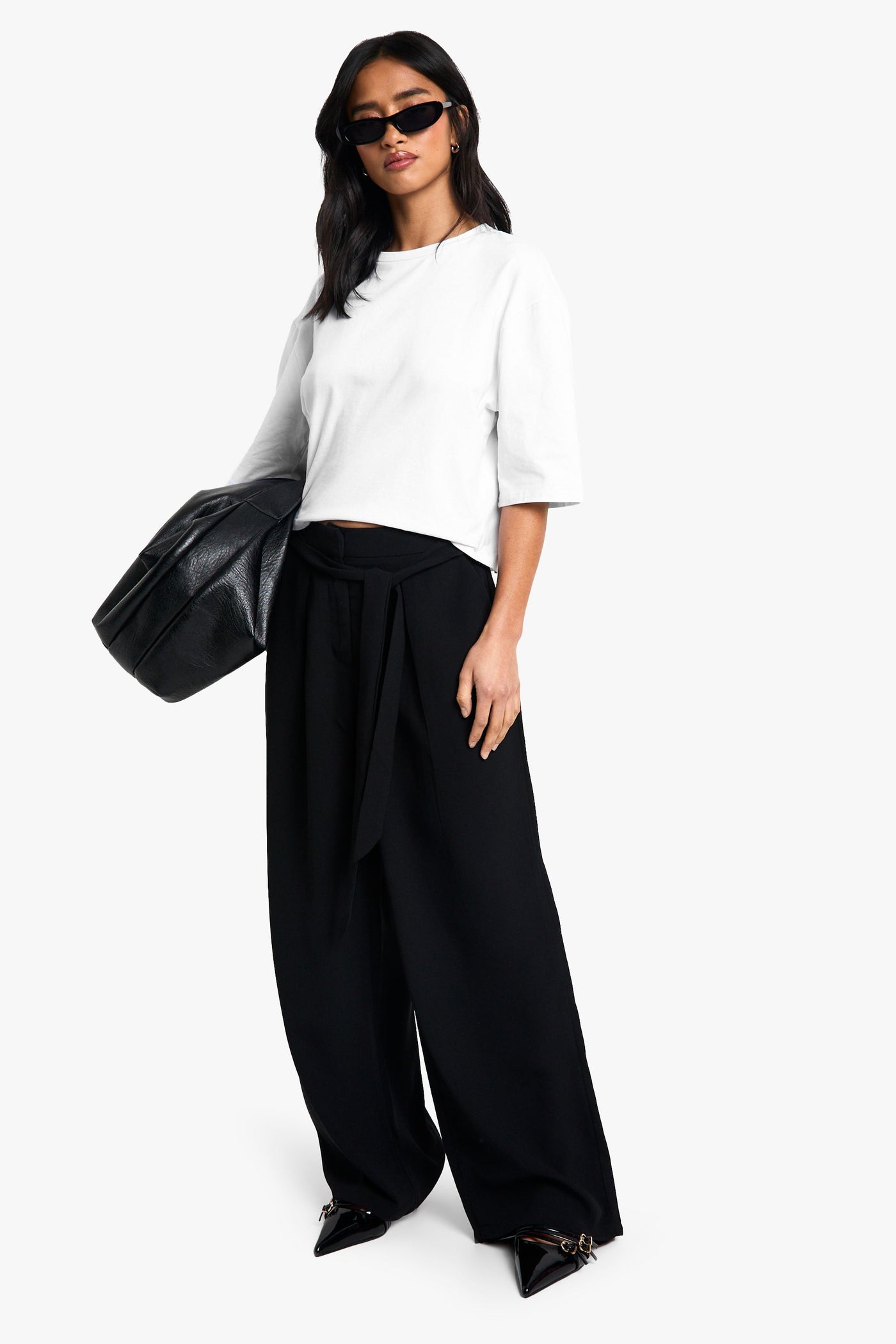 These wide leg trousers with belt detail offer the perfect blend of comfort and contemporary style for the fashion-forward woman. The flowing silhouette creates movement with every step, while the waist-cinching belt adds structure and definition to your look. Pair with a simple fitted top as shown for a balanced silhouette that works brilliantly for casual daytime events. For family gatherings, style with a lightweight blouse and flat mules, or dress down with a cropped tee and trainers for weekend brunches. The versatile design transitions effortlessly from office to evening when paired with the right accessories - try adding statement jewellery and a structured handbag to transform your look. These Boohoo trousers are designed specifically for petite frames, ensuring the proportions complement your silhouette without overwhelming it.Discover Petite Tie Belt Detail Wide Leg Trousers available to buy online at us.boohoo.com. Available with quick delivery and easy return options. Shop now!Discover Petite Tie Belt Detail Wide Leg Trousers available to buy online at us.boohoo.com. Available with quick delivery and easy return options. Shop now!