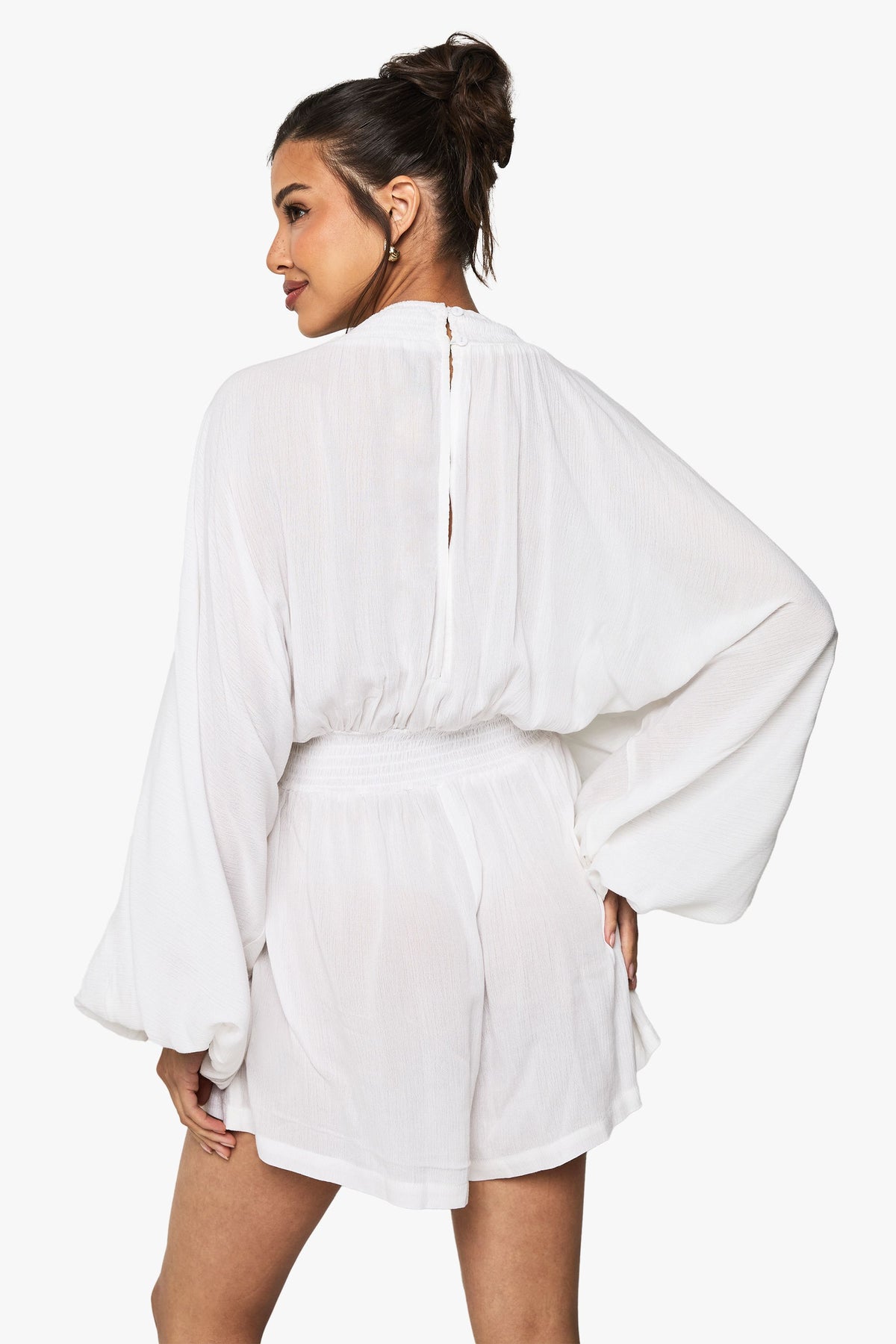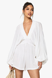 Lightweight cheesecloth playsuit with plunge neckline for a striking silhouette