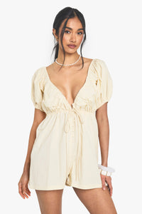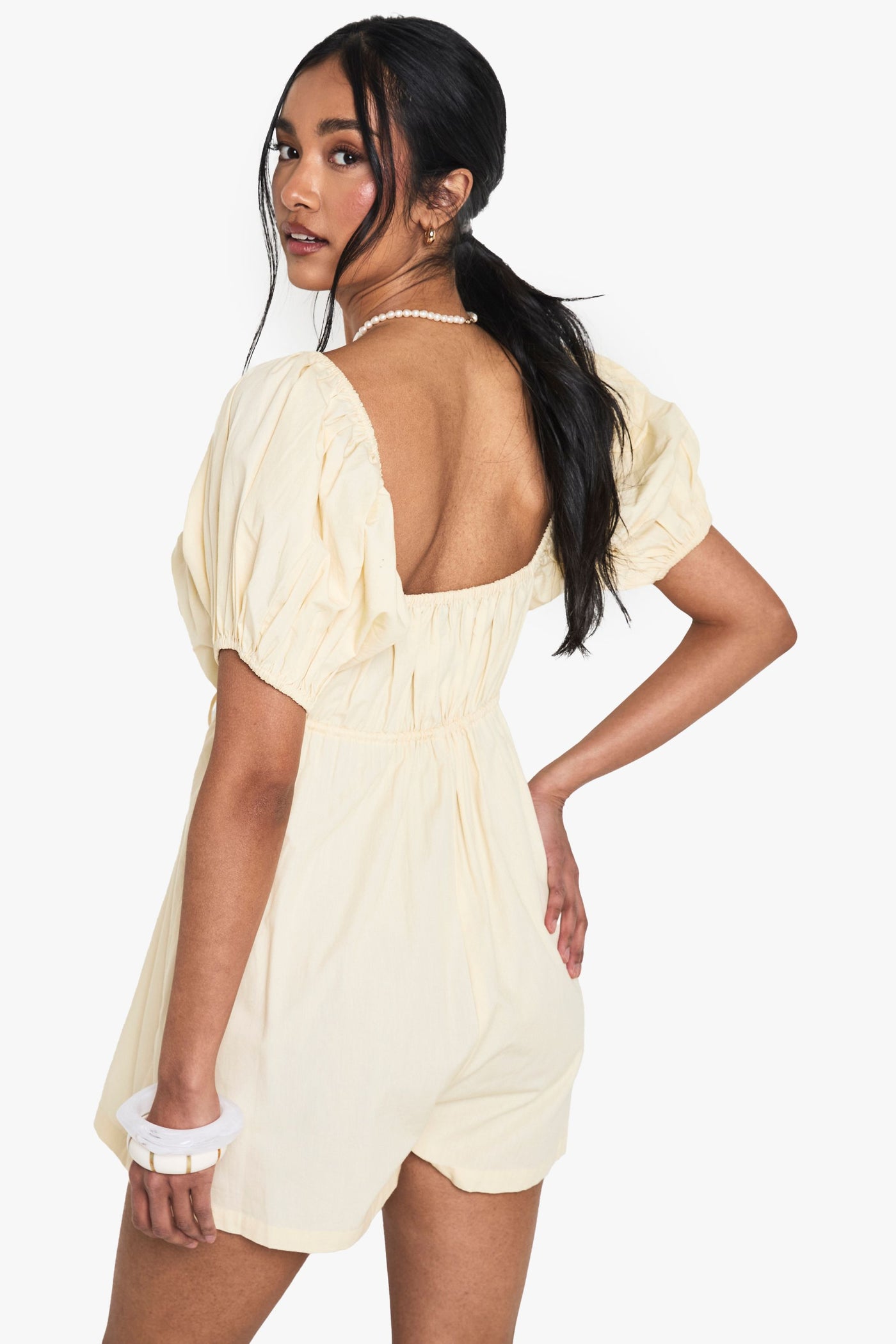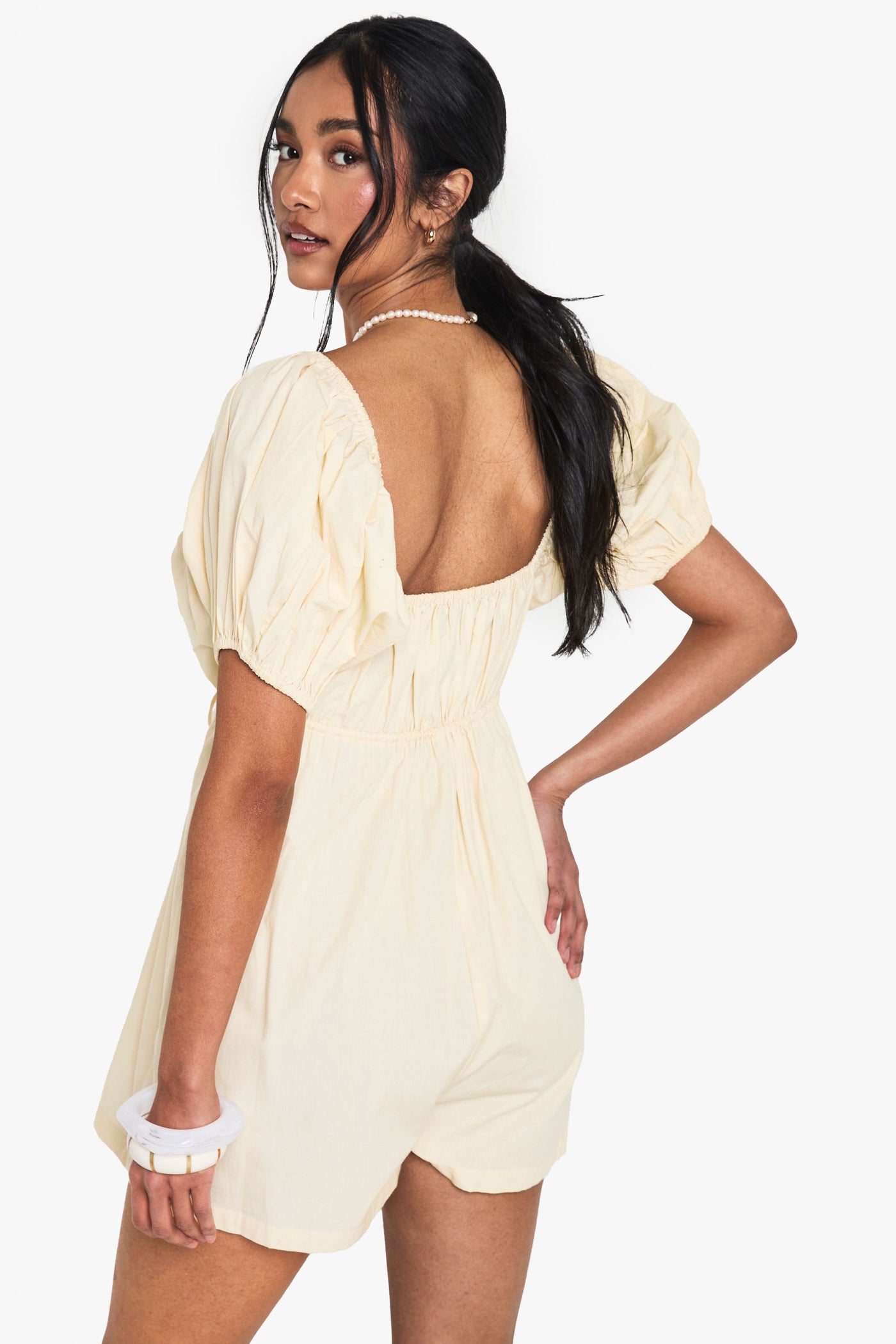 This delightful cotton playsuit from Boohoo captures the essence of carefree summer style with its charming puff sleeves and sweet sweetheart neckline. Perfect for casual outings, the lightweight cotton poplin fabric offers breathable comfort whilst the elasticated back ensures a snug yet comfortable fit. Style with pearl accessories as shown for a touch of elegance, or dress down with white trainers and a crossbody bag for daytime adventures. The versatile design makes it ideal for family barbecues, weekend brunches or casual garden parties. For cooler evenings, layer with an oversized denim jacket and swap your flats for ankle boots to transition seamlessly into night. The playful silhouette strikes the perfect balance between comfort and style, making it a must-have addition to your casual wardrobe.Discover Cotton Poplin Puff Sleeve Playsuit available to buy online at us.boohoo.com. Available with quick delivery and easy return options. Shop now!Discover Cotton Poplin Puff Sleeve Playsuit available to buy online at us.boohoo.com. Available with quick delivery and easy return options. Shop now!