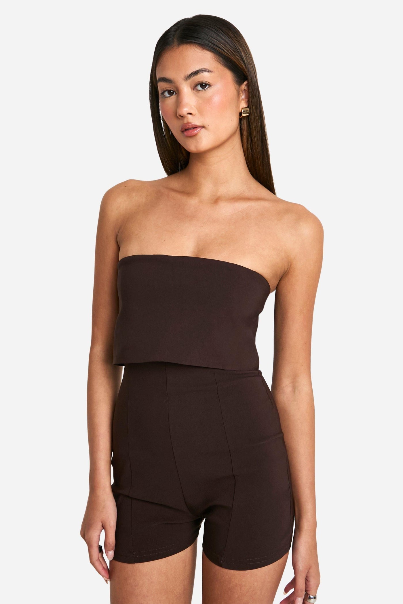 Make a statement in this eye-catching bandeau playsuit, perfect for the fashion-forward woman who loves to stand out. The sleek strapless design showcases your shoulders, while the figure-hugging bengaline fabric ensures a flattering fit that moves with you. Ideal for casual outings or relaxed evenings with friends, this playsuit can be dressed up or down with ease. Pair it with strappy sandals and statement earrings for a day out shopping, or throw on a denim jacket and trainers for a more laid-back look. The versatile style makes it a go-to choice for family gatherings or impromptu catch-ups with mates. With its blend of comfort and style, this playsuit is sure to become a staple in your wardrobe, offering endless styling possibilities for the modern, trend-conscious Boohoo girl.Discover Longline Foldover Bandeau Playsuit available to buy online at us.boohoo.com. Available with quick delivery and easy return options. Shop now!Discover Longline Foldover Bandeau Playsuit available to buy online at us.boohoo.com. Available with quick delivery and easy return options. Shop now!