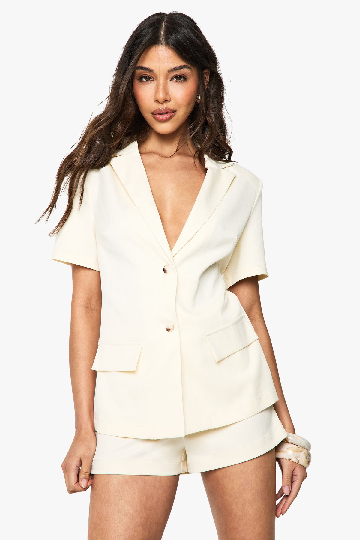 This structured playsuit from Boohoo delivers a contemporary twist on classic tailoring, perfect for making a statement on your next night out. The blazer-inspired top half creates a polished look whilst the shorts offer comfort and freedom of movement. Style with strappy heels and statement bangles as shown for drinks with the girls, or dress it up with metallic accessories and a sleek clutch for more upscale venues. The versatile design transitions effortlessly from sunset cocktails to late-night dancing. For cooler evenings, layer with a lightweight jacket or wear with sheer tights to extend its wearability. The clean lines and tailored silhouette create a refined yet fashion-forward ensemble that's sure to turn heads whilst maintaining that effortless vibe Boohoo is known for.Discover Tailored Short Sleeve Structured Playsuit available to buy online at us.boohoo.com. Available with quick delivery and easy return options. Shop now!Discover Tailored Short Sleeve Structured Playsuit available to buy online at us.boohoo.com. Available with quick delivery and easy return options. Shop now!