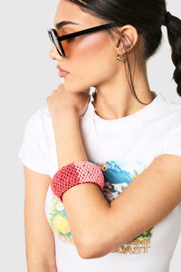 Add a playful touch to your holiday wardrobe with this eye-catching beaded bracelet from Boohoo. The textured outer surface creates visual interest whilst the smooth interior ensures comfort throughout the day. Style with a casual white tee and denim shorts for beachside strolls, or pair with a flowing maxi dress and sandals for evening drinks at sunset. This bracelet works brilliantly as a standalone statement piece but can also be stacked with slimmer bangles or mixed with other textures for a more eclectic look. The chunky design makes it perfect for festival season, whilst its bold aesthetic will complement both minimalist daytime outfits and more glamorous evening ensembles. A versatile accessory that will quickly become your go-to finishing touch for holiday adventures.Discover Beaded Bangle available to buy online at us.boohoo.com. Available with quick delivery and easy return options. Shop now!Discover Beaded Bangle available to buy online at us.boohoo.com. Available with quick delivery and easy return options. Shop now!