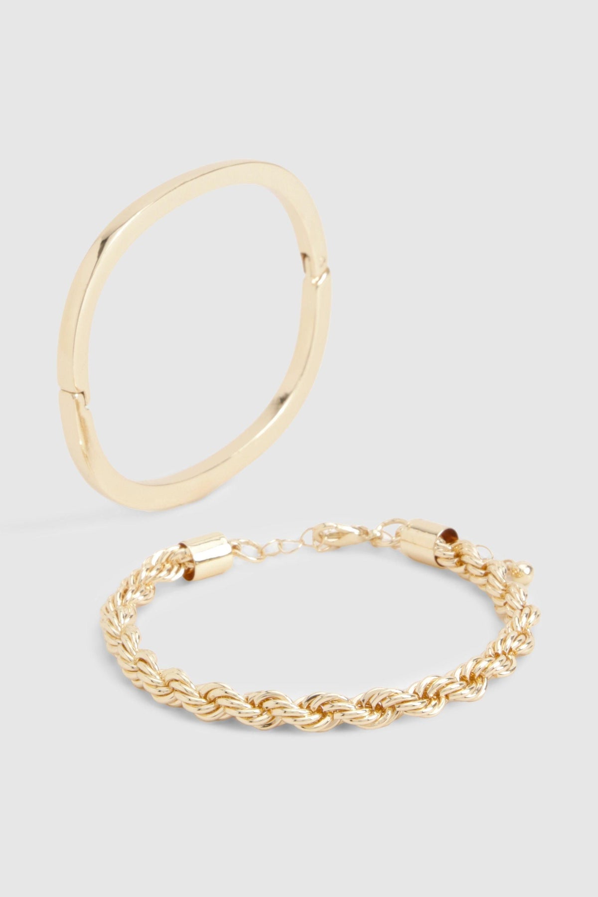 Enhance your accessory collection with this chic necklace and bracelet set from Boohoo. Perfect for the fashion-forward woman who loves to stay on-trend, this duo offers endless styling possibilities. The smooth, minimalist necklace pairs beautifully with the intricately twisted rope-style bracelet, creating a balanced look that's both eye-catching and refined. Ideal for casual outings or family gatherings, these pieces can be worn together for a coordinated appearance or separately to add a touch of glamour to any ensemble. Layer the necklace with other chains for a more dramatic effect, or let the bracelet shine on its own with a simple outfit. The versatility of this set makes it a must-have for those who appreciate adaptable fashion that transitions seamlessly from day to night.Discover Chain And Bangle Set available to buy online at us.boohoo.com. Available with quick delivery and easy return options. Shop now!Discover Chain And Bangle Set available to buy online at us.boohoo.com. Available with quick delivery and easy return options. Shop now!