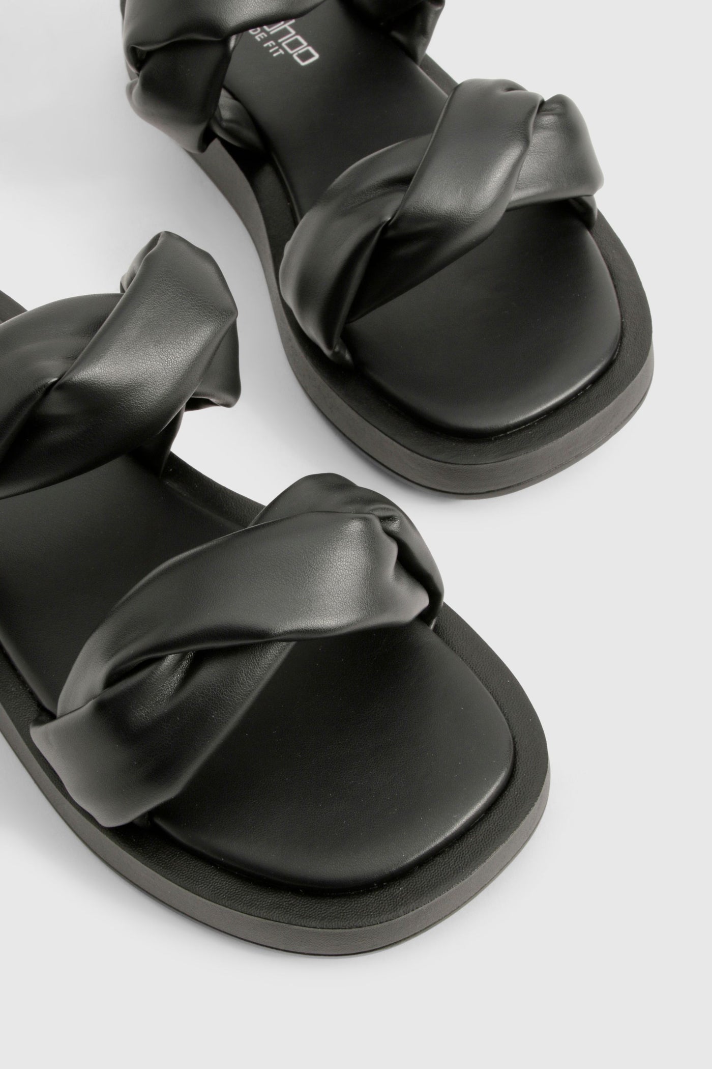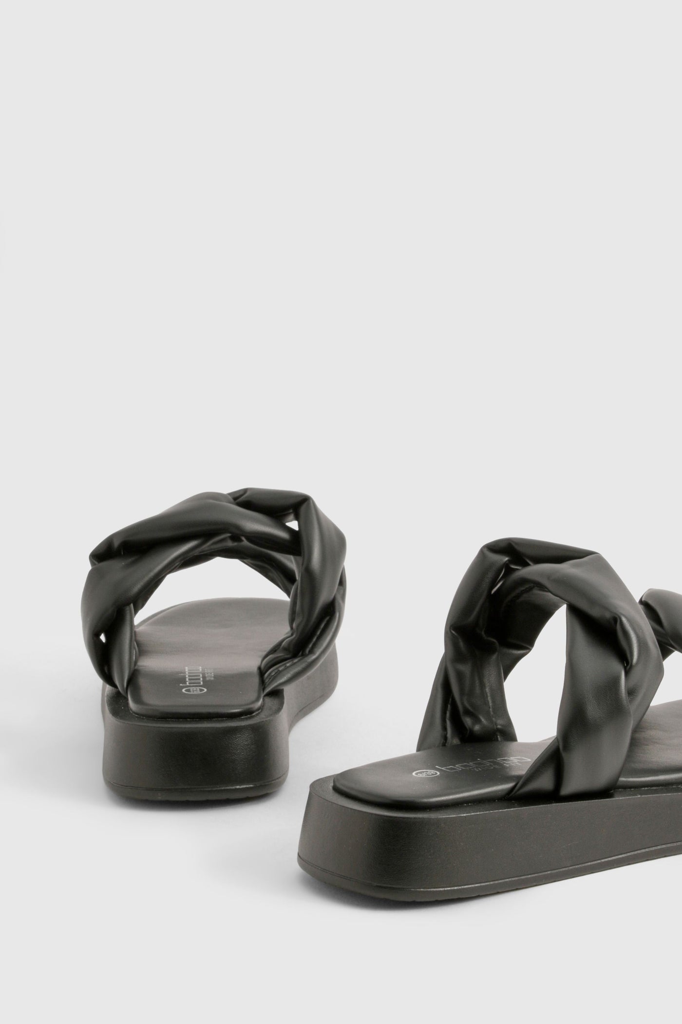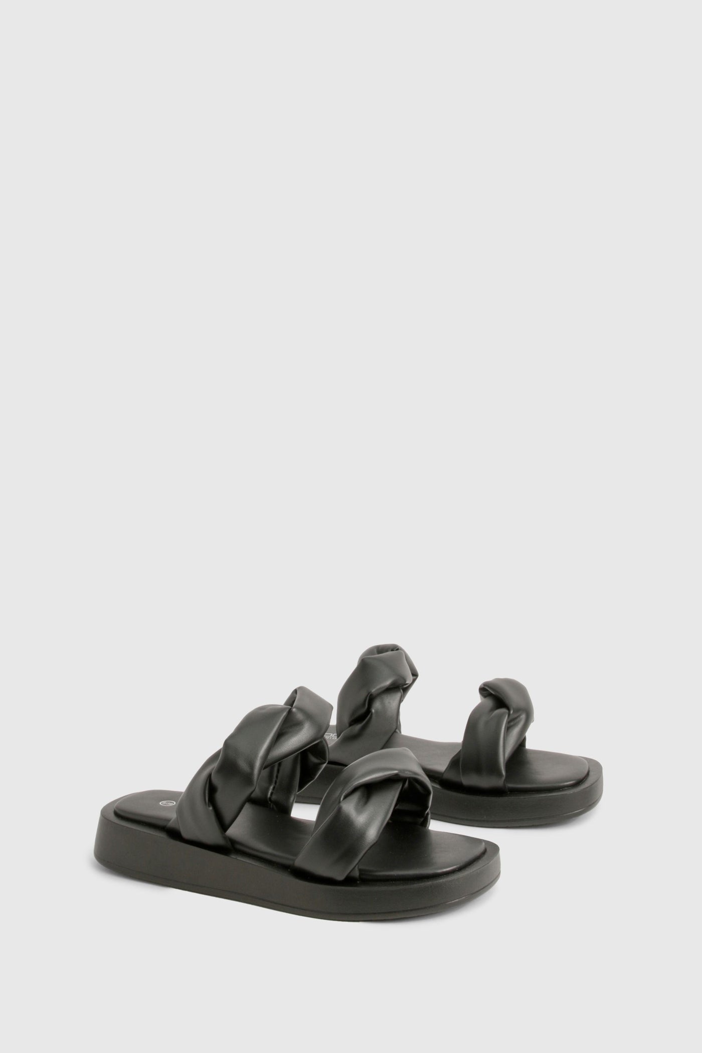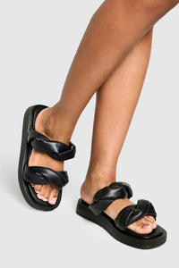 These statement slides redefine casual footwear with their eye-catching twisted strap detail. The wide fit design ensures maximum comfort whilst the flat sole makes them perfect for those busy days when style can't compromise practicality. Pair with cropped wide-leg trousers and an oversized linen shirt for a sophisticated daytime look, or team with a flowing maxi dress for relaxed weekend brunches. The versatile design transitions effortlessly from poolside lounging to casual city strolls. Their minimalist aesthetic works brilliantly with both neutral tones and vibrant outfits, making them a wardrobe essential for the fashion-forward woman who values both comfort and contemporary style. Ideal for family gatherings, festival outings, or holiday explorations when you need footwear that's as reliable as it is stylish.Discover Wide Fit Twist Detail Flatform Slider available to buy online at us.boohoo.com. Available with quick delivery and easy return options. Shop now!Discover Wide Fit Twist Detail Flatform Slider available to buy online at us.boohoo.com. Available with quick delivery and easy return options. Shop now!