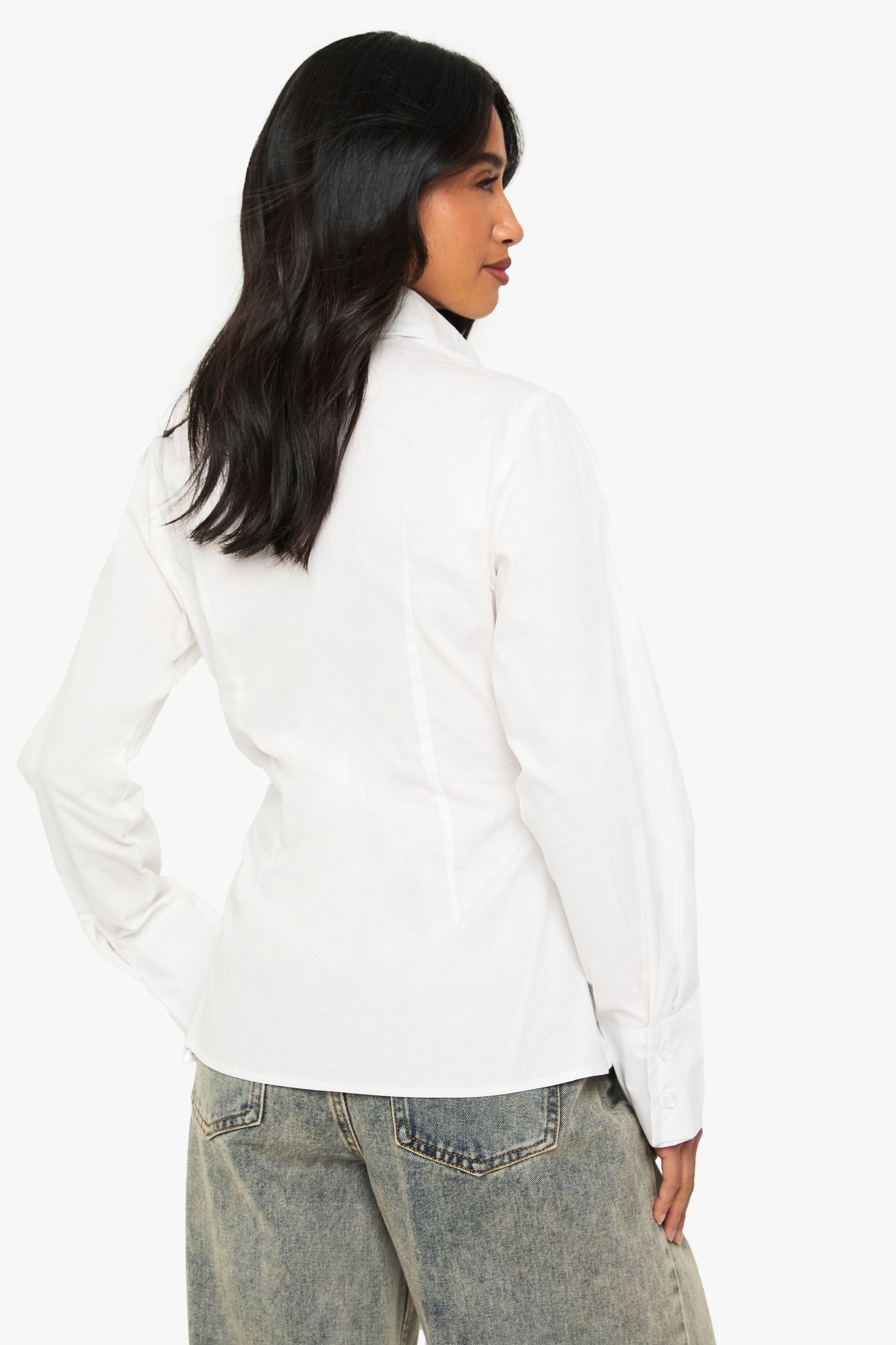This gathered waist shirt combines timeless style with modern detailing, perfect for the fashion-forward woman who values both comfort and trend-led design. The cinched waist creates a feminine shape whilst maintaining the classic appeal of a button-down shirt. Style with acid wash jeans as shown for a contemporary daytime look, or tuck into a denim midi skirt with trainers for weekend brunches. For a smart casual office ensemble, pair with tailored trousers and loafers. The crisp cotton construction makes this piece ideal for layering under jumpers during cooler months, while it stands beautifully on its own for warmer days. A true wardrobe essential that transitions effortlessly from casual coffee dates to family gatherings with just a simple change of accessories.Discover Petite Longline Cinched Waist Shirt available to buy online at us.boohoo.com. Available with quick delivery and easy return options. Shop now!Discover Petite Longline Cinched Waist Shirt available to buy online at us.boohoo.com. Available with quick delivery and easy return options. Shop now!
