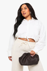 Plus Cotton Tie Detail Button Shirt