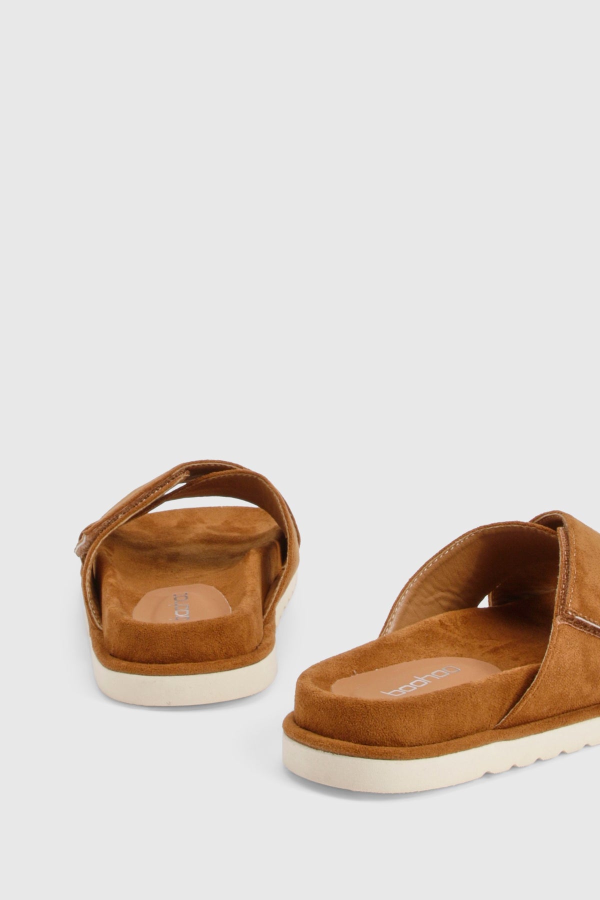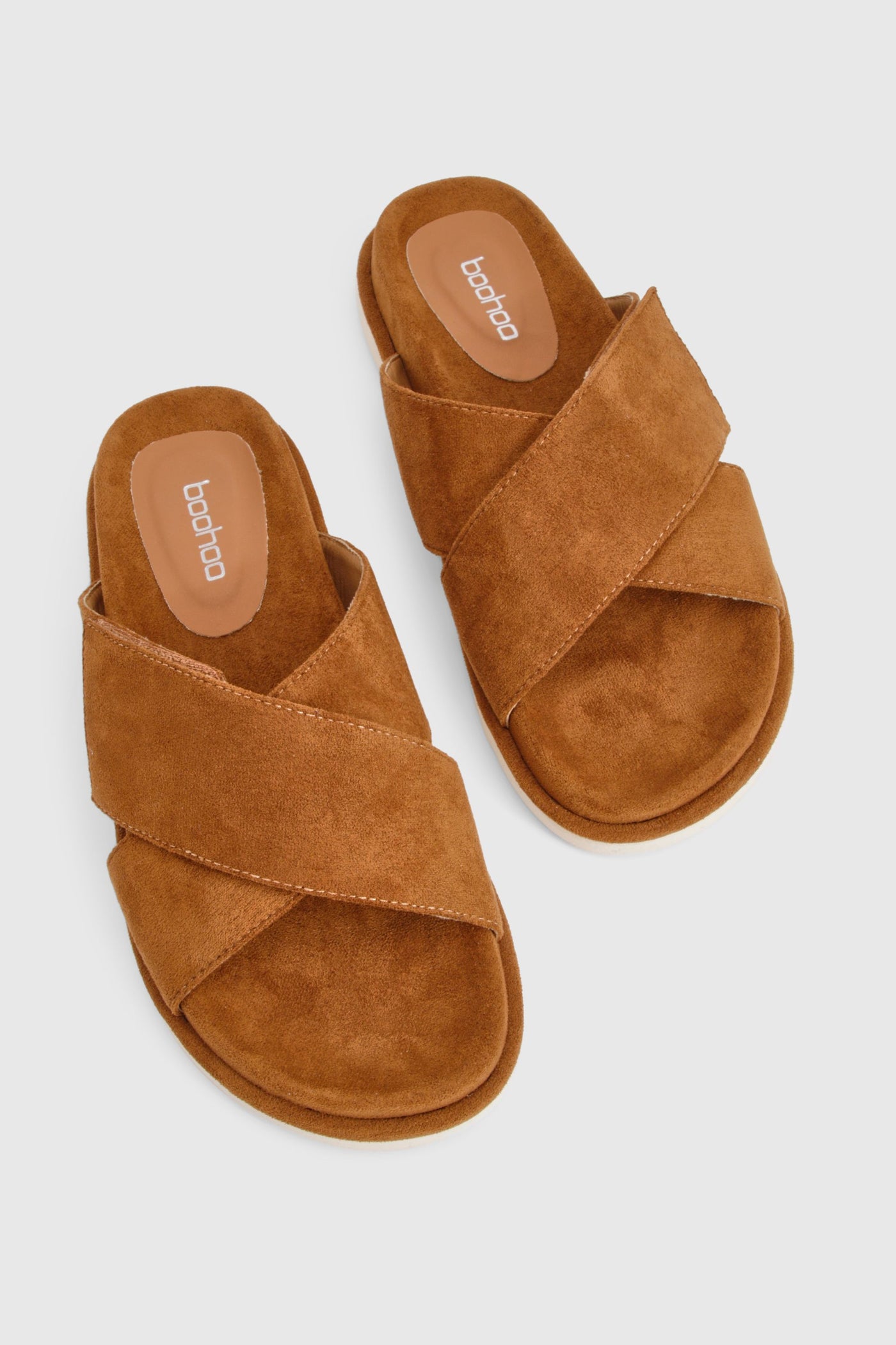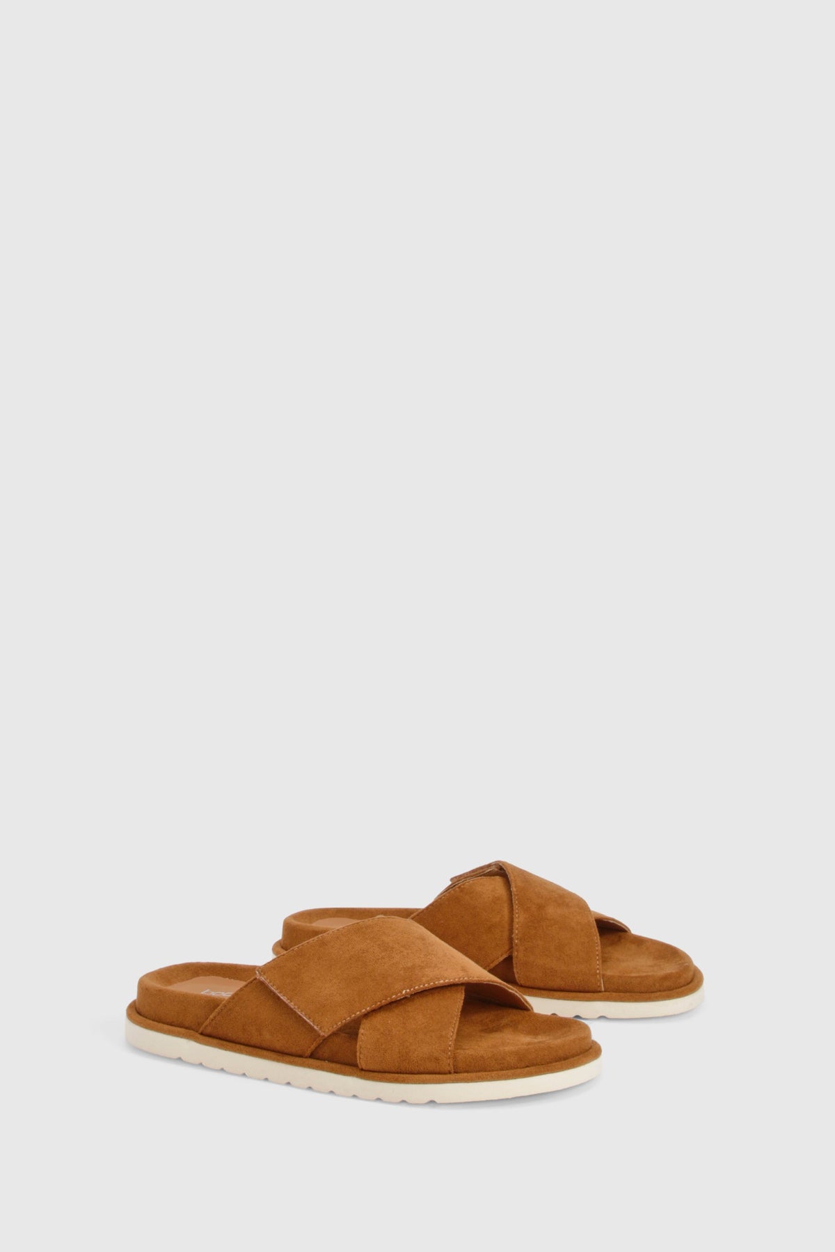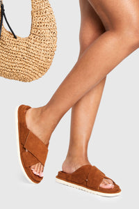 These cross strap footbed sliders from Boohoo combine comfort and style for your casual summer wardrobe. The distinctive cross strap design creates visual interest whilst maintaining the relaxed vibe essential for warm-weather dressing. Pair with cropped linen trousers and an oversized shirt for a sophisticated daytime look, or team with a floaty midi dress for garden parties and barbecues. The contrast white sole adds a contemporary touch to these versatile sliders, making them perfect for beach holidays, city breaks or simply lounging in the garden. Their slip-on nature means they're ideal for quick outfit changes, whilst the cushioned footbed ensures comfort for sightseeing or casual strolls. A summer essential that works beautifully with both casual and slightly dressier daytime ensembles.Discover Faux Suede Cross Strap Footbed Sliders available to buy online at us.boohoo.com. Available with quick delivery and easy return options. Shop now!Discover Faux Suede Cross Strap Footbed Sliders available to buy online at us.boohoo.com. Available with quick delivery and easy return options. Shop now!