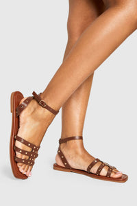 These striking studded sandals blend practicality with statement style. The classic gladiator-inspired design features multiple straps adorned with metallic studs that catch the light as you move, adding a touch of attitude to your summer wardrobe. Perfect for casual daytime wear, they pair brilliantly with frayed denim shorts and an oversized linen shirt for weekend brunches or beachside strolls. The adjustable ankle strap ensures a secure fit whilst the flat sole provides comfort for all-day adventures. For festival season, style with a flowing midi dress and crossbody bag, or team with cropped trousers and a simple tee for family gatherings. These versatile sandals transition effortlessly from daytime casual to relaxed evening drinks, making them an essential addition to your summer footwear collection.Discover Studded 2 Part Sandals available to buy online at us.boohoo.com. Available with quick delivery and easy return options. Shop now!Discover Studded 2 Part Sandals available to buy online at us.boohoo.com. Available with quick delivery and easy return options. Shop now!