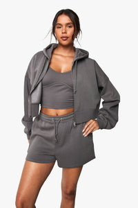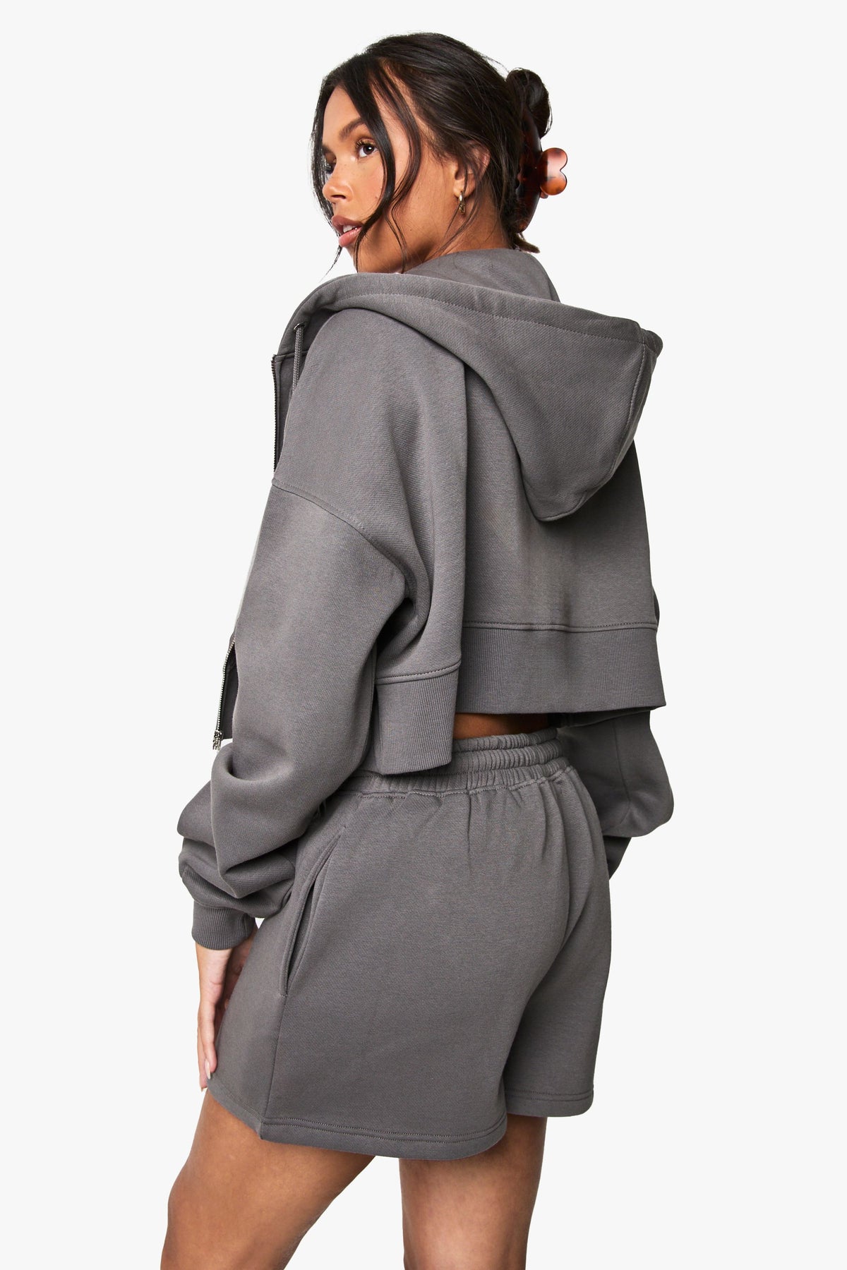 Cropped zip-up hoodie with matching shorts for a coordinated look