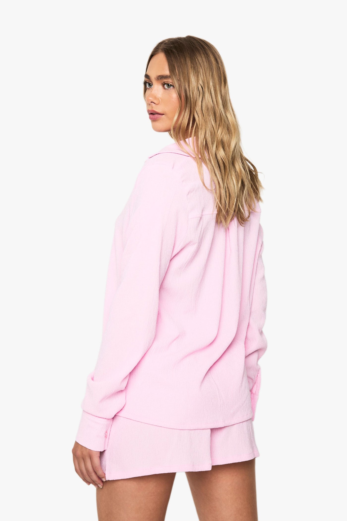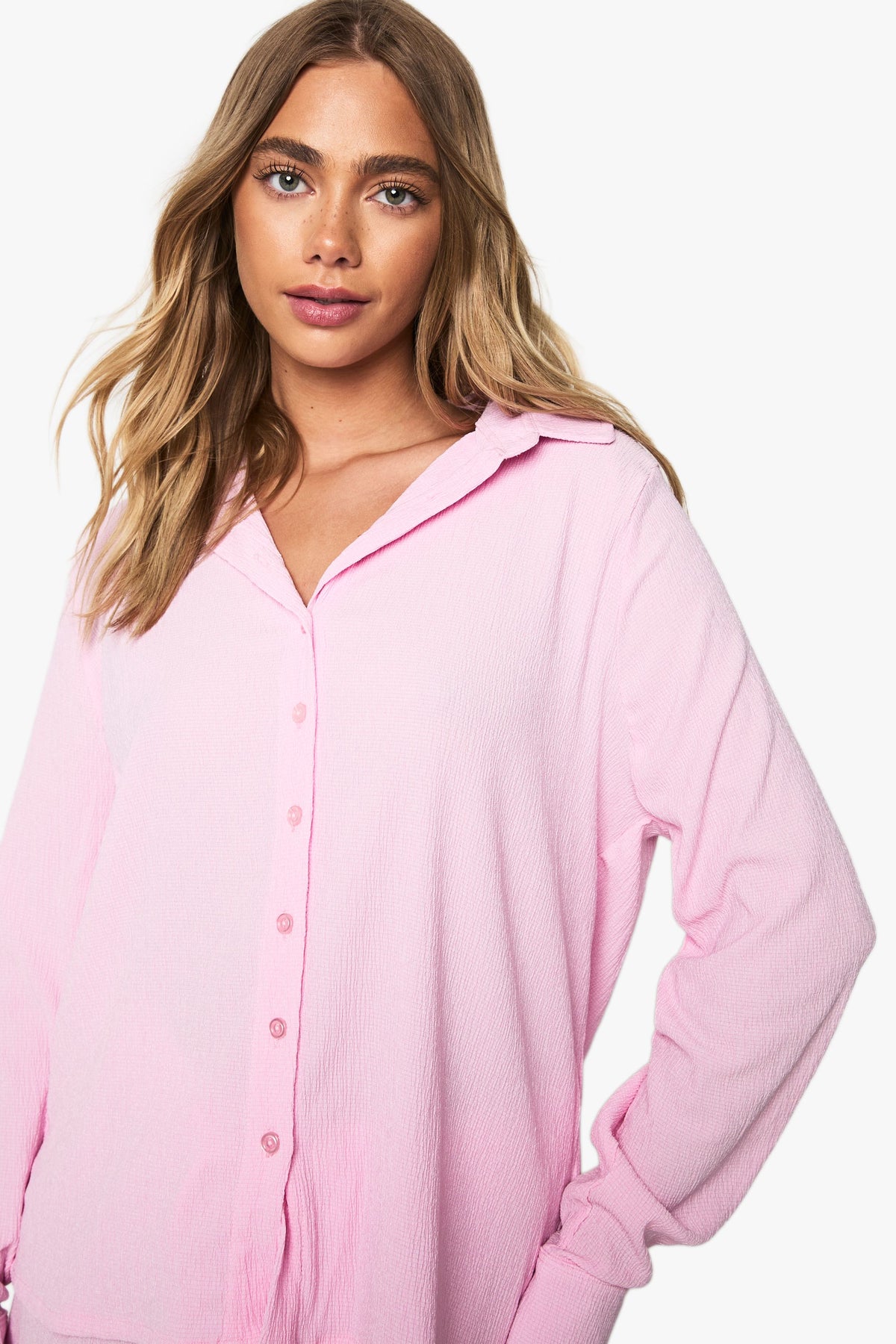This Boohoo crinkle co-ord set combines comfort with on-trend styling for the ultimate casual ensemble. The relaxed button-through shirt with its oversized fit pairs perfectly with the matching shorts for a coordinated look that requires minimal effort. Style with simple flip flops as shown for lazy weekend brunches, or customise your look with white trainers and layered jewellery for casual meet-ups with friends. The textured fabric adds dimension to this otherwise simple set, making it a standout piece in your casual wardrobe. For cooler evenings, throw on some chunky socks and your favourite denim jacket. This versatile co-ord transitions seamlessly from lounging at home to casual outings, family gatherings, or even as a stylish cover-up for beach days - simply unbutton the shirt and wear it open over your swimwear for instant holiday chic.Discover Crinkle Button Through Shirt & Short Co-ord available to buy online at us.boohoo.com. Available with quick delivery and easy return options. Shop now!Discover Crinkle Button Through Shirt & Short Co-ord available to buy online at us.boohoo.com. Available with quick delivery and easy return options. Shop now!