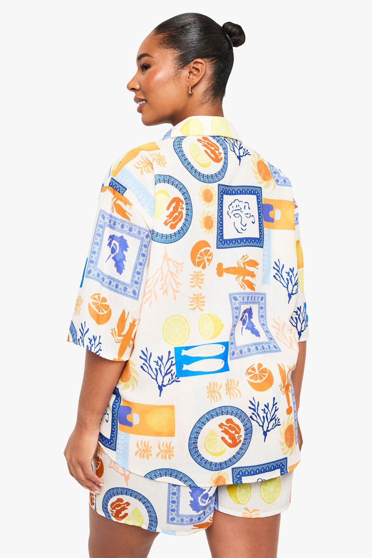 Bold abstract print co-ord featuring an oversized shirt and relaxed shorts