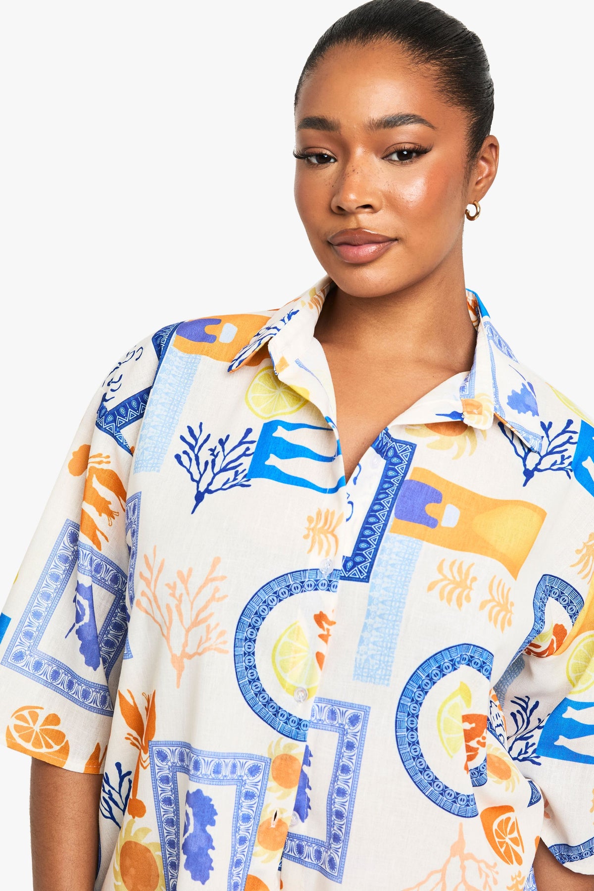 Make a statement in this eye-catching abstract print co-ord from Boohoo. The oversized shirt with its relaxed collar and roomy sleeves creates a breezy silhouette that's perfect for warm-weather outings. As shown, pair with retro sunglasses and a textured tote bag for a complete holiday-ready ensemble. The matching shorts offer effortless comfort whilst maintaining a fashion-forward aesthetic. For casual gatherings, style with flat sandals as pictured, or dress up with chunky trainers and statement jewellery for brunch with the girls. This co-ord works brilliantly as a set but offers double the styling options when worn separately - try the shirt with denim shorts or the printed shorts with a simple vest top for alternative looks. A must-have addition to your summer wardrobe that delivers on both comfort and style.Discover PLUS ABSTRACT PRINT SHIRT AND SHORT CO ORD available to buy online at us.boohoo.com. Available with quick delivery and easy return options. Shop now!Discover PLUS ABSTRACT PRINT SHIRT AND SHORT CO ORD available to buy online at us.boohoo.com. Available with quick delivery and easy return options. Shop now!