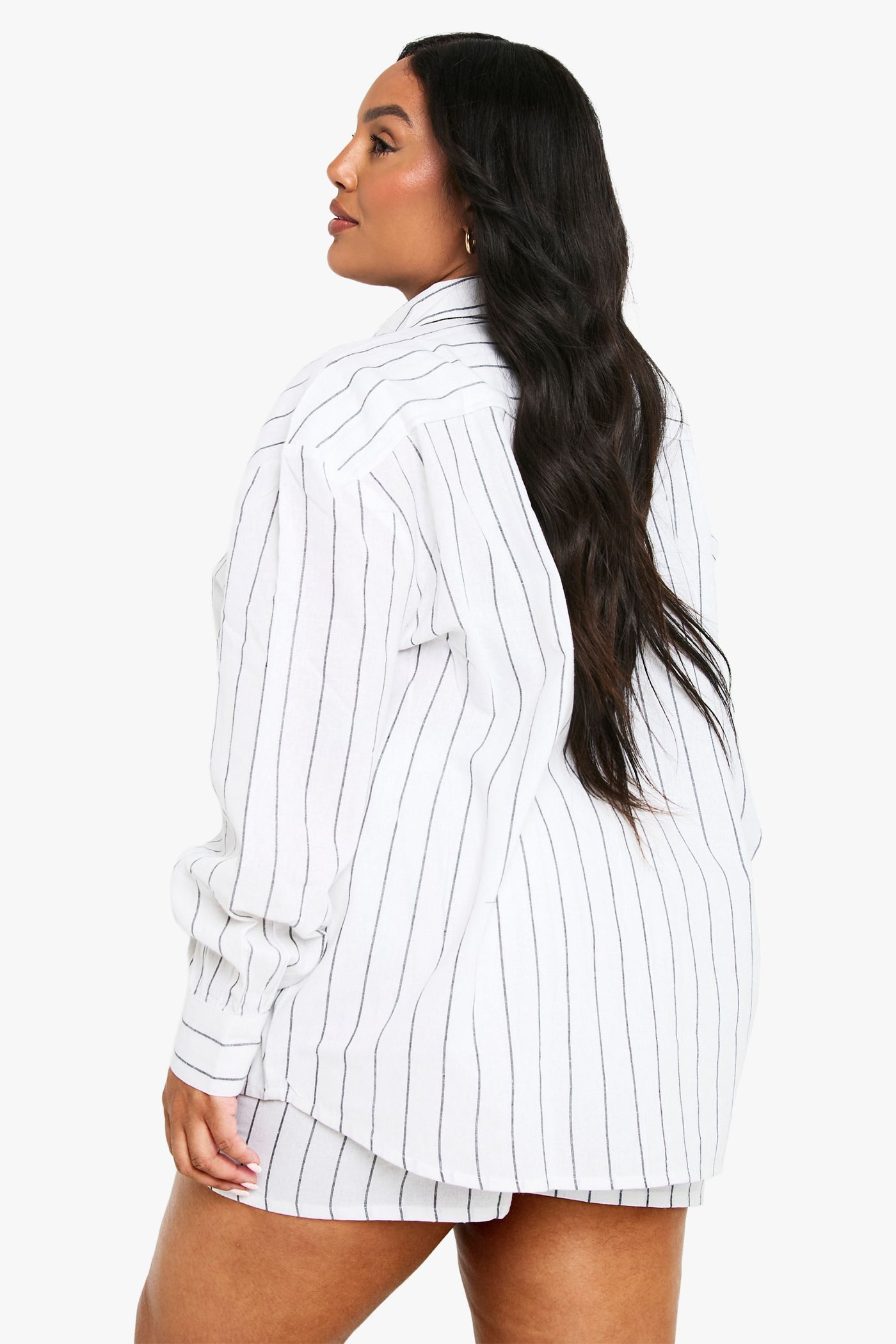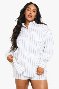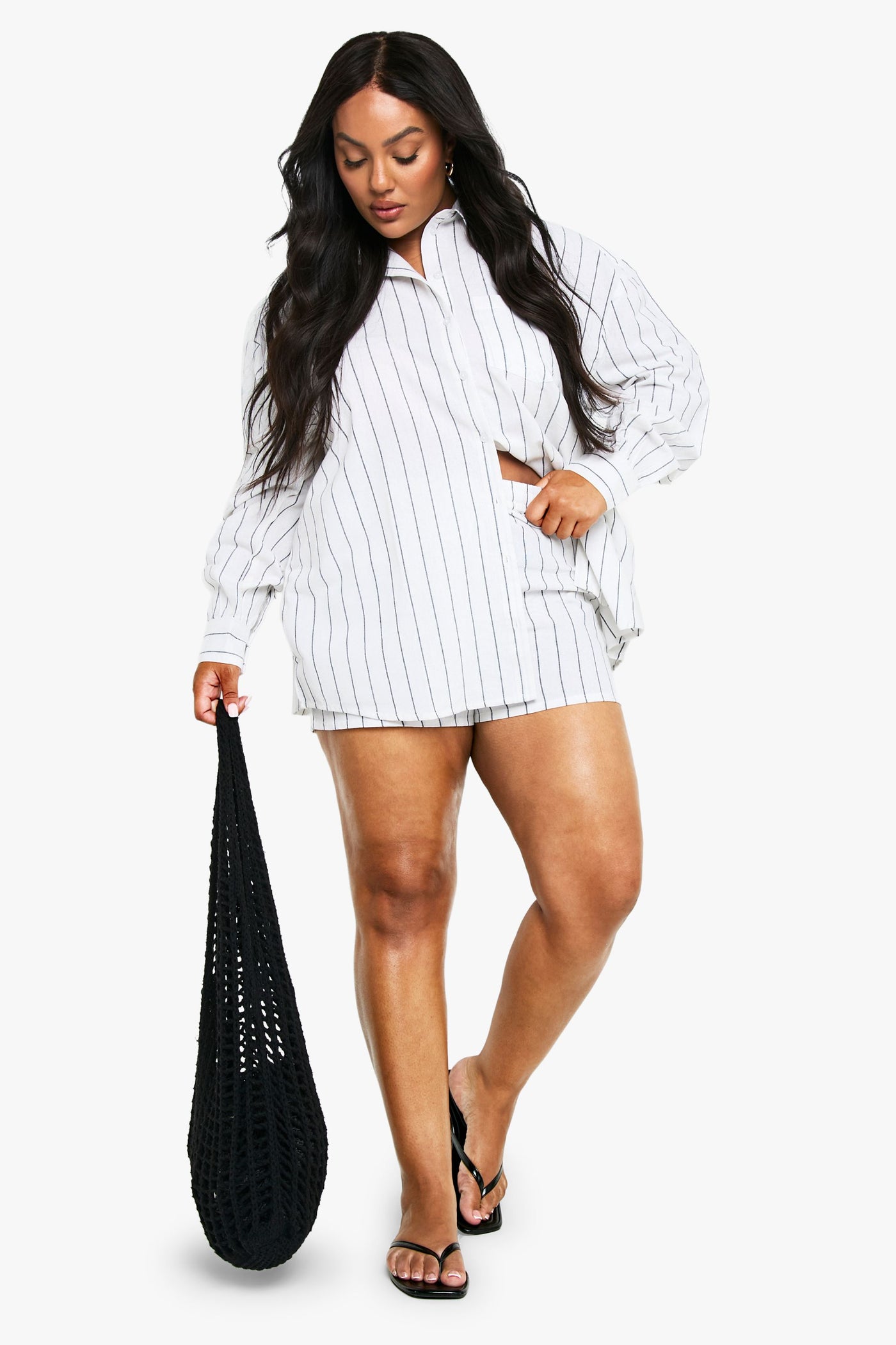 This effortlessly chic co-ord set brings together comfort and style for your casual wardrobe. The oversized shirt features a relaxed silhouette with dropped shoulders and a classic button-through design, while the coordinating shorts offer the perfect balance of coverage and comfort. Style with flat sandals and a mesh tote bag for daytime outings as shown, or dress up with chunky trainers and statement jewellery for casual meet-ups with friends. For cooler evenings, layer with an oversized denim jacket and swap the sandals for ankle boots. The versatile striped pattern works brilliantly for family gatherings, weekend brunches, or casual shopping trips. Machine washable for easy care, this set promises to become a go-to favourite in your casual rotation.Discover Plus Stripe Long Sleeve Shirt And Shorts Co Ord available to buy online at us.boohoo.com. Available with quick delivery and easy return options. Shop now!Discover Plus Stripe Long Sleeve Shirt And Shorts Co Ord available to buy online at us.boohoo.com. Available with quick delivery and easy return options. Shop now!