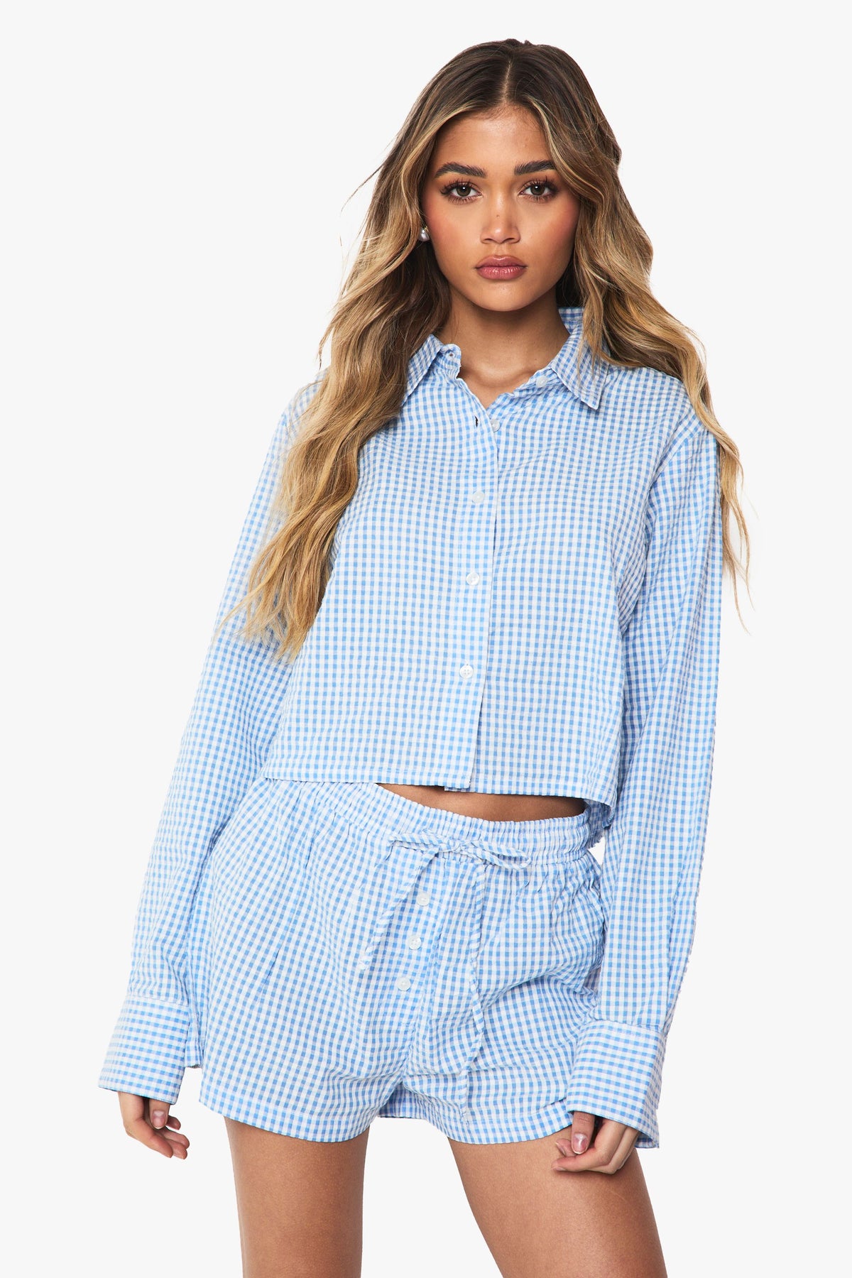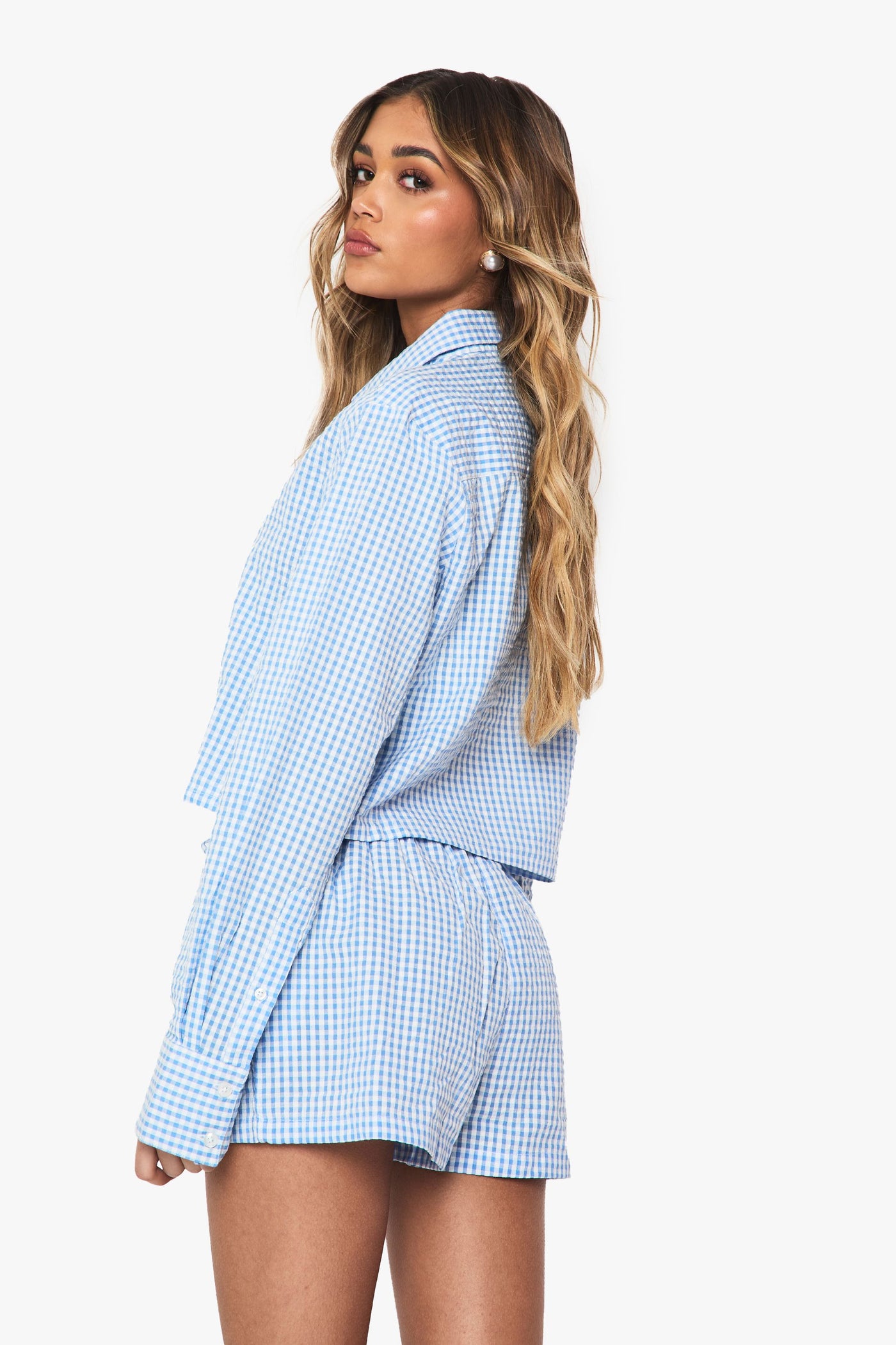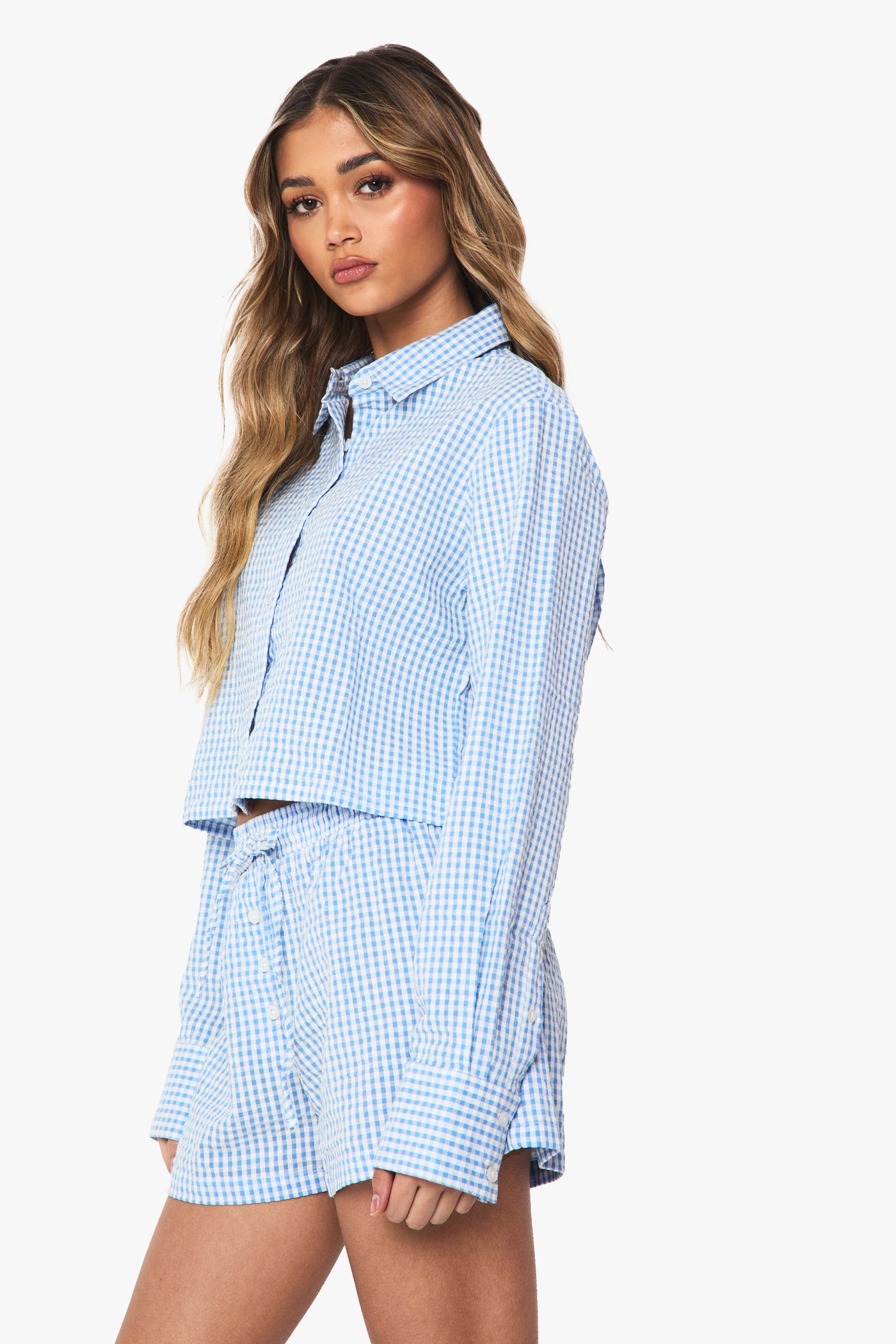 This charming seersucker co-ord set brings effortless style to your casual wardrobe. The textured check pattern adds visual interest while the cotton-rich fabric ensures breathability for all-day comfort. Style the cropped button-up with the matching shorts for a coordinated daytime look, or break up the set to create multiple outfits. Pair the top with your favourite denim and trainers for brunch with friends, or team the shorts with a simple tee and sandals for weekend errands. For cooler evenings, layer with an oversized cardigan and white trainers. This versatile Boohoo co-ord transitions seamlessly from garden parties to family gatherings, offering that perfect balance of comfort and on-trend style that works for numerous casual occasions throughout the warmer months.Discover Seersucker Pinstripe Crop Shirt and Shorts Co-ord available to buy online at us.boohoo.com. Available with quick delivery and easy return options. Shop now!Discover Seersucker Pinstripe Crop Shirt and Shorts Co-ord available to buy online at us.boohoo.com. Available with quick delivery and easy return options. Shop now!