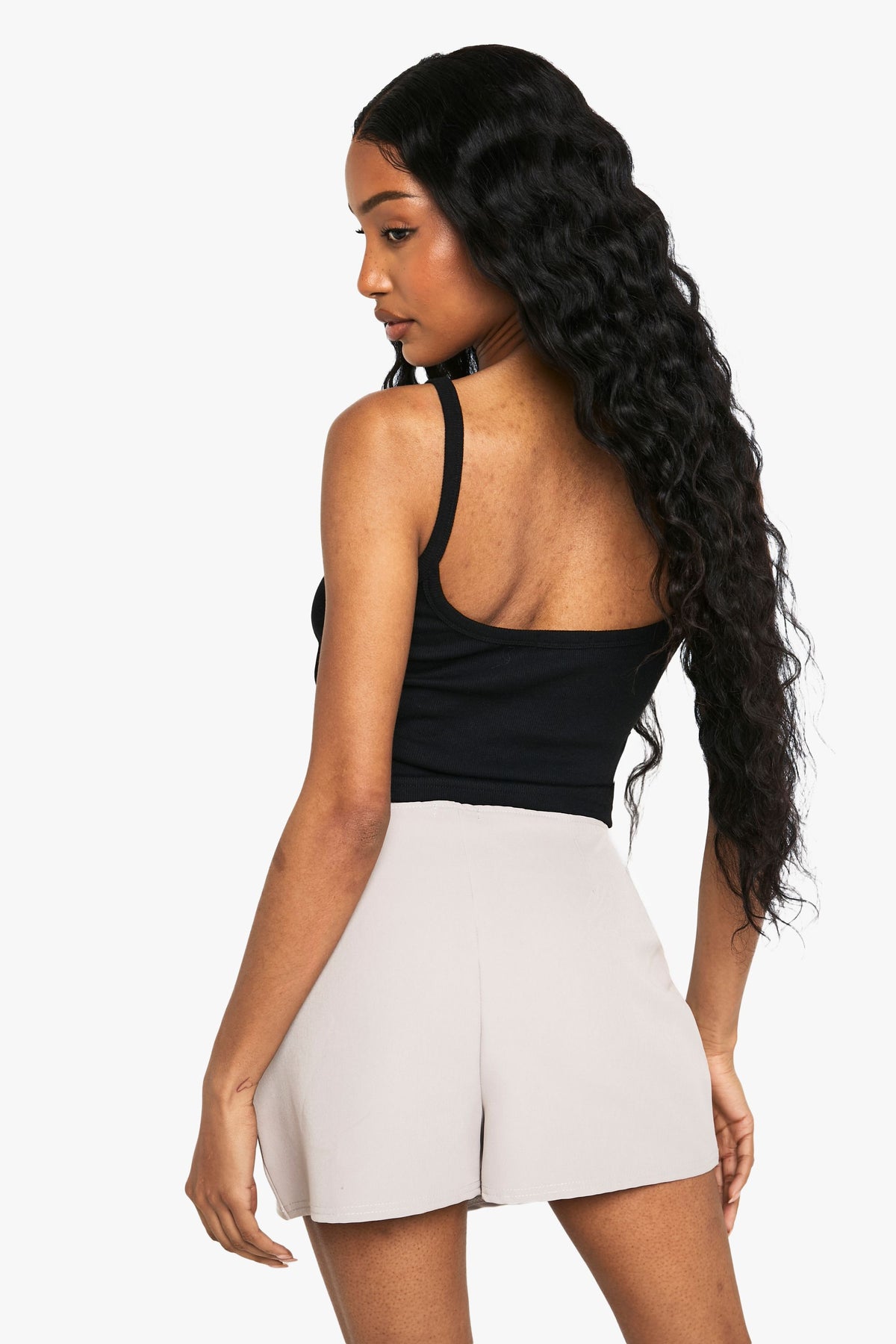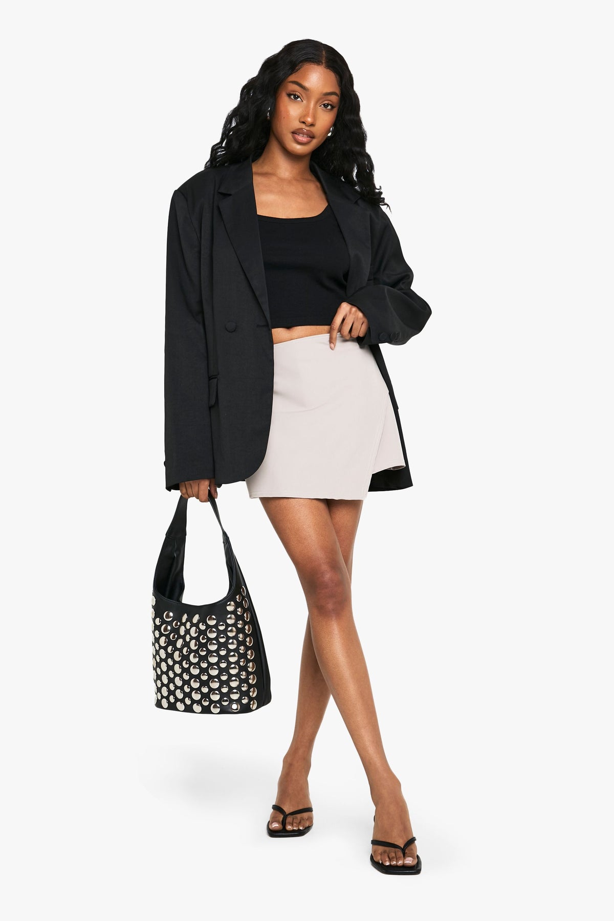 Make a statement on your next night out with these eye-catching asymmetrical mini-skorts from Boohoo. The innovative wrap-front design offers the best of both worlds - the chic look of a mini skirt with the comfort and security of shorts underneath. As seen on our model, pair with a fitted crop top for a balanced silhouette, or dress up with a structured blazer and statement handbag for drinks with the girls. The high-waisted design works brilliantly with both casual and dressed-up tops, making these skorts incredibly versatile for various evening occasions. Add heeled sandals and bold jewellery to complete your look, or switch to chunky trainers for a more relaxed urban vibe. Perfect for dancing the night away without compromising on style or comfort.Discover Asymmetric Mini Skort available to buy online at us.boohoo.com. Available with quick delivery and easy return options. Shop now!Discover Asymmetric Mini Skort available to buy online at us.boohoo.com. Available with quick delivery and easy return options. Shop now!