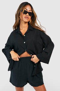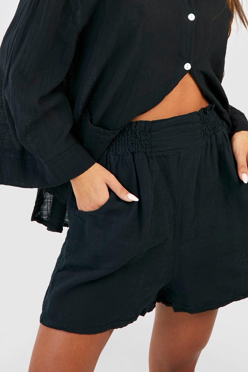 These textured lightweight cotton shorts from Boohoo are the epitome of casual chic. Perfect for the fashion-forward woman who values both style and comfort, these shorts offer a relaxed fit that's ideal for a variety of informal settings. The elasticated waist ensures a snug, adjustable fit, while the textured fabric adds a touch of intrigue to your ensemble. Style these shorts with a cropped button-up shirt for a coordinated look, or pair them with a simple vest top for a more laid-back vibe. They're brilliant for family gatherings, weekend brunches, or casual strolls in the park. Accessorise with oversized sunglasses and slip-on sandals to complete your effortlessly cool look. These shorts are a versatile addition to your wardrobe, easily transitioning from daytime casual to evening relaxation with just a few styling tweaks.Discover Textured Lightweight Cotton Elasticated Waist Shorts available to buy online at us.boohoo.com. Available with quick delivery and easy return options. Shop now!Discover Textured Lightweight Cotton Elasticated Waist Shorts available to buy online at us.boohoo.com. Available with quick delivery and easy return options. Shop now!