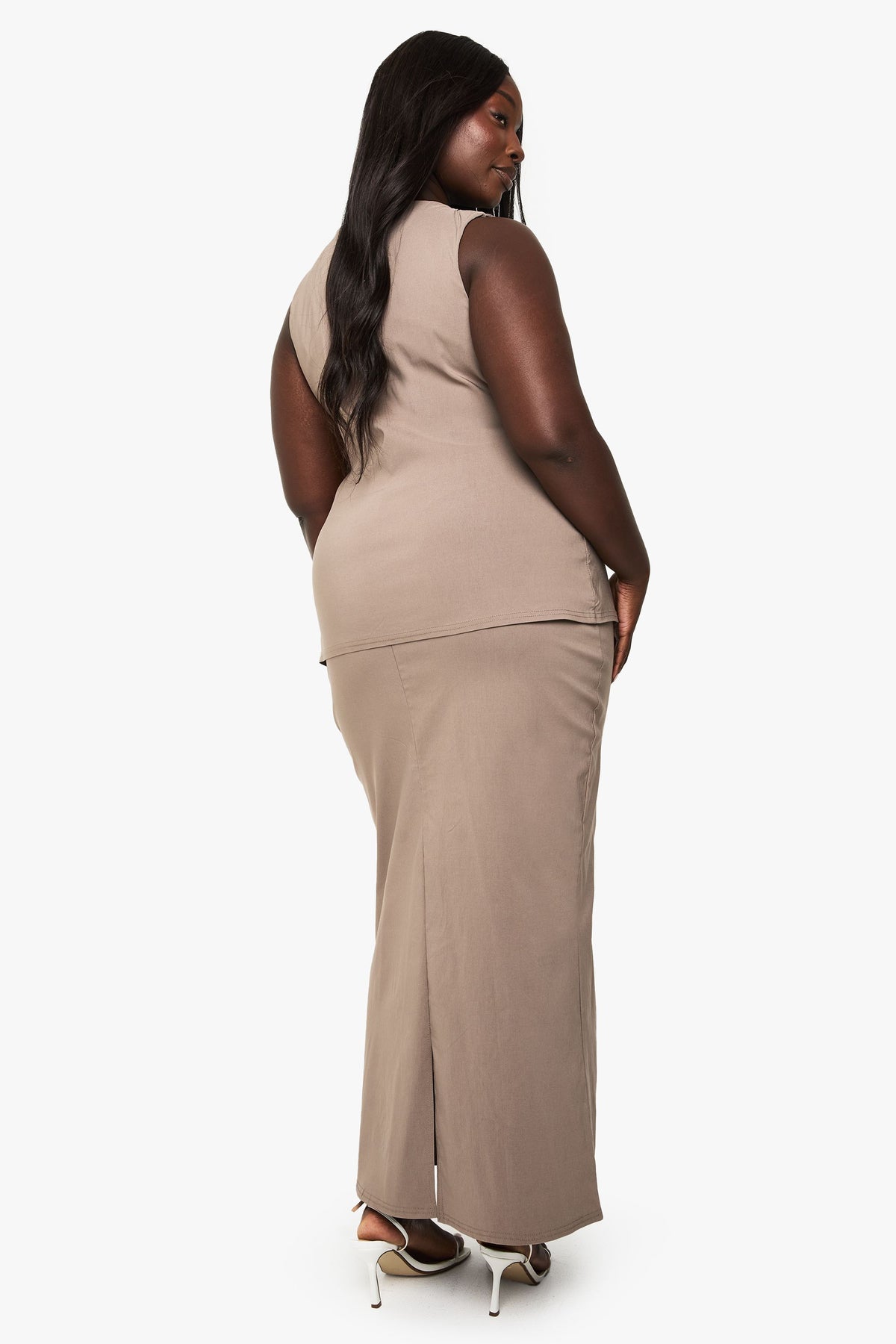Plus bengaline button detail waistcoat and maxi skirt co-ord