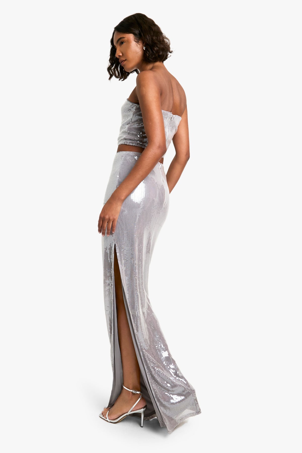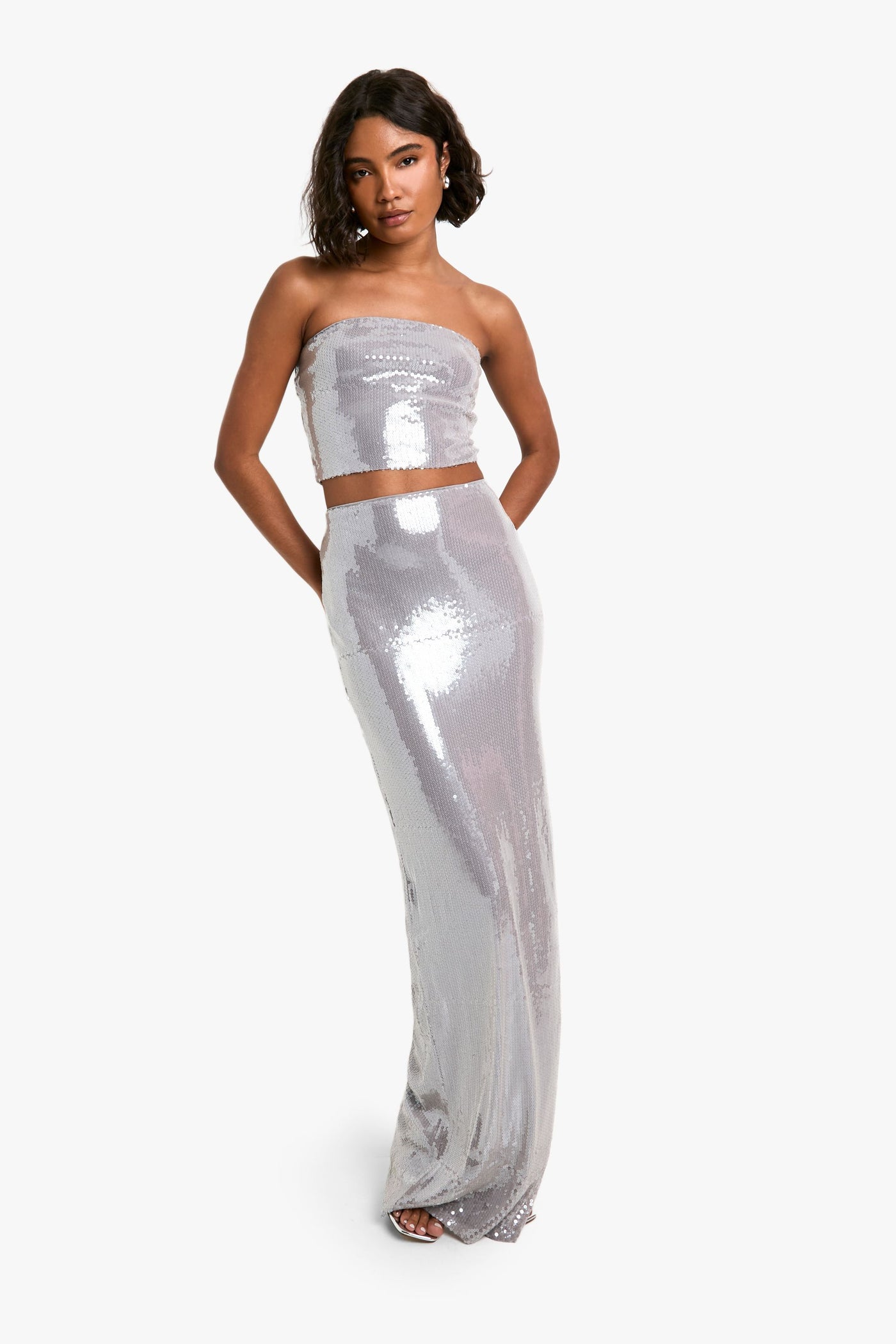 Make a show-stopping entrance at your next Christmas soire with this glamorous sequin co-ord from Boohoo. The bandeau crop top offers a sleek, modern aesthetic, while the high-waisted maxi skirt with its daring side slit adds a touch of drama to your ensemble. This two-piece set is designed to catch and reflect light, ensuring you'll be the centre of attention at any festive gathering. Style with strappy metallic heels and statement earrings for a look that radiates confidence. Whether you're attending a Christmas party or ringing in the New Year, this versatile co-ord can be dressed up or down to suit the occasion. The sequin fabric adds a luxurious touch, making it an ideal choice for those who want to make a lasting impression during the holiday season.Discover Tall Sequin Bandeau And Maxi Skirt Co-ord available to buy online at us.boohoo.com. Available with quick delivery and easy return options. Shop now!Discover Tall Sequin Bandeau And Maxi Skirt Co-ord available to buy online at us.boohoo.com. Available with quick delivery and easy return options. Shop now!
