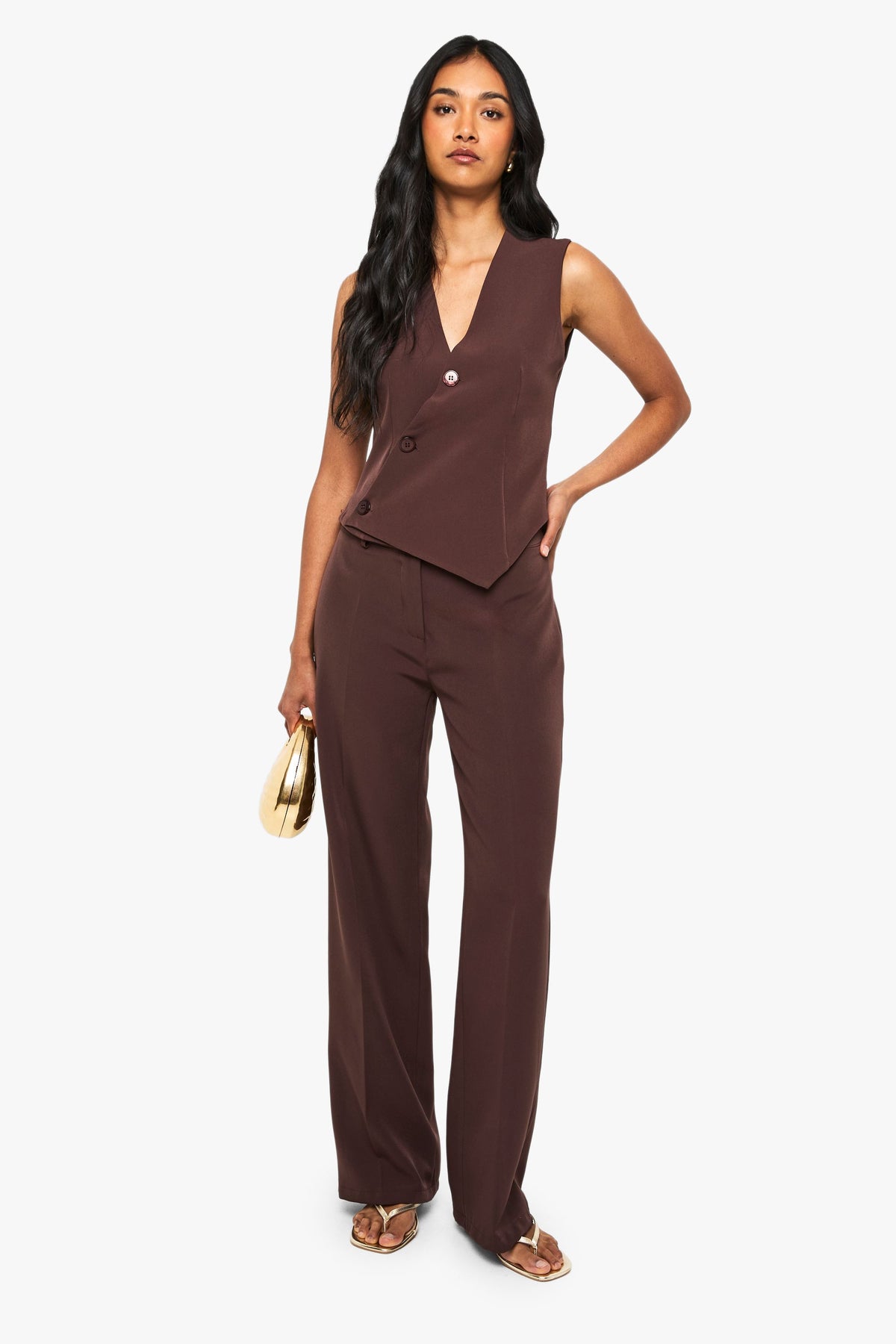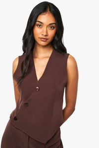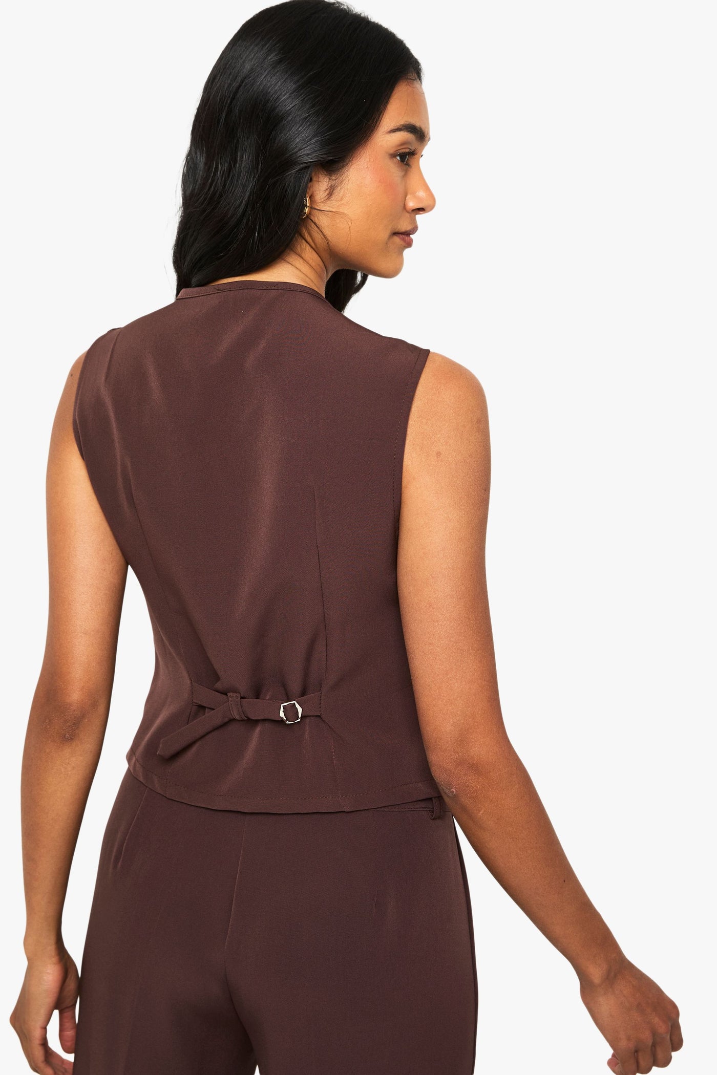 Make a fashion-forward statement with this asymmetric waistcoat that blends modern design with versatile styling options. The adjustable back detail allows you to create your perfect fit, whilst the clean lines and button detailing add a tailored touch to this casual piece. Style with the matching wide-leg trousers as seen on the model for a coordinated look that works brilliantly for family gatherings or casual brunches with friends. For a more relaxed approach, pair with your favourite denim and trainers. The sleeveless design makes it ideal for transitional weather, and you can easily layer under a blazer when temperatures drop. Accessorise with gold-toned jewellery and a clutch bag to take this versatile waistcoat from day to evening with effortless Boohoo style.Discover Asymmetric Adjustable Back Waistcoat available to buy online at us.boohoo.com. Available with quick delivery and easy return options. Shop now!Discover Asymmetric Adjustable Back Waistcoat available to buy online at us.boohoo.com. Available with quick delivery and easy return options. Shop now!