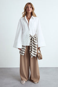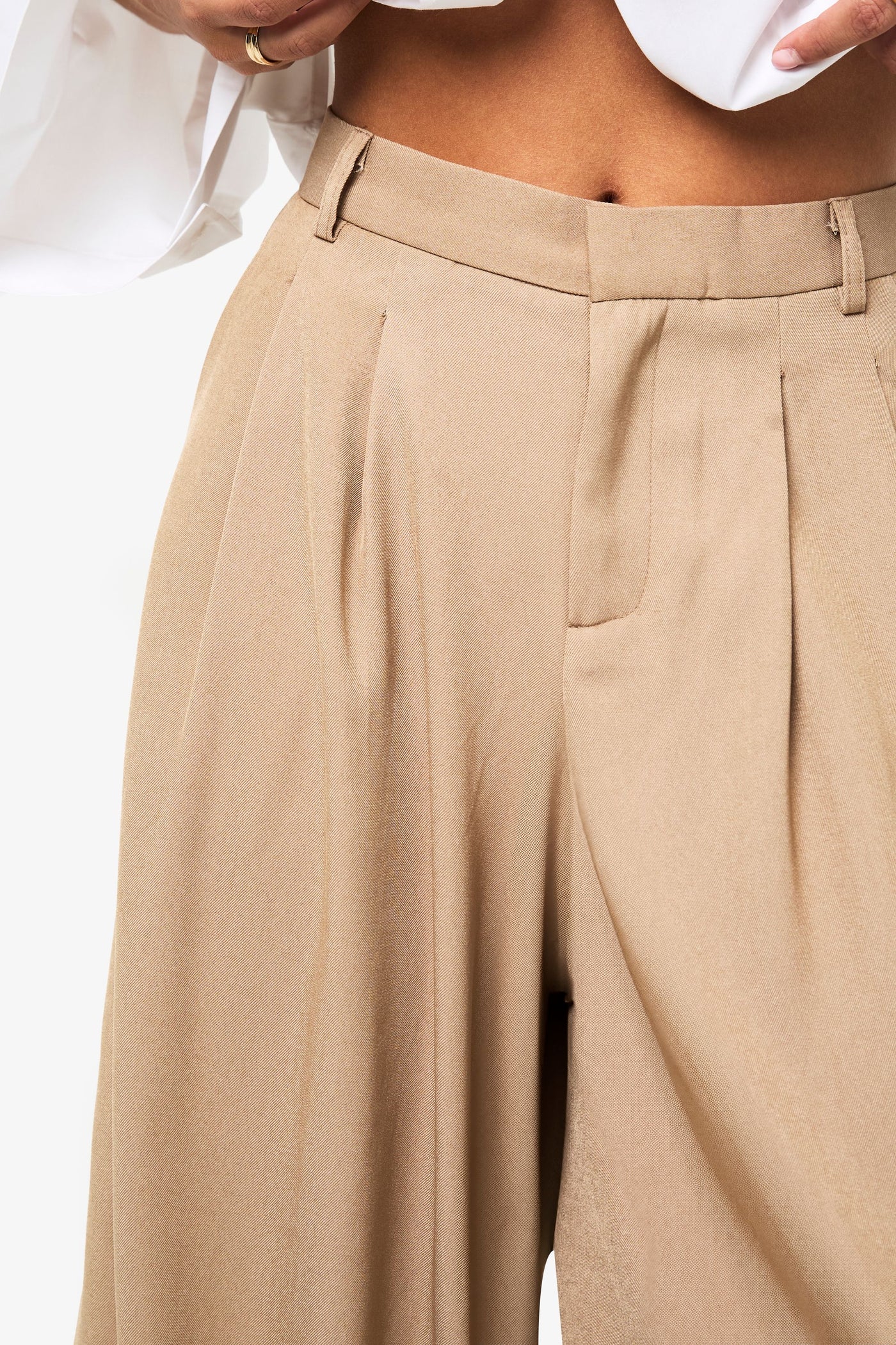 High-waisted fit with front pleating detail for added structure