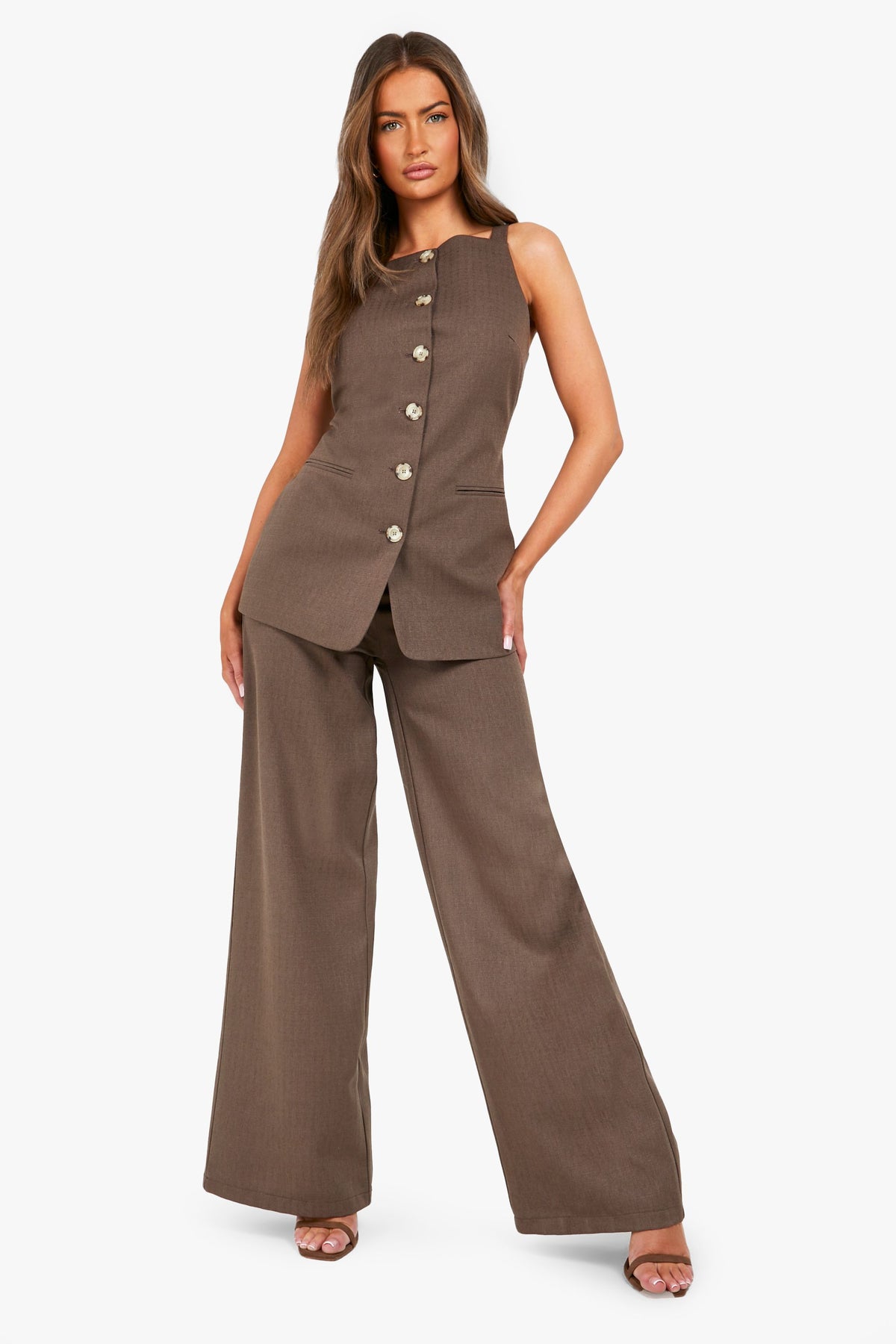 Make a statement with this textured longline waistcoat, a versatile piece that bridges the gap between casual and smart dressing. The asymmetric button-front design creates visual interest while the sleek, tailored fit flatters your figure beautifully. Style with the matching wide-leg trousers as seen on the model for a contemporary co-ord look that's perfect for family gatherings or weekend brunches. For more casual styling, layer over a fitted tee with your favourite jeans and trainers. As temperatures drop, this waistcoat works brilliantly over a thin roll neck or crisp shirt. The mock horn buttons add a touch of sophistication to this Boohoo essential that will quickly become a cornerstone of your wardrobe rotation.Discover Textured Mock Horn Button Front Longline Waistcoat available to buy online at us.boohoo.com. Available with quick delivery and easy return options. Shop now!Discover Textured Mock Horn Button Front Longline Waistcoat available to buy online at us.boohoo.com. Available with quick delivery and easy return options. Shop now!