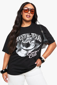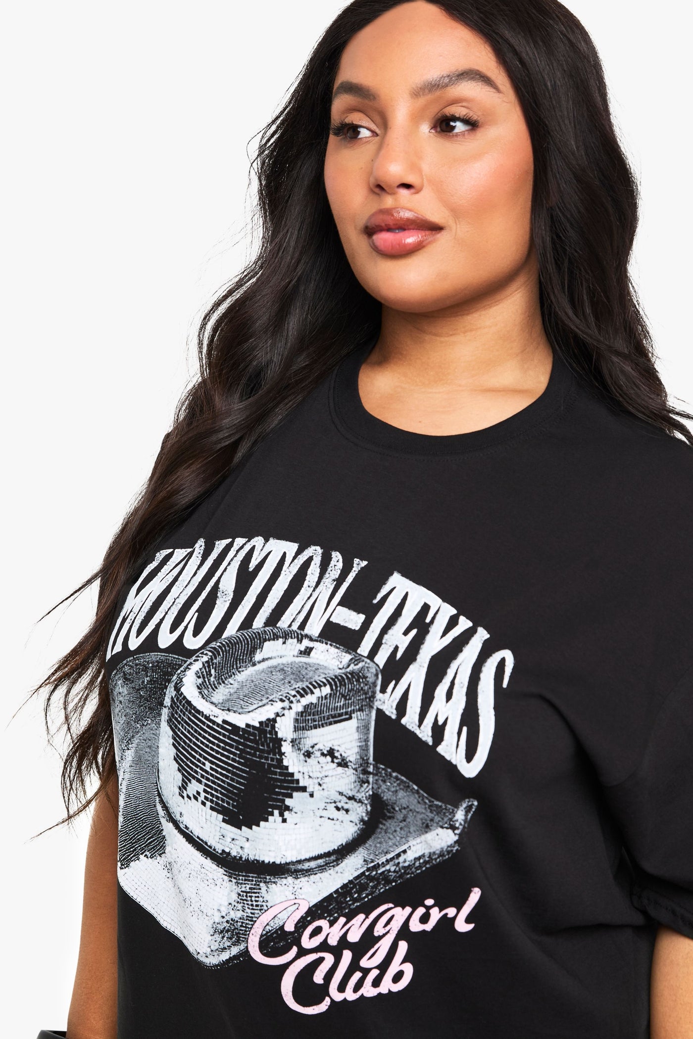 Channel your inner cowgirl with this eye-catching oversized tee that brings Western charm to your casual wardrobe. The striking cowgirl hat graphic makes this piece a conversation starter, whilst the relaxed silhouette ensures all-day comfort. Style it as seen with denim shorts for a festival-ready ensemble, or pair with your favourite leggings for a laid-back weekend look. Add statement sunglasses and hoop earrings to complete the outfit, or layer under a denim jacket when the temperature drops. Perfect for casual gatherings, brunches with the girls, or simply lounging about town, this tee offers versatility without compromising on style. The oversized fit makes it ideal for tucking into high-waisted bottoms or wearing loose for a contemporary silhouette that's right on trend.Discover Plus Cowgirl Hat Oversized Printed T-Shirt available to buy online at us.boohoo.com. Available with quick delivery and easy return options. Shop now!Discover Plus Cowgirl Hat Oversized Printed T-Shirt available to buy online at us.boohoo.com. Available with quick delivery and easy return options. Shop now!