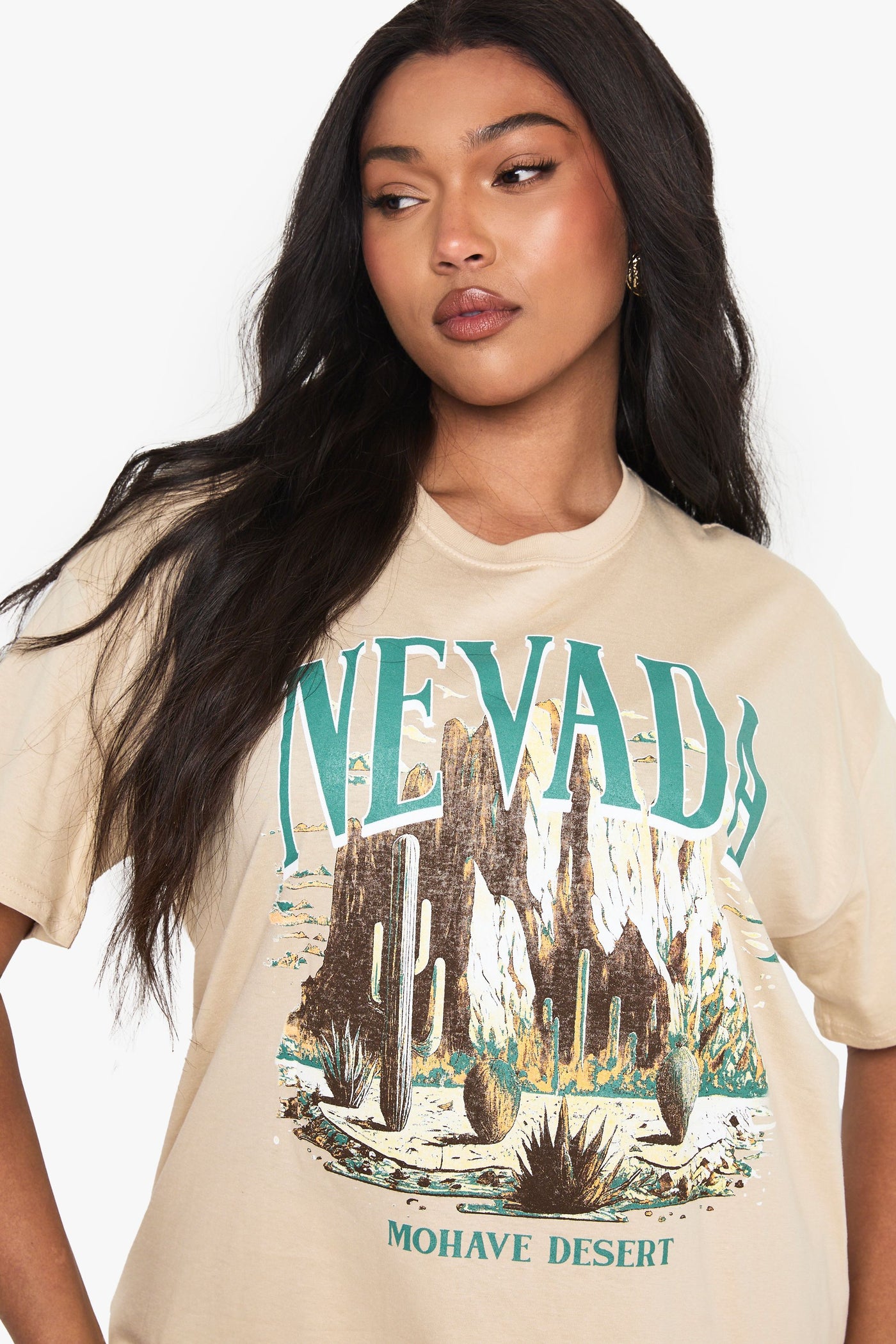 Make a statement with this eye-catching Nevada print T-shirt from Boohoo's latest collection. The relaxed, oversized silhouette offers both comfort and on-trend appeal for your casual wardrobe. Style it as seen with matching shorts for a coordinated summer look, or pair with your favourite denim and trainers for effortless weekend style. The distinctive desert graphic adds character to coffee dates or casual gatherings with friends. For cooler evenings, layer under an open shirt or light jacket and finish with canvas trainers. This versatile piece transitions seamlessly from daytime shopping trips to casual evening meetups, embodying the carefree spirit of summer dressing with a touch of American desert charm.Discover PLUS NEVEDA OVERSIZED T-SHIRT available to buy online at us.boohoo.com. Available with quick delivery and easy return options. Shop now!Discover PLUS NEVEDA OVERSIZED T-SHIRT available to buy online at us.boohoo.com. Available with quick delivery and easy return options. Shop now!