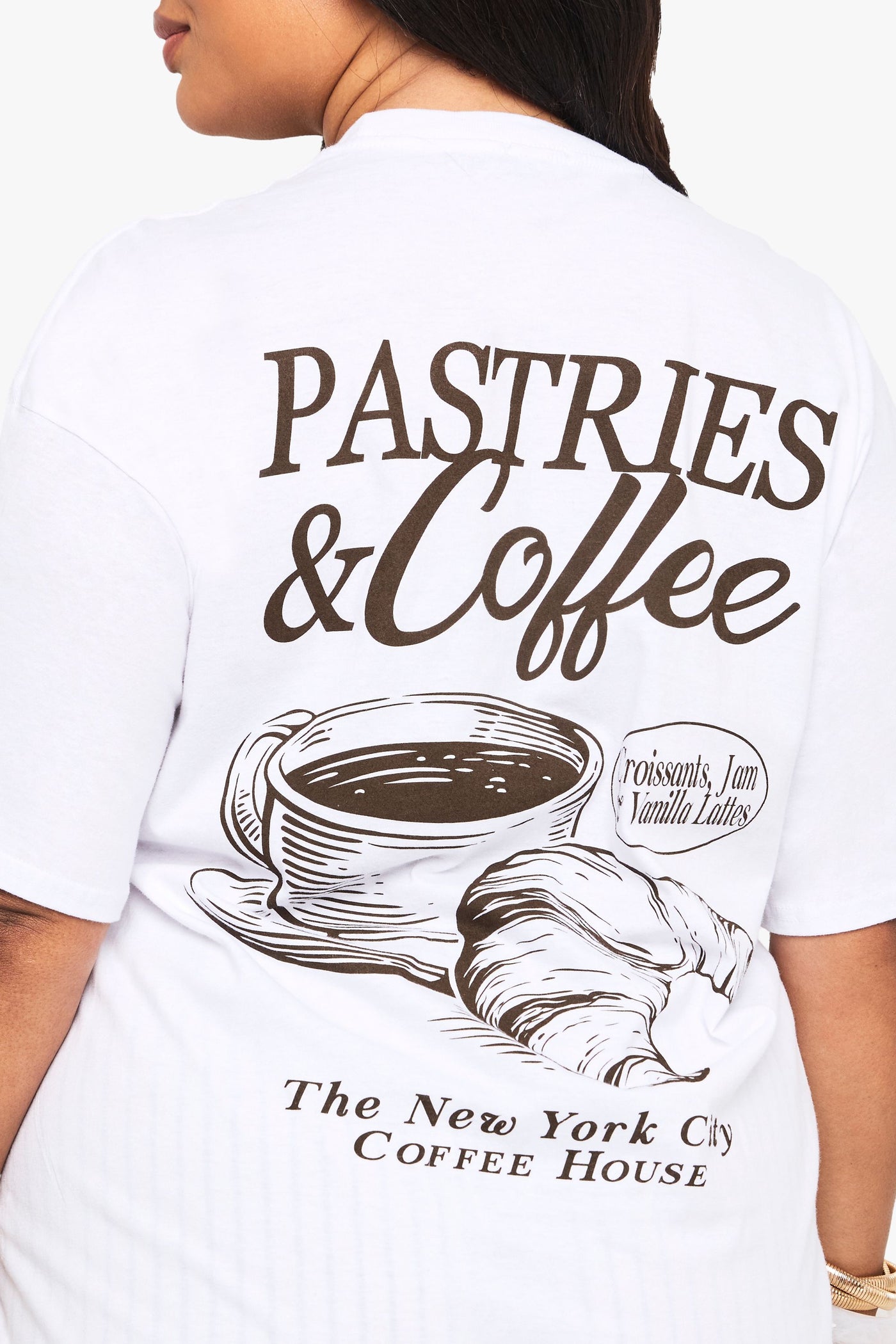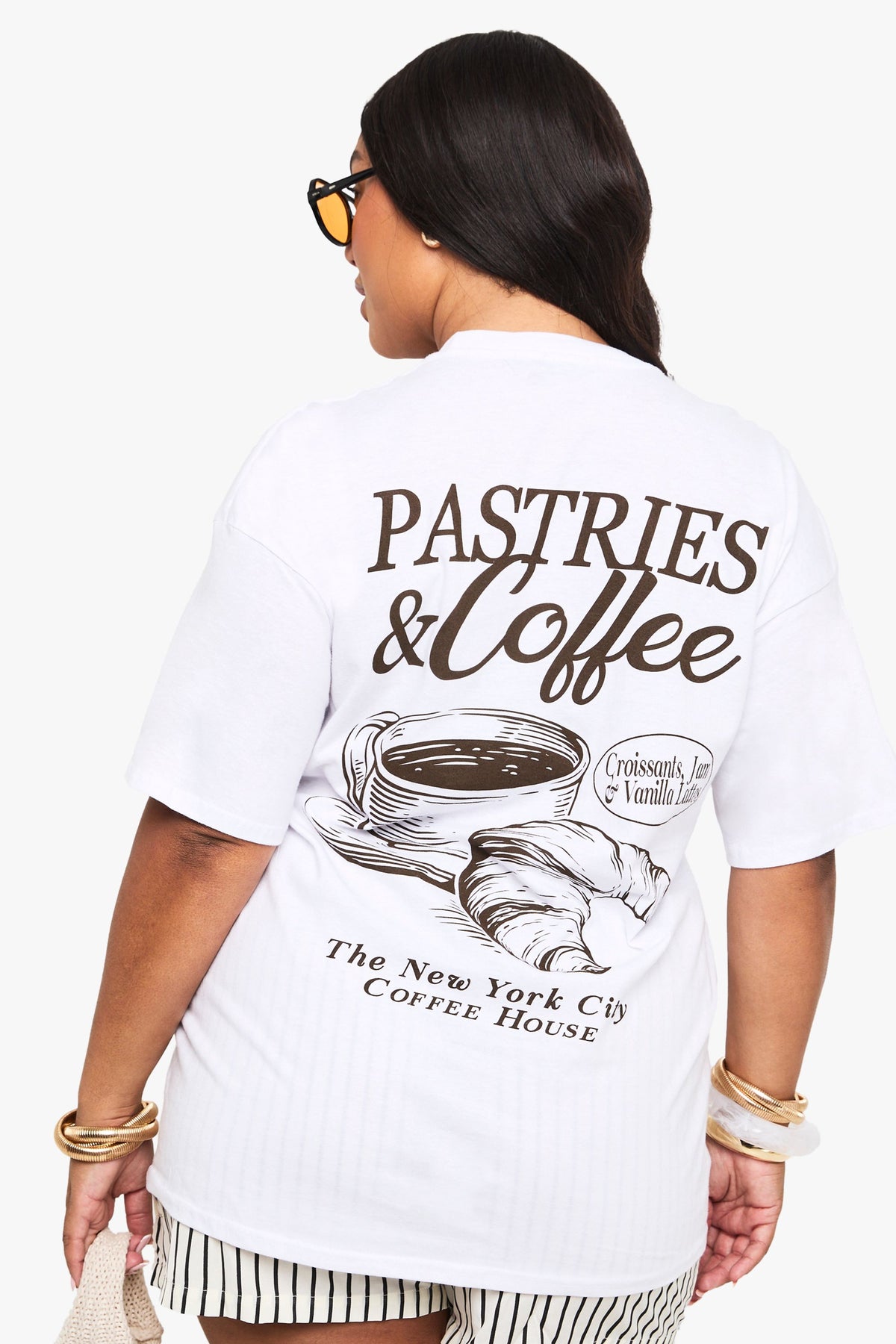 This Plus Oversize T-Shirt with Kaftan-Print delivers effortless style with a touch of urban charm. The relaxed silhouette offers a flattering fit that drapes beautifully, making it perfect for casual outings. Style it as seen with your favourite blue denim jeans for a classic daytime look, or pair with cycling shorts and trainers for a contemporary twist. The distinctive caf-themed graphic adds character to this otherwise simple piece. Perfect for weekend brunches, casual coffee dates, or lounging at home with friends. Layer with an oversized cardigan and accessorise with statement jewellery when temperatures drop. This versatile t-shirt transitions seamlessly from day to night - simply swap your crossbody bag for a clutch and add some statement earrings for evening gatherings.Discover PLUS PASTRIES AND COFFEE OVERSIZED T-SHIRT available to buy online at us.boohoo.com. Available with quick delivery and easy return options. Shop now!Discover PLUS PASTRIES AND COFFEE OVERSIZED T-SHIRT available to buy online at us.boohoo.com. Available with quick delivery and easy return options. Shop now!