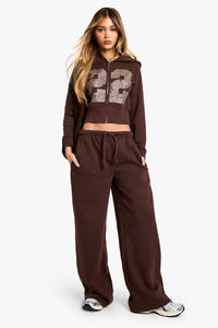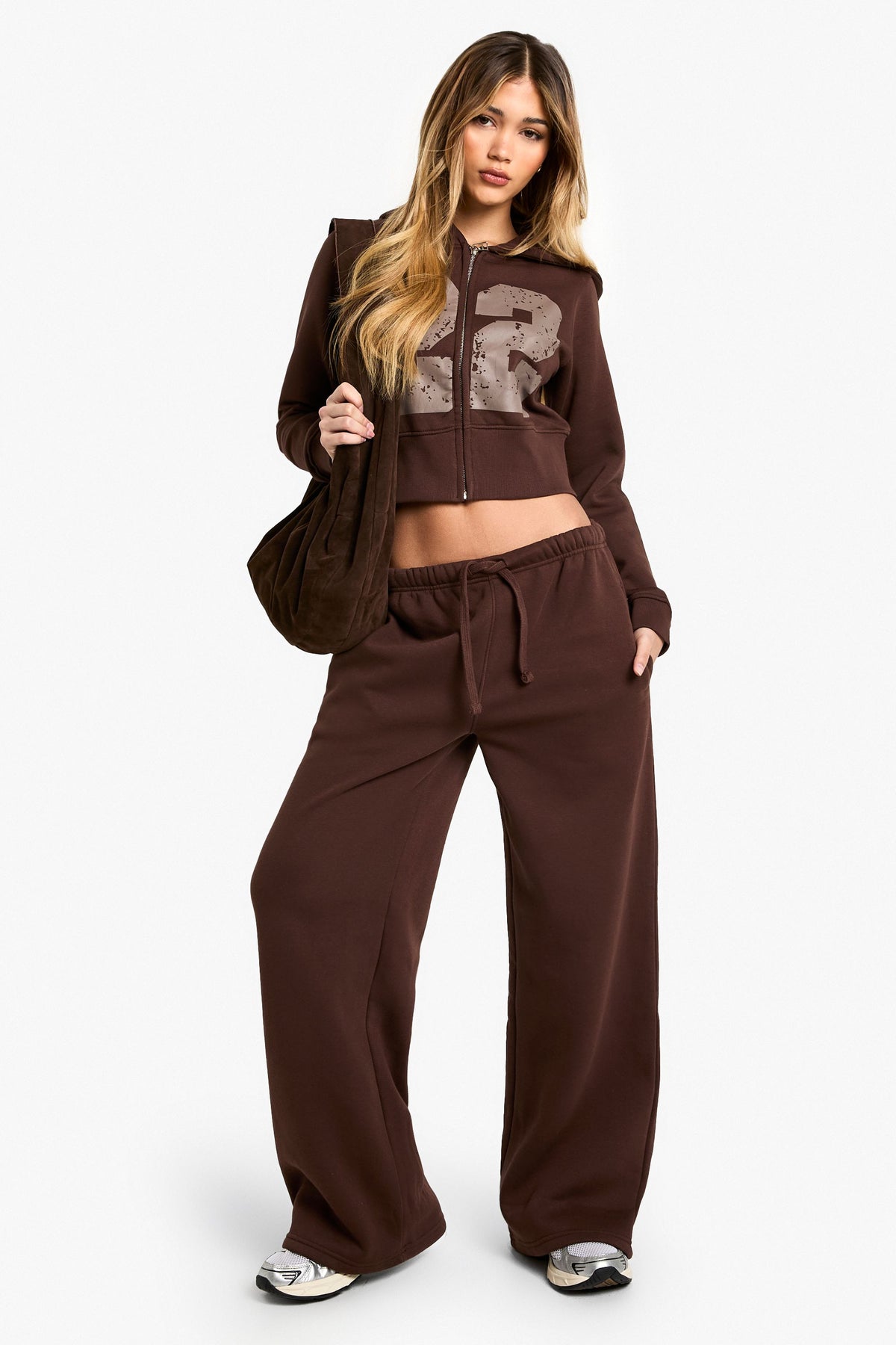 Embrace laid-back chic with this eye-catching tracksuit from Boohoo. The cropped hoodie features a striking '22' print, adding a sporty edge to your casual wardrobe. Paired with wide-leg trousers, this set offers both style and comfort for your everyday looks. Perfect for running errands, meeting friends for coffee, or lounging at home, this tracksuit set is a versatile addition to your wardrobe. Style it with trendy trainers and a crossbody bag for a cool, off-duty look. For a more put-together appearance, layer the hoodie over a fitted tee and swap the trousers for your favourite jeans. This tracksuit is ideal for those days when you want to feel comfortable without compromising on style, making it a must-have for the fashion-forward woman who values both trends and practicality.Discover 22 Print Zip Through Shrunken Tracksuit available to buy online at us.boohoo.com. Available with quick delivery and easy return options. Shop now!Discover 22 Print Zip Through Shrunken Tracksuit available to buy online at us.boohoo.com. Available with quick delivery and easy return options. Shop now!