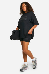 Embrace laid-back chic with this plus-size oversized T-shirt and shorts set from Boohoo. The bold slogan print adds a trendy touch to your casual wardrobe, while the relaxed fit ensures all-day comfort. Style this coordinated set with chunky trainers and a crossbody bag for a cool, off-duty look perfect for weekend brunches or shopping trips with friends. For a more polished appearance, layer with a denim jacket and accessorise with statement earrings. The versatile jersey fabric makes this set ideal for various casual occasions, from lazy days at home to informal gatherings. Mix and match the pieces with other wardrobe staples to create multiple looks, showcasing your personal style while staying comfortable and on-trend.Discover Plus Slogan Puff Print Oversized T-shirt And Short Set available to buy online at us.boohoo.com. Available with quick delivery and easy return options. Shop now!Discover Plus Slogan Puff Print Oversized T-shirt And Short Set available to buy online at us.boohoo.com. Available with quick delivery and easy return options. Shop now!
