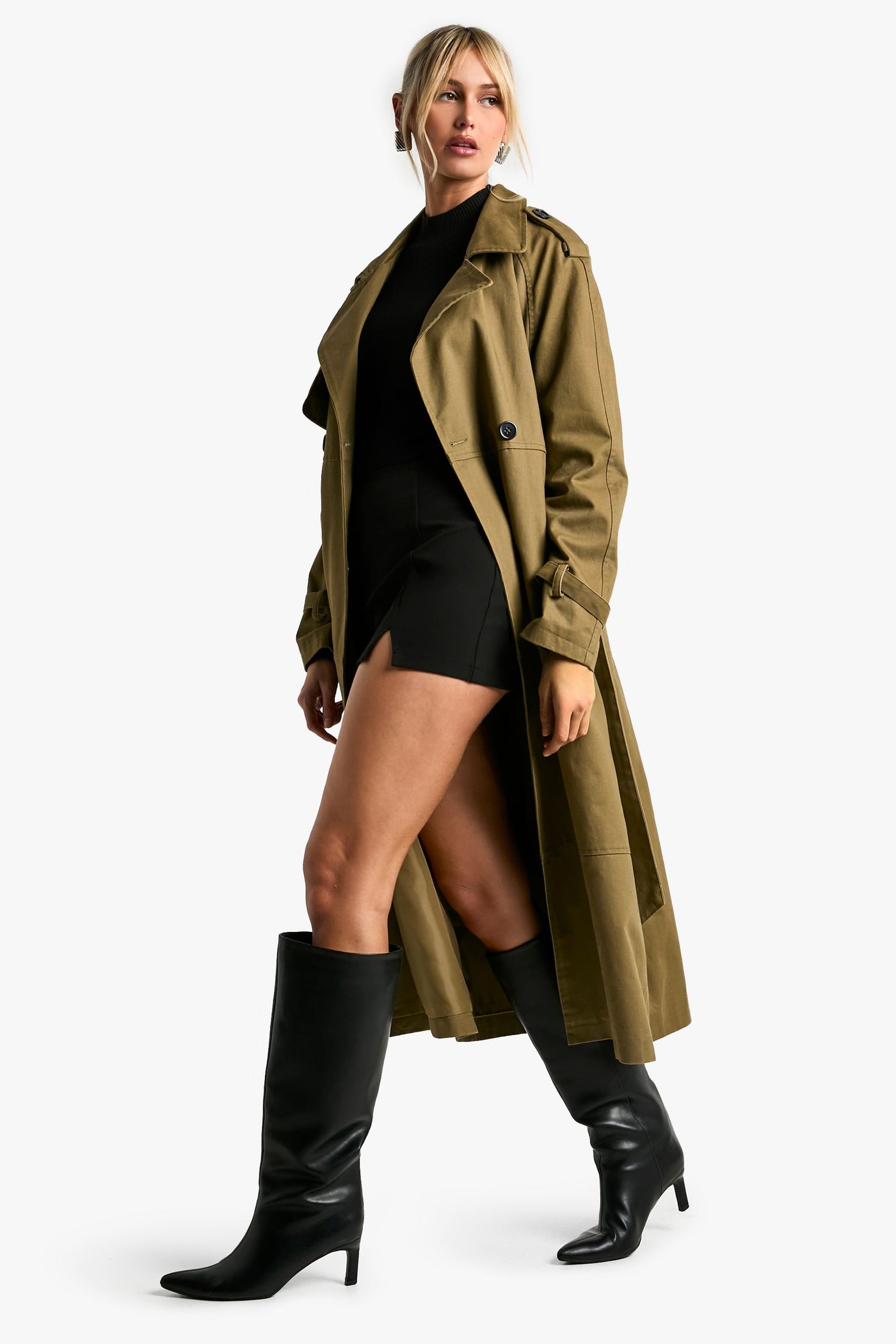 This timeless trench coat from Boohoo is a wardrobe essential that will serve you well for years to come. Perfect for the unpredictable British weather, it offers versatility and style in equal measure. Layer it over a sleek black ensemble, as shown, for a chic monochromatic look, or pair it with your favourite jeans and trainers for a more casual vibe. The adjustable belt allows you to create different silhouettes, from a relaxed, open style to a more structured, cinched-in look. Ideal for everything from running errands to meeting friends for coffee, this coat will keep you looking polished and put-together. For evening events, throw it over a little black dress and add some statement earrings to effortlessly transition from day to night.Discover Belted Trench Coat available to buy online at us.boohoo.com. Available with quick delivery and easy return options. Shop now!Discover Belted Trench Coat available to buy online at us.boohoo.com. Available with quick delivery and easy return options. Shop now!