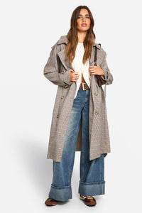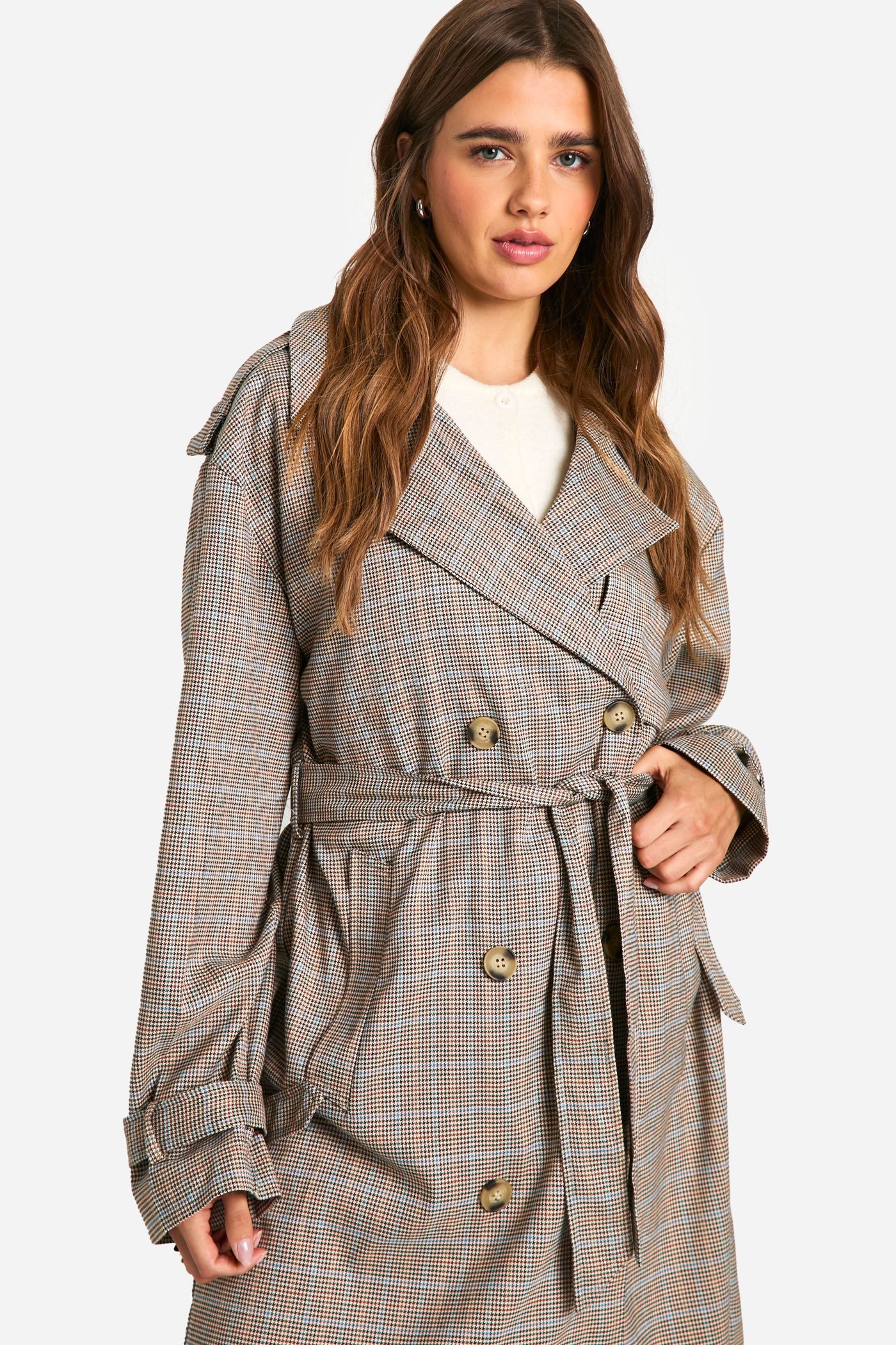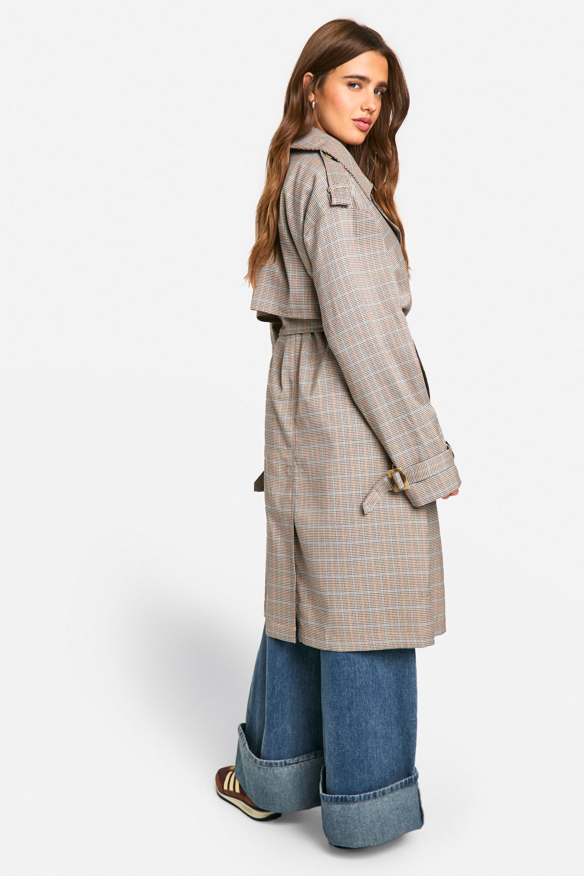 Make a bold statement with this eye-catching checked trench coat, perfect for the fashion-forward woman who loves to stand out. The timeless trench silhouette gets a contemporary update with its striking pattern, making it a versatile piece for your wardrobe. Style it over wide-leg jeans and a crisp white top for a chic daytime look, or throw it on over a little black dress for evening events. The adjustable belt allows you to customise the fit, creating a flattering silhouette for any body type. Whether you're heading to a casual family gathering or meeting friends for brunch, this coat will keep you looking stylish and feeling confident. Its mid-length design offers practicality and sophistication, ensuring you're prepared for unpredictable British weather while maintaining a polished appearance.Discover Check Trench Coat available to buy online at us.boohoo.com. Available with quick delivery and easy return options. Shop now!Discover Check Trench Coat available to buy online at us.boohoo.com. Available with quick delivery and easy return options. Shop now!