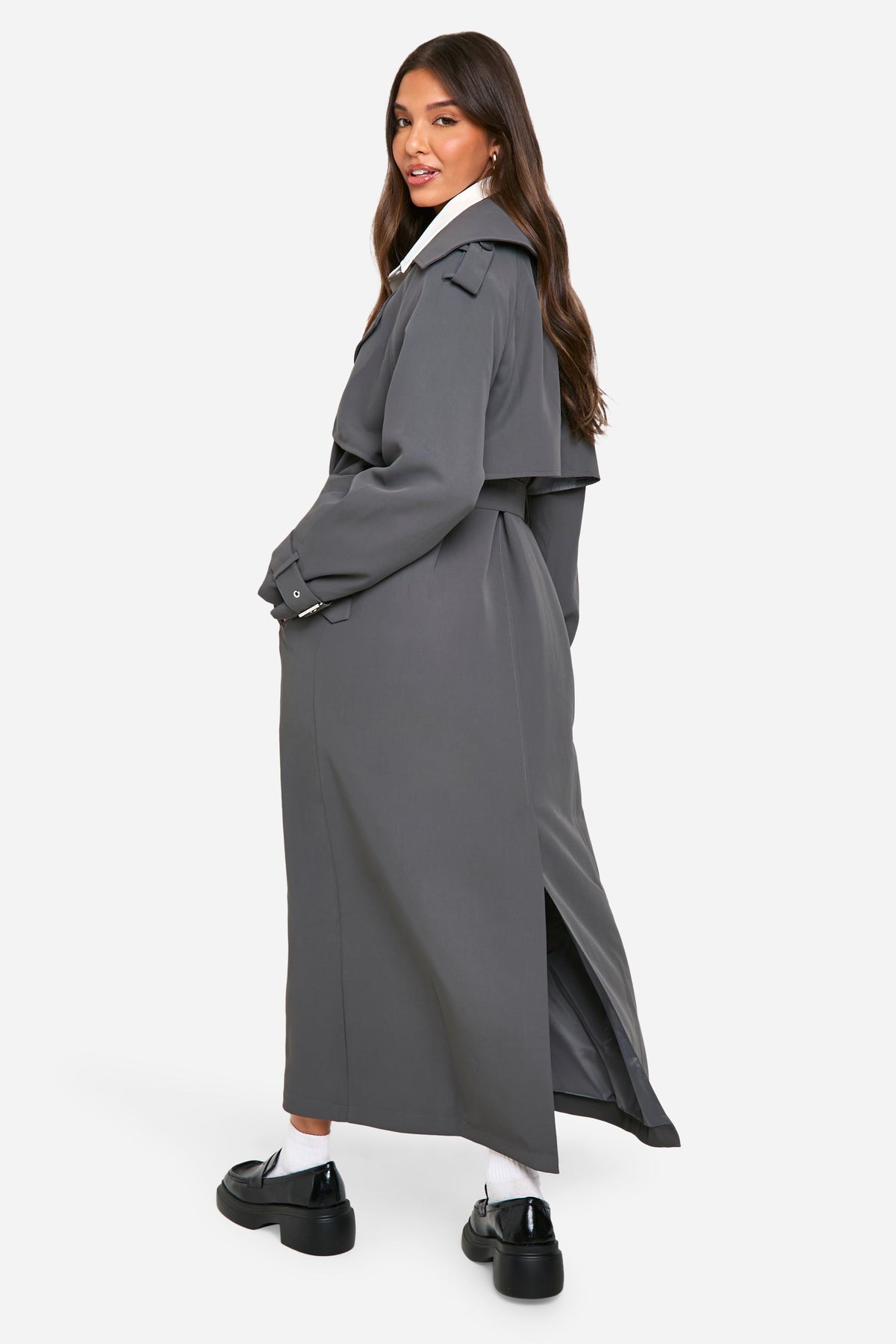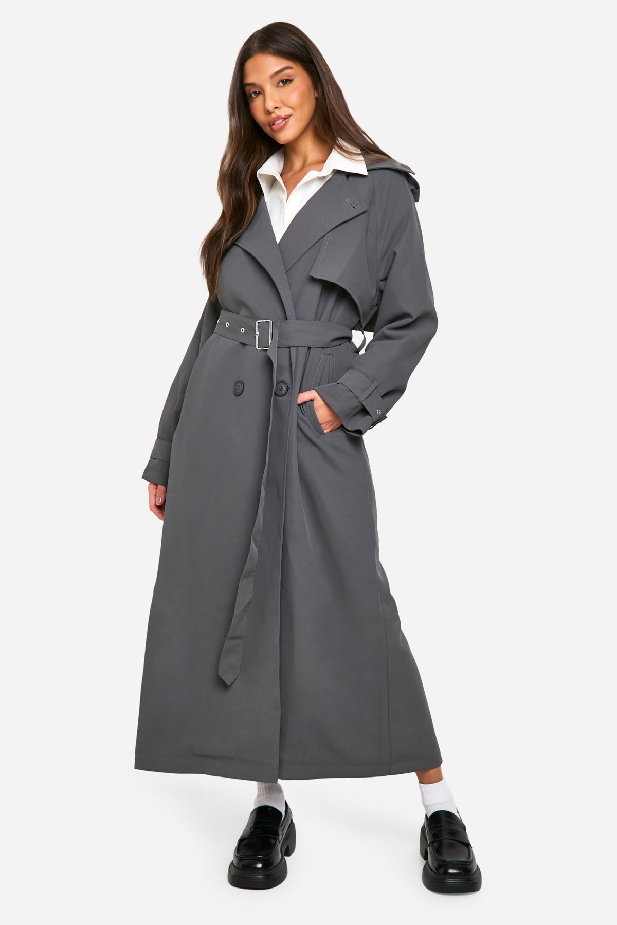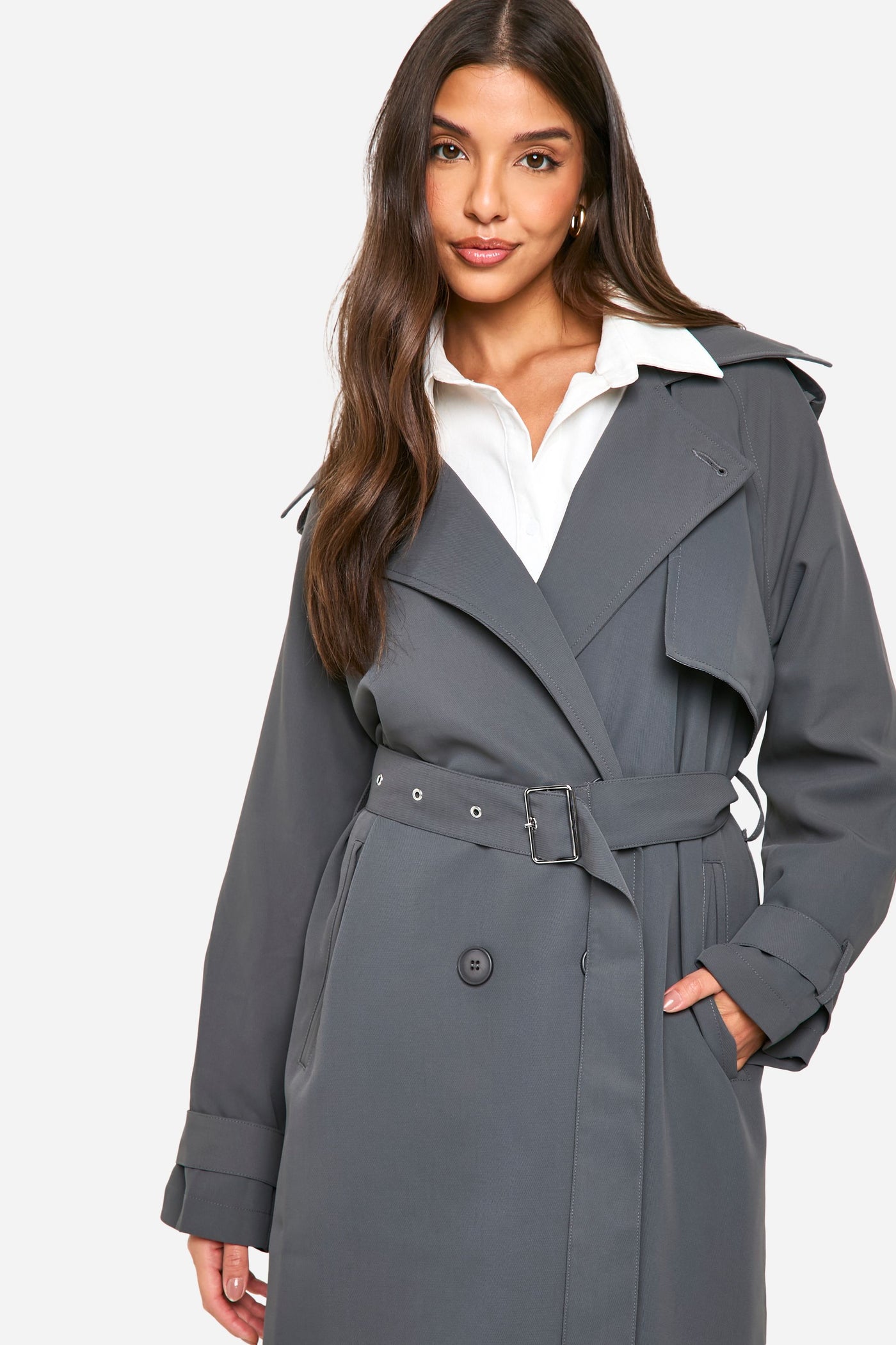 Make a bold statement with this oversized double-breasted trench coat. Perfect for the fashion-forward woman who wants to stay on-trend while battling the British weather. The generous cut allows for easy layering over chunky knits or sleek dresses, making it a versatile piece for your wardrobe. Style it with a crisp white shirt, black trousers, and chunky loafers for a modern take on classic office wear. For a more casual look, throw it over a simple tee and jeans, paired with trainers and a baseball cap. The adjustable belt lets you cinch in the waist for a more defined shape or leave it loose for a relaxed vibe. Whether you're heading to a family gathering or meeting friends for brunch, this trench coat will keep you looking effortlessly chic in any casual setting.Discover Oversized Double Breast Trench Coat available to buy online at us.boohoo.com. Available with quick delivery and easy return options. Shop now!Discover Oversized Double Breast Trench Coat available to buy online at us.boohoo.com. Available with quick delivery and easy return options. Shop now!