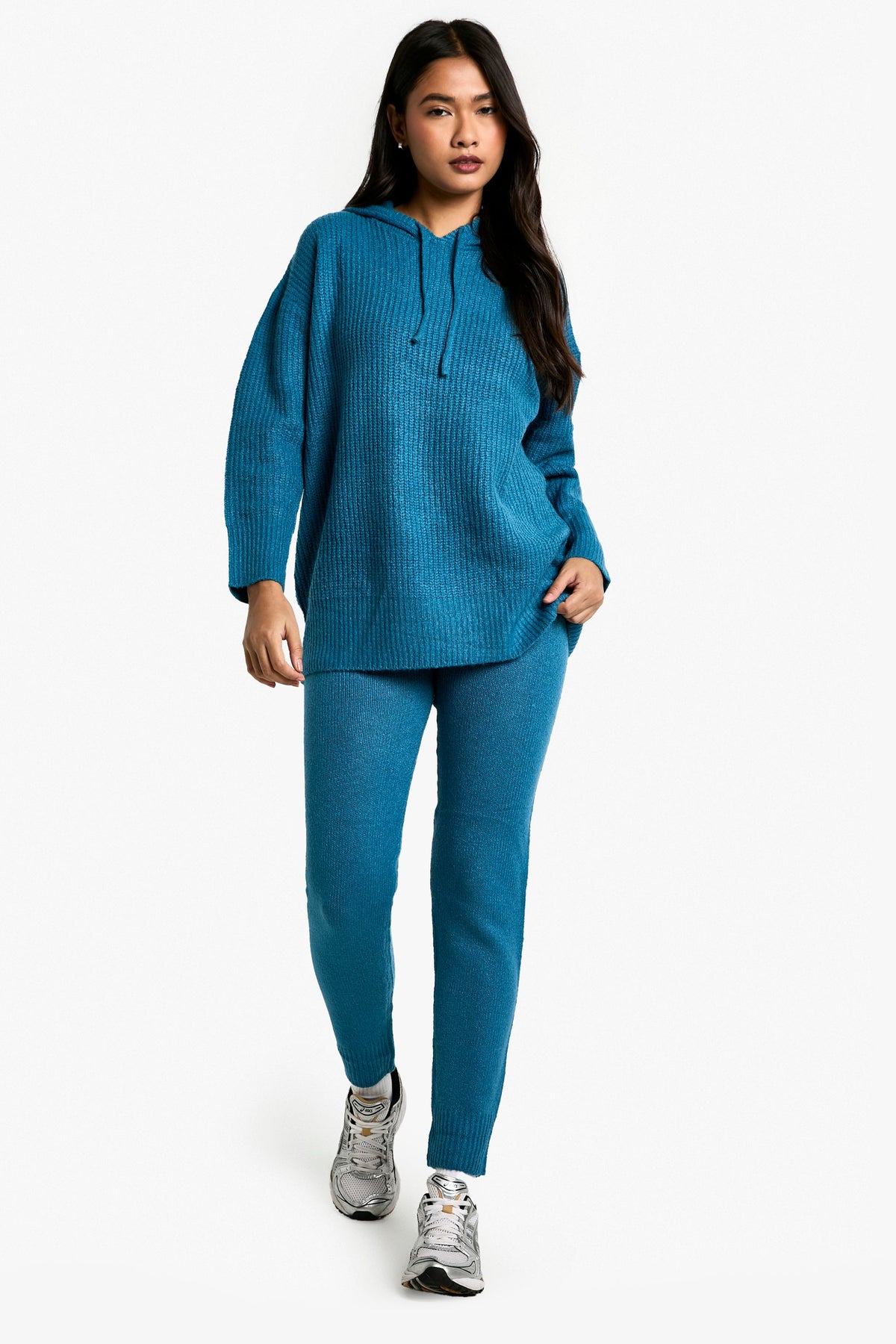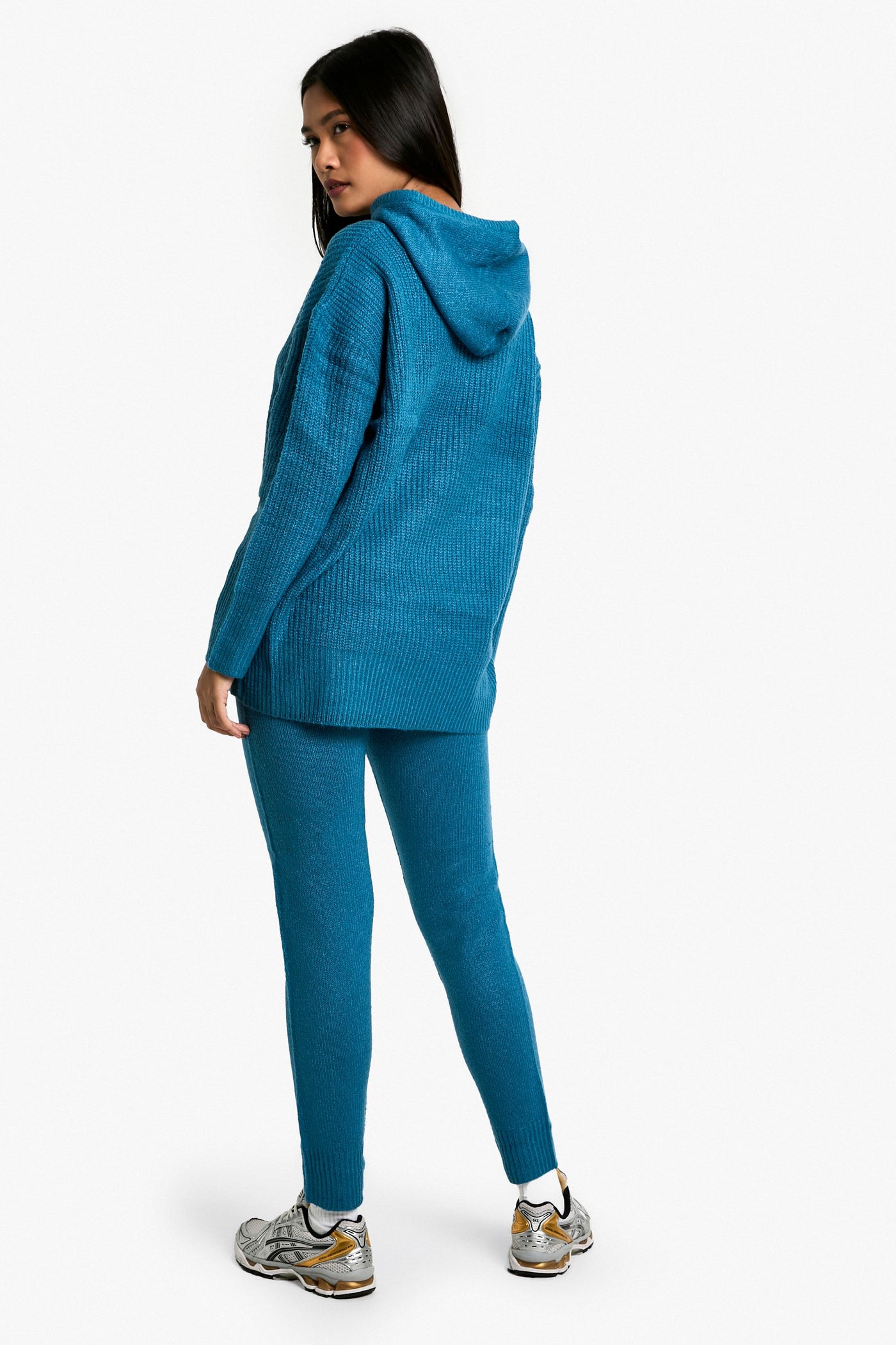 Cosy soft knit co-ord set featuring hoodie and trousers