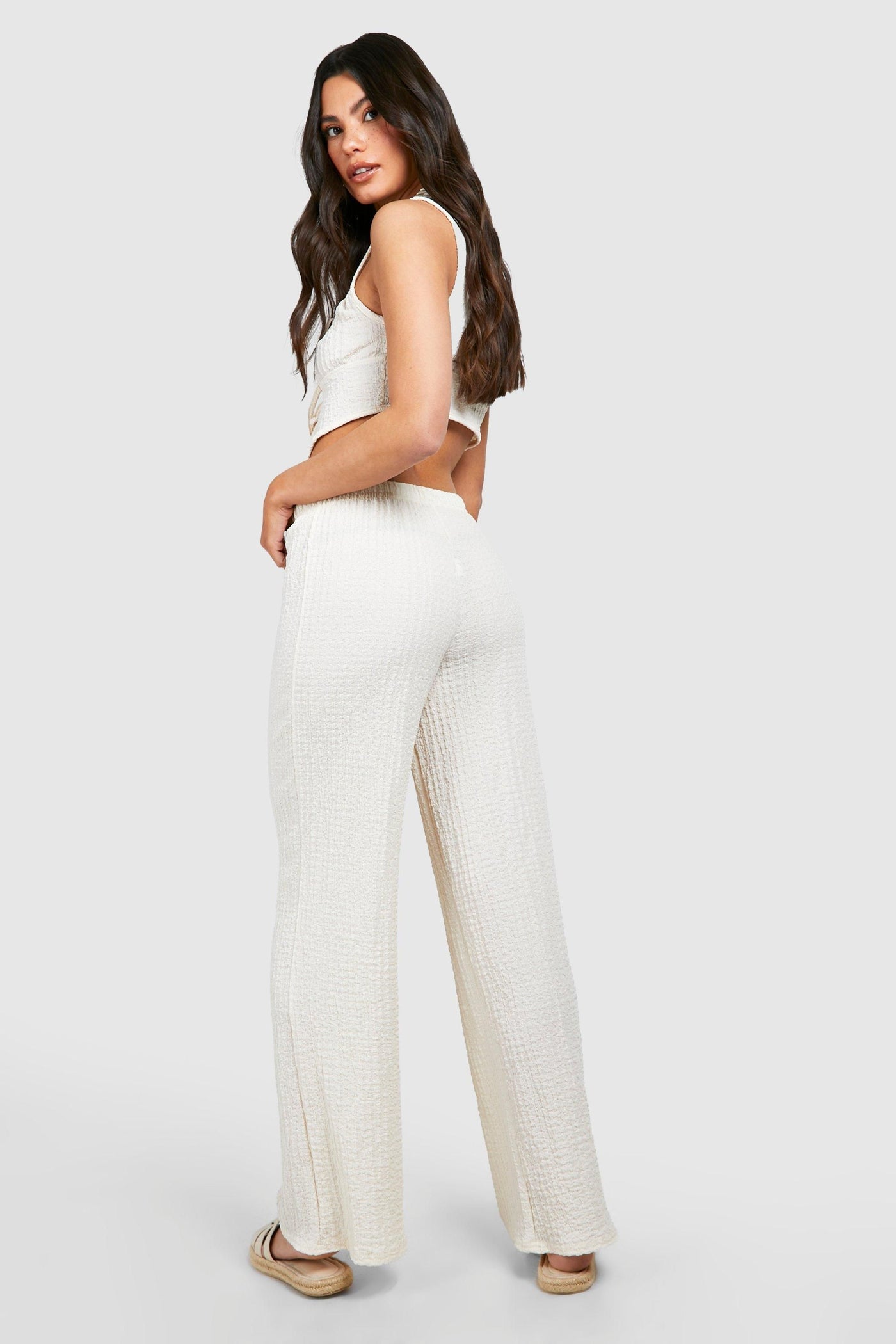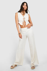Textured Crinkle Tie Front Top & Wide Leg Trousers