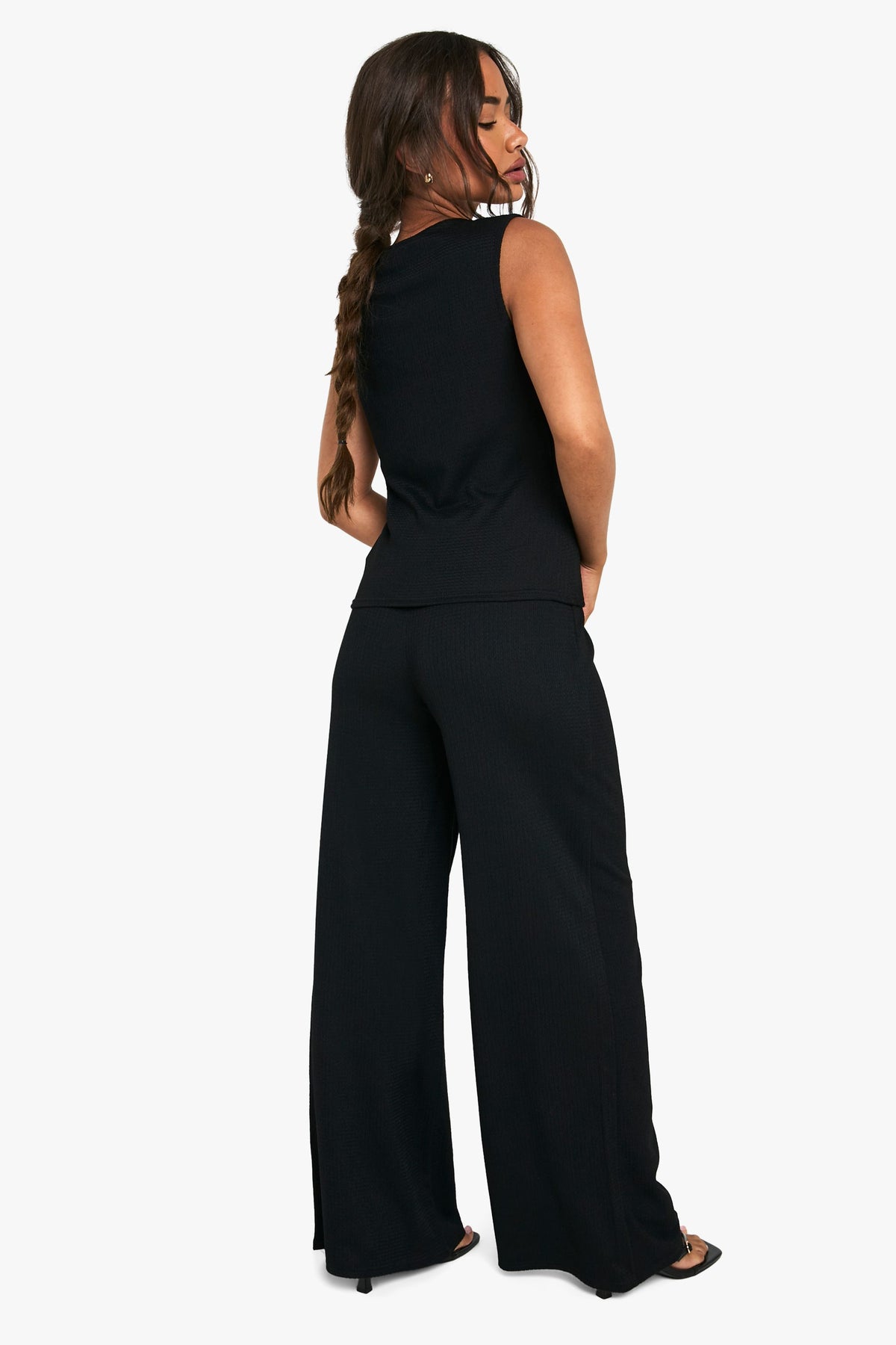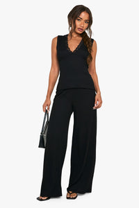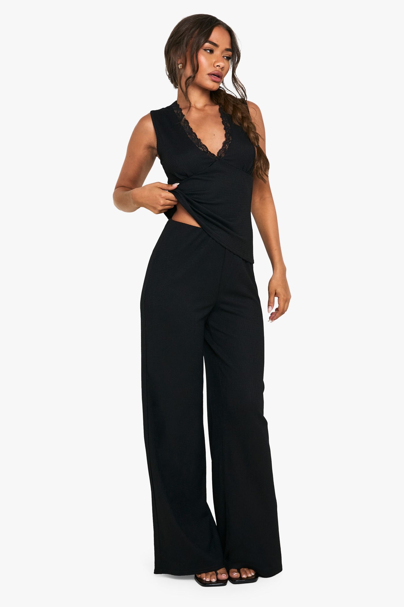 Make a statement with this versatile Textured Lace Trim Co-ord from Boohoo. The sleek V-neck top features beautiful lace detailing that frames the neckline with a touch of sophistication, whilst the wide leg trousers create a flowing, dramatic silhouette that moves gracefully with every step. Style with strappy sandals and a mini handbag for daytime gatherings, or dress up with statement earrings and heeled mules for evening drinks with the girls. For a more casual approach, pair with trainers and a denim jacket. The beauty of this co-ord lies in its flexibility - wear the pieces together for a cohesive look or separately to maximise your wardrobe options. Perfect for family gatherings, brunches or casual outings where comfort meets style.Discover Textured Lace Trim V Neck Top and Wide Leg Trouser Co-ord available to buy online at us.boohoo.com. Available with quick delivery and easy return options. Shop now!Discover Textured Lace Trim V Neck Top and Wide Leg Trouser Co-ord available to buy online at us.boohoo.com. Available with quick delivery and easy return options. Shop now!