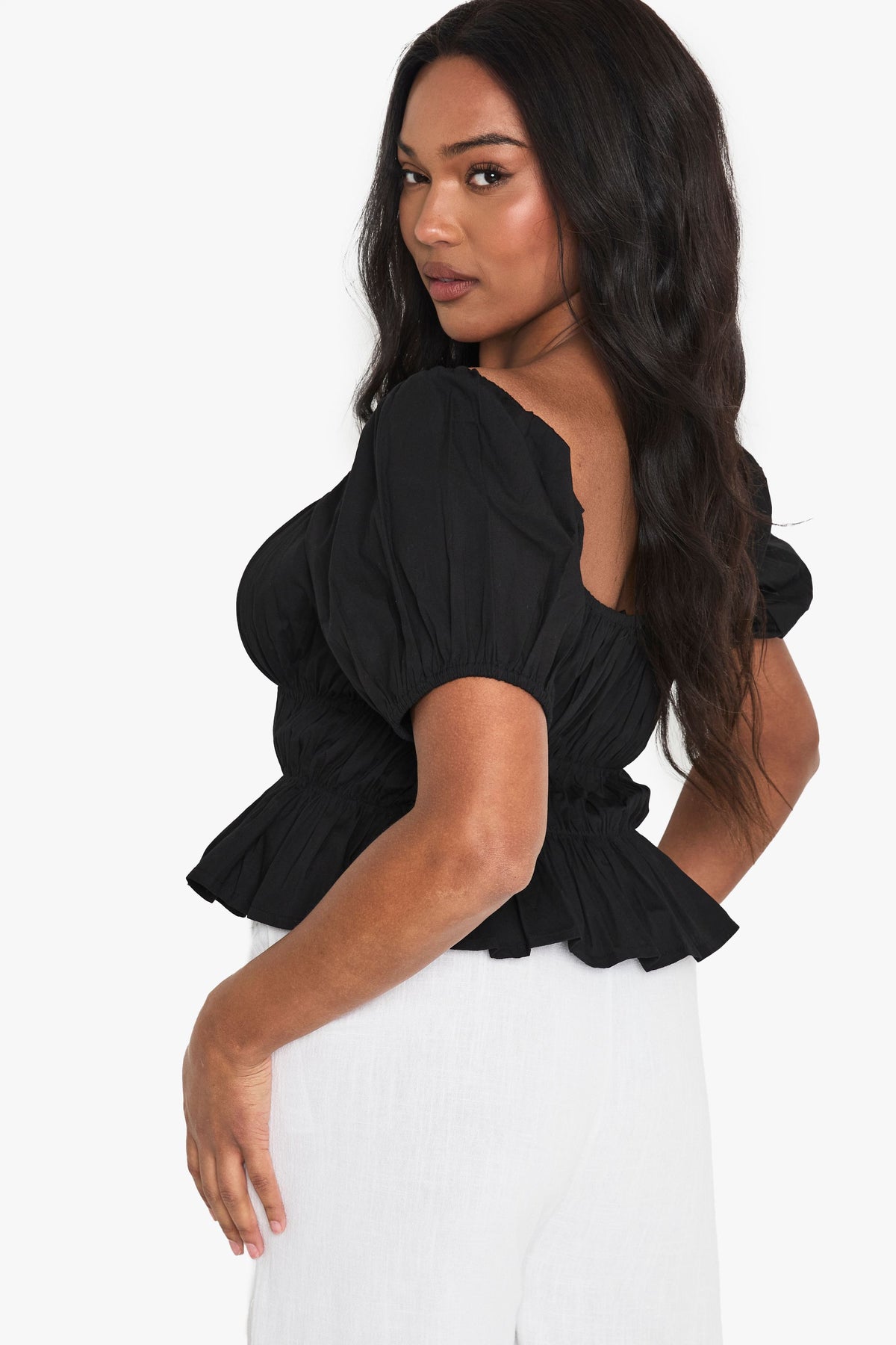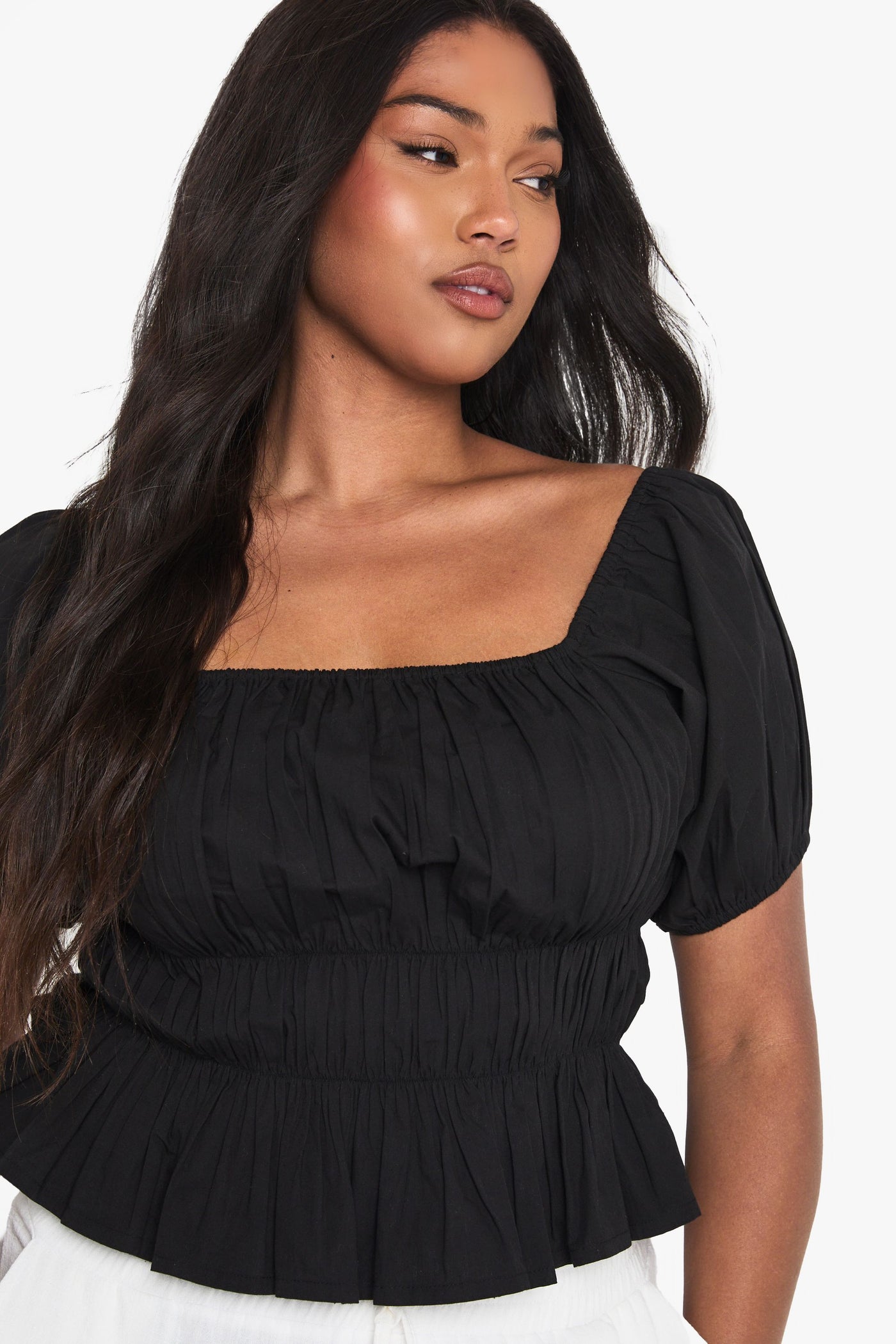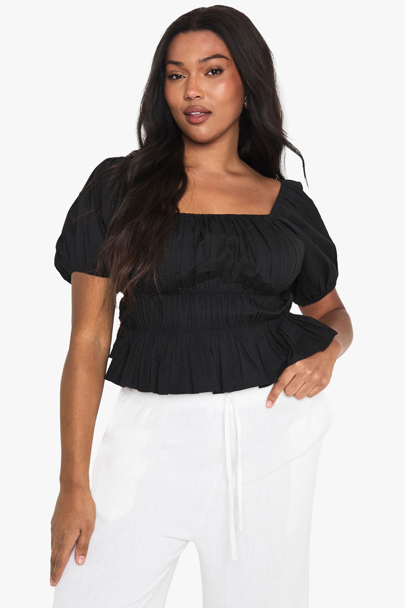 This charming off-shoulder top combines casual comfort with effortless style. The gathered cotton poplin creates a beautifully structured silhouette that cinches at the waist before flowing into a subtle peplum hem. Perfect for those who appreciate inclusive fashion with a trendy edge, this Boohoo piece works brilliantly with relaxed white trousers as shown, or pair with your favourite denim and trainers for daytime outings. For family gatherings or casual brunches, accessorise with statement earrings and a compact handbag. The versatile design transitions seamlessly from shopping trips to garden parties - simply switch your footwear from comfortable flats to espadrilles as the occasion demands. Available in plus sizes, this top celebrates curves whilst offering the latest in accessible fashion.Discover Plus Cotton Shirred Off The Shoulder Top available to buy online at us.boohoo.com. Available with quick delivery and easy return options. Shop now!Discover Plus Cotton Shirred Off The Shoulder Top available to buy online at us.boohoo.com. Available with quick delivery and easy return options. Shop now!
