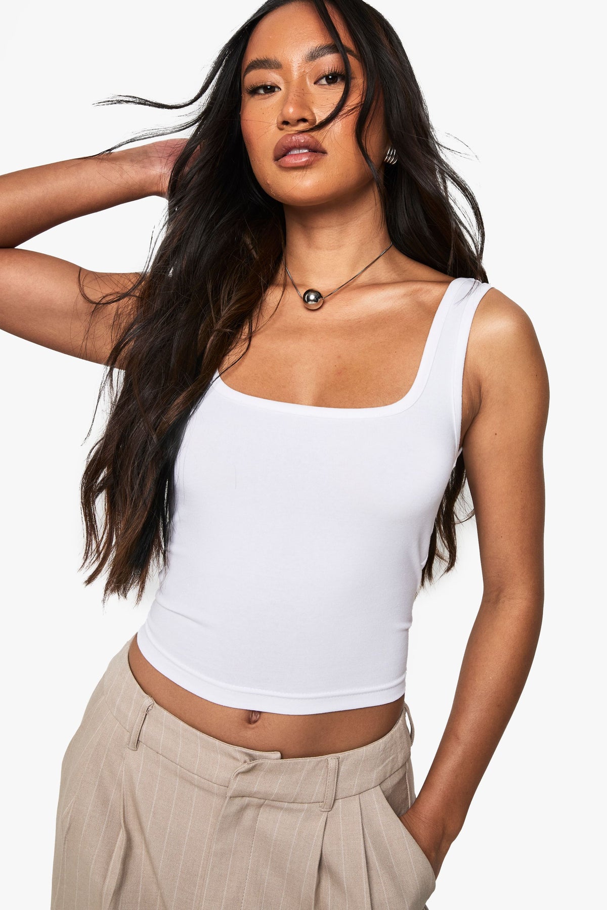 This essential Boohoo tank top combines comfort with contemporary style, making it a wardrobe staple for the fashion-forward woman. The square neckline adds a modern twist to this classic piece, while the cropped length works brilliantly with high-waisted trousers, as styled on our model. Layer under an oversized cardigan for casual daytime looks, or wear alone with tailored trousers and trainers for effortless weekend style. The form-fitting design can be dressed up with a blazer and statement jewellery for evening drinks, or kept casual with denim shorts for summer festivals. Its versatility makes it perfect for layering throughout the seasons, whilst the soft, stretchy fabric ensures all-day comfort without compromising on style.Discover Premium Super Soft Wide Strap Square Neck Vest available to buy online at us.boohoo.com. Available with quick delivery and easy return options. Shop now!Discover Premium Super Soft Wide Strap Square Neck Vest available to buy online at us.boohoo.com. Available with quick delivery and easy return options. Shop now!