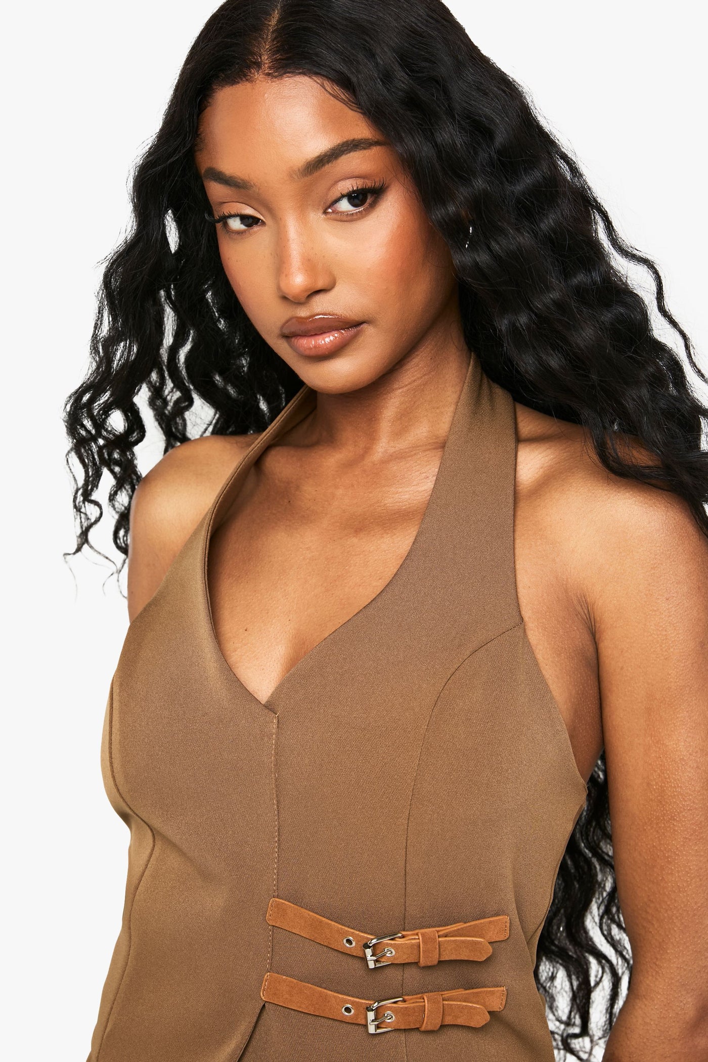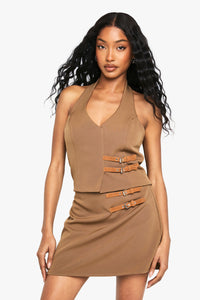 Make an unforgettable entrance in this distinctive neckholder vest with statement buckle detailing. The halterneck design frames your dcolletage beautifully, whilst the fitted silhouette creates a sleek profile that's perfect for after-dark adventures. Style with strappy heels and oversized hoop earrings for a club-ready ensemble, or dress it down with chunky boots and a leather jacket for drinks at your favourite bar. The versatile design works brilliantly layered under a blazer for a more structured look when meeting friends for cocktails. The stretchy fabric composition ensures this piece moves with you on the dance floor, making it an essential addition to your going-out wardrobe. This Boohoo statement piece embodies confidence and contemporary style for the fashion-forward night owl.Discover Buckle Detail Halterneck Waistcoat available to buy online at us.boohoo.com. Available with quick delivery and easy return options. Shop now!Discover Buckle Detail Halterneck Waistcoat available to buy online at us.boohoo.com. Available with quick delivery and easy return options. Shop now!