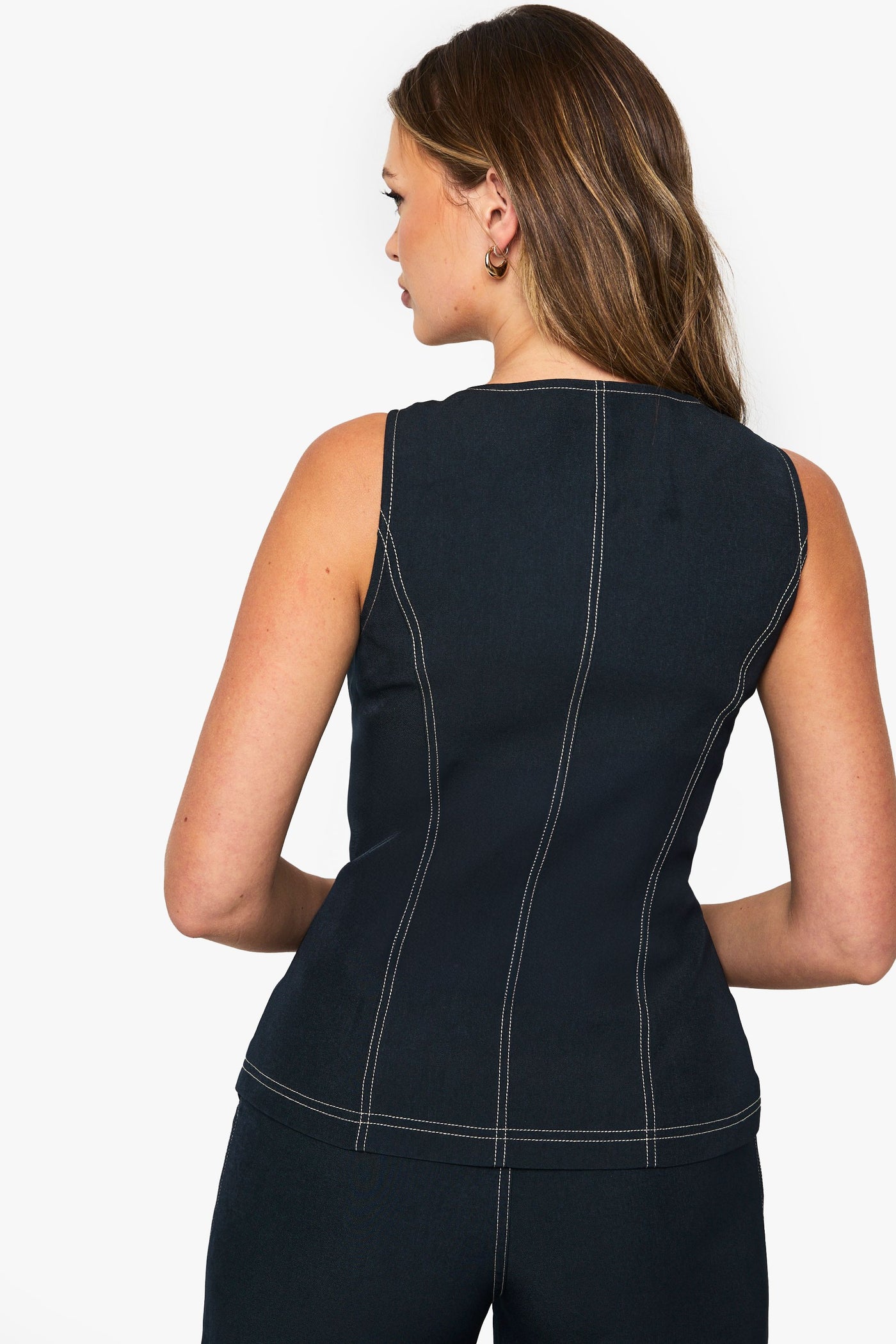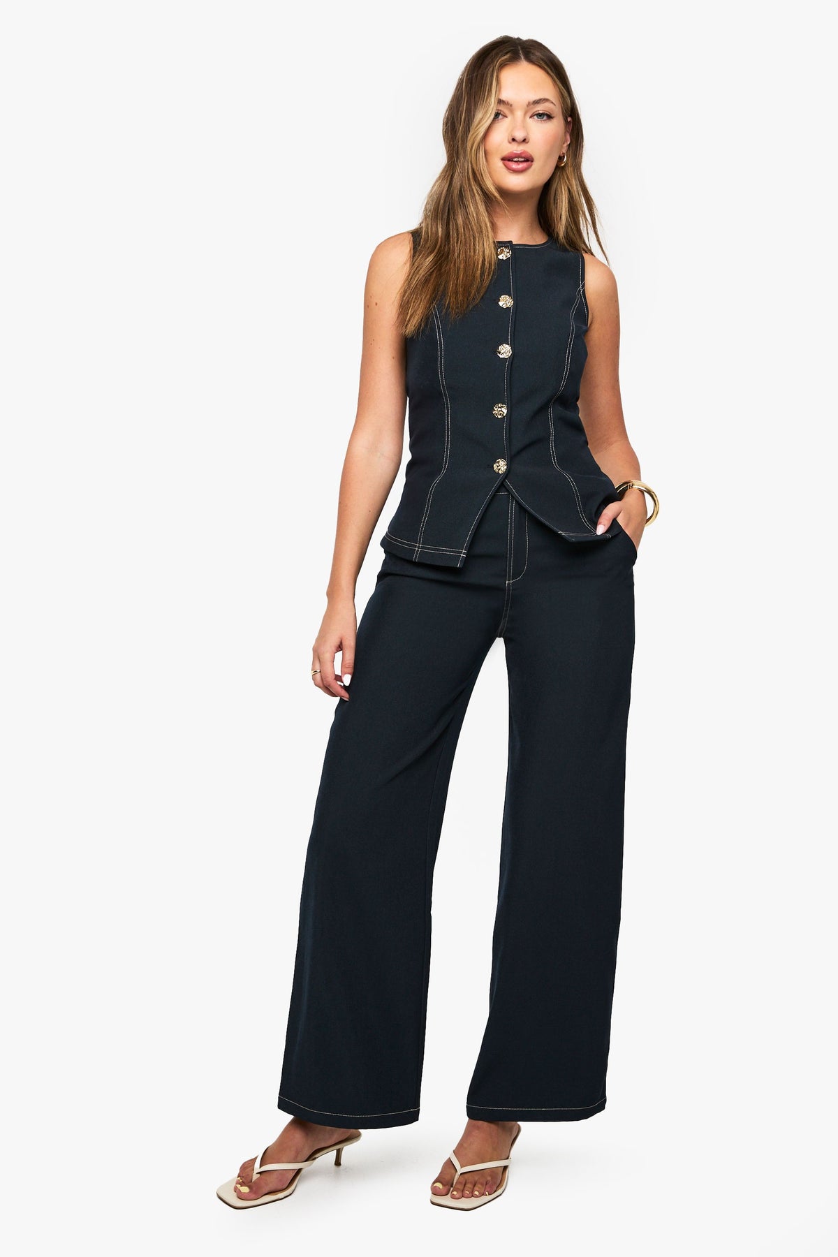 Make a statement with this contemporary waistcoat featuring eye-catching gold buttons and distinctive contrast stitching. The structured design creates a flattering silhouette whilst maintaining comfort for all-day wear. Style with the matching wide-leg trousers as seen on the model for a coordinated look that commands attention, or pair with your favourite jeans and heels for evening drinks. This versatile piece transitions effortlessly from office to weekend, working beautifully layered over a crisp white shirt for a smart casual ensemble or worn alone as a standout top for warmer evenings. The bandeau neckline offers a modern twist on traditional tailoring, making this waistcoat a must-have addition to your wardrobe that will see you through multiple seasons with endless styling possibilities.Discover Gold Button Contrast Stich Waistcoat available to buy online at us.boohoo.com. Available with quick delivery and easy return options. Shop now!Discover Gold Button Contrast Stich Waistcoat available to buy online at us.boohoo.com. Available with quick delivery and easy return options. Shop now!