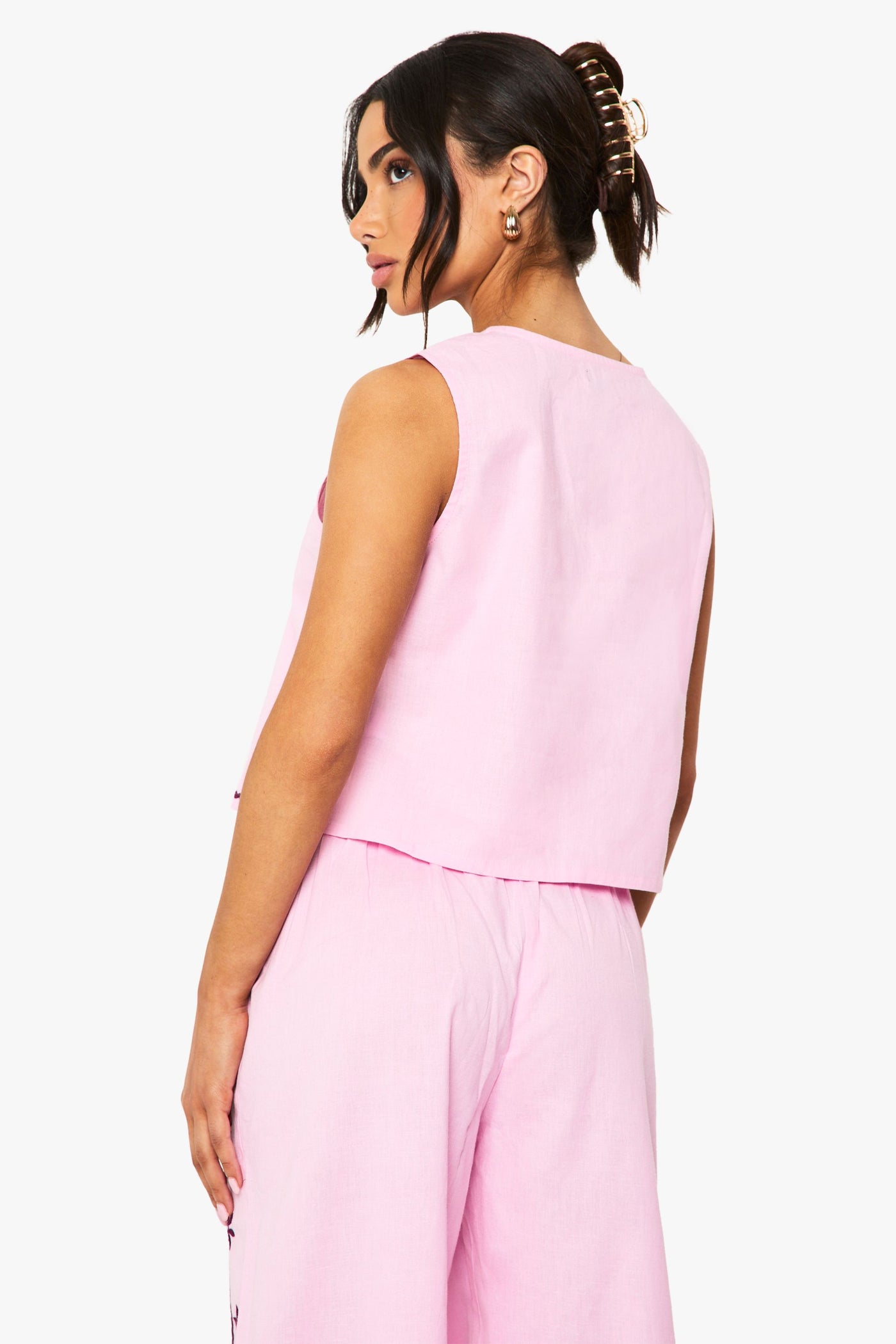 Boxy fit linen waistcoat with intricate floral embroidery detailing