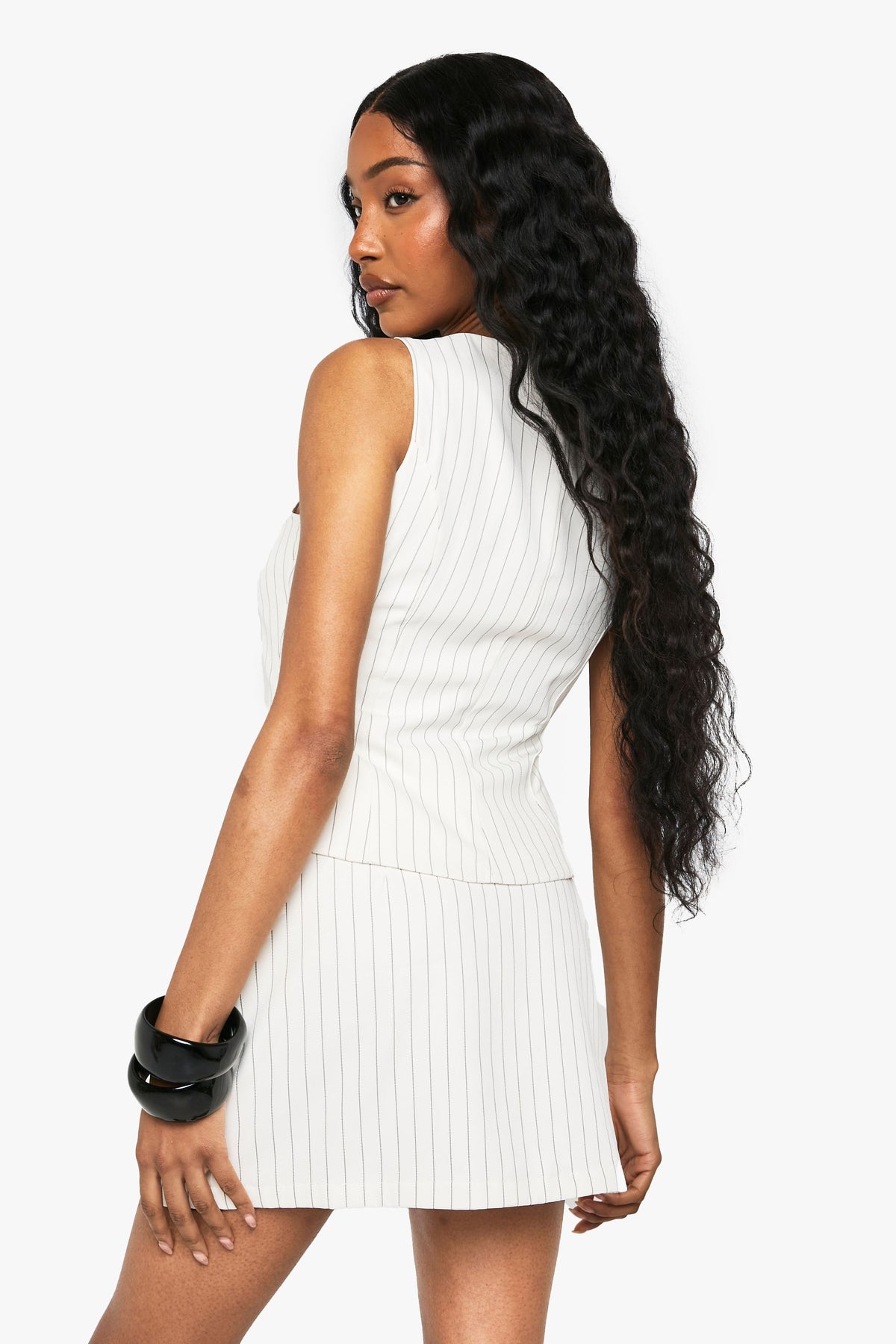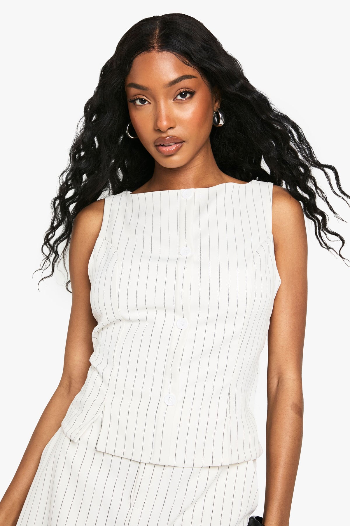 Make a striking impression in this pinstripe waistcoat, a contemporary twist on classic tailoring. The contrast buttons add a distinctive touch to this versatile piece that works brilliantly for nights out. Style it as seen with the matching mini skirt for a coordinated set that commands attention, or mix it up with high-waisted jeans and strappy heels for drinks with the girls. For an edgier look, layer over a sheer long-sleeve top and finish with chunky boots and statement jewellery. The structured silhouette flatters your figure whilst offering the flexibility to customise your look according to the occasion. Perfect for everything from casual bar meetups to more glamorous club nights, this waistcoat delivers fashion-forward style with the versatility that modern wardrobes demand.Discover Pinstripe High Neck Waistcoat available to buy online at us.boohoo.com. Available with quick delivery and easy return options. Shop now!Discover Pinstripe High Neck Waistcoat available to buy online at us.boohoo.com. Available with quick delivery and easy return options. Shop now!