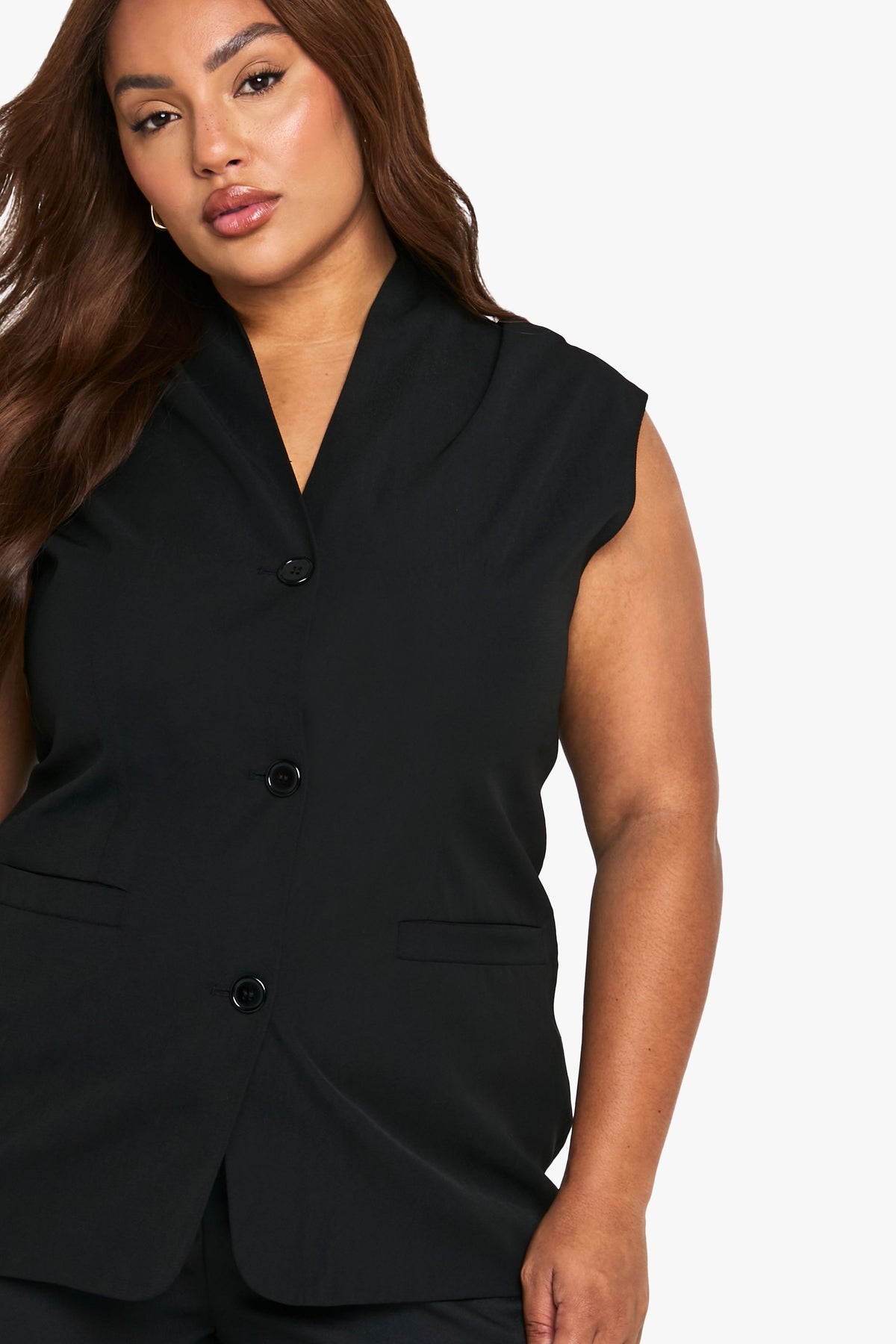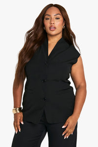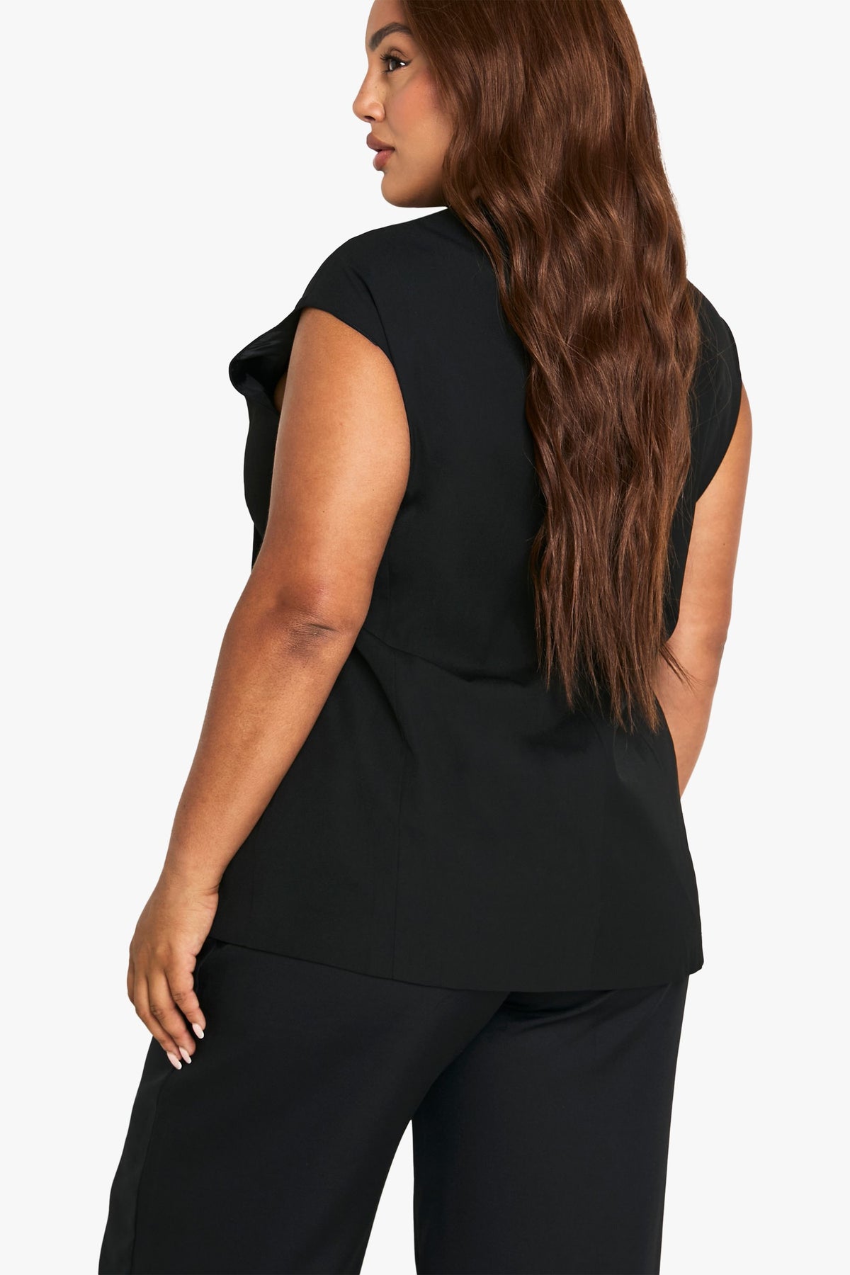 Plus Cap Sleeve Longline Tailored Waistcoat