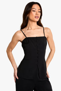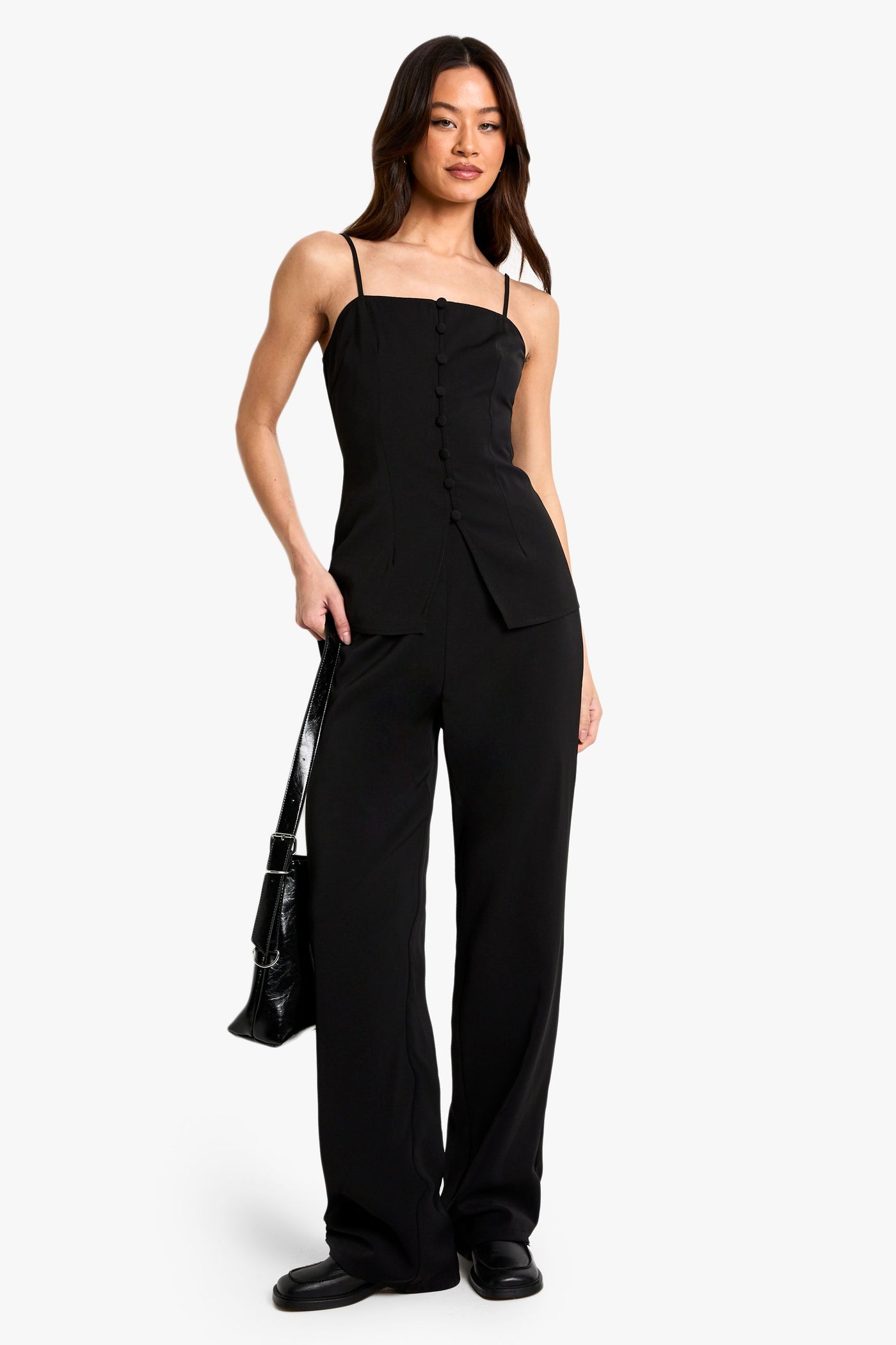 This sophisticated button-down top combines effortless style with versatility. The clean lines and structured woven fabric create a polished look that transitions seamlessly from day to night. Style as seen with wide-leg trousers for a coordinated ensemble that works brilliantly for casual gatherings or weekend brunches. For a more relaxed vibe, pair with your favourite denim and trainers. Layer under a blazer with tailored trousers for impromptu office meetings, or dress up with statement jewellery and heeled boots for evening drinks. The spaghetti straps and straight neckline offer a flattering frame for delicate necklaces, while the button-front detail allows for customised styling-wear fully buttoned for a sleek look or partially undone for a more relaxed feel.Discover Tall Woven Tailored Top available to buy online at us.boohoo.com. Available with quick delivery and easy return options. Shop now!Discover Tall Woven Tailored Top available to buy online at us.boohoo.com. Available with quick delivery and easy return options. Shop now!