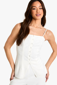 Tall woven top with elegant button-down front detail