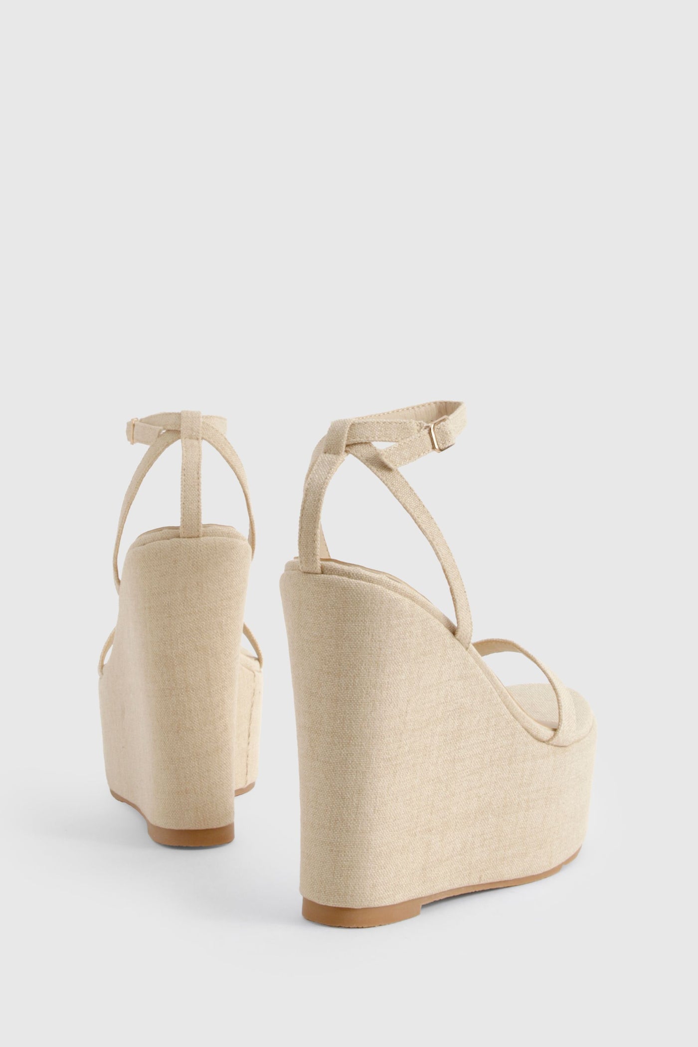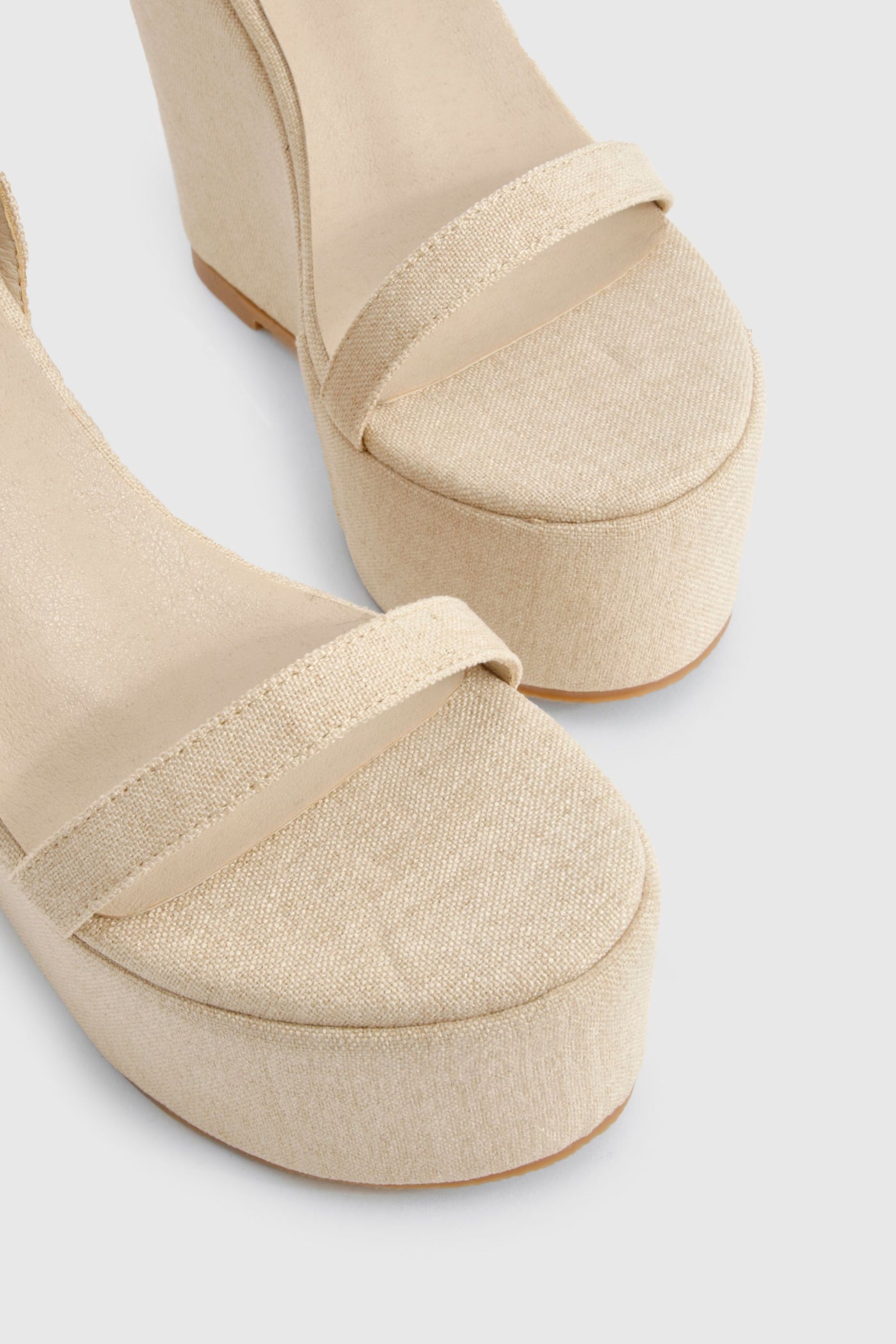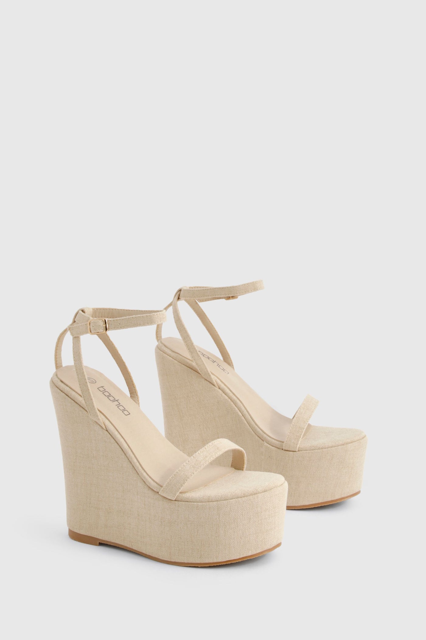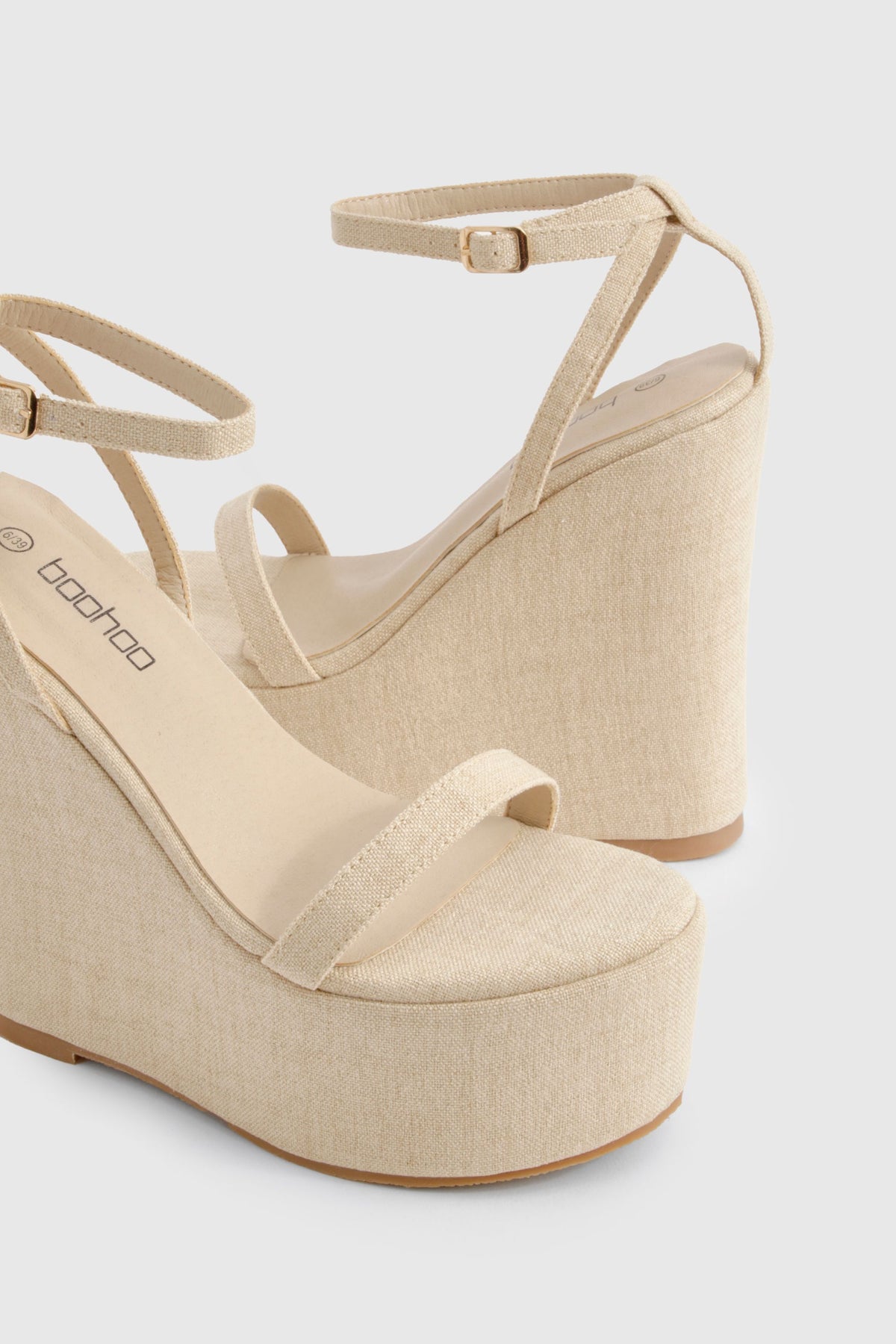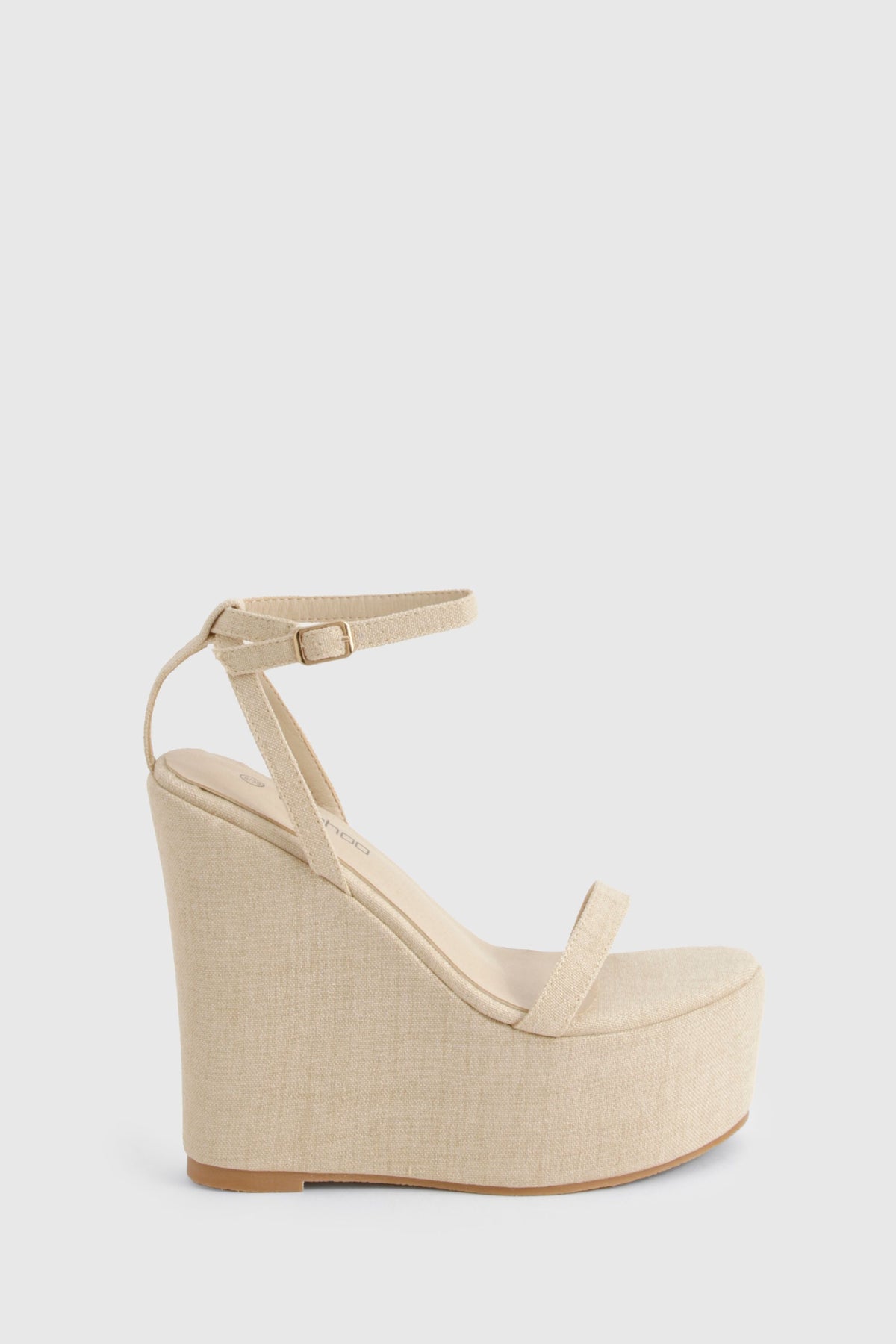 These statement platform wedges are the ultimate night-out essential for the fashion-forward partygoer. The dramatic silhouette features a substantial platform and towering 8cm wedge heel that creates leg-lengthening height whilst maintaining walkability for those long nights on the dance floor. The minimalist strappy design works brilliantly with both midi dresses and cropped trousers for versatile styling options. For a head-turning club ensemble, pair with a sequinned mini dress and oversized clutch. Alternatively, style with wide-leg trousers and a fitted bodysuit for drinks at a rooftop bar. The neutral fabric covering ensures these wedges will complement virtually any outfit in your wardrobe, making them a truly versatile investment piece for your going-out collection.Discover Linen 2 Part Platform Wedges available to buy online at us.boohoo.com. Available with quick delivery and easy return options. Shop now!Discover Linen 2 Part Platform Wedges available to buy online at us.boohoo.com. Available with quick delivery and easy return options. Shop now!