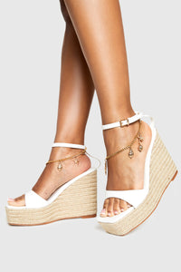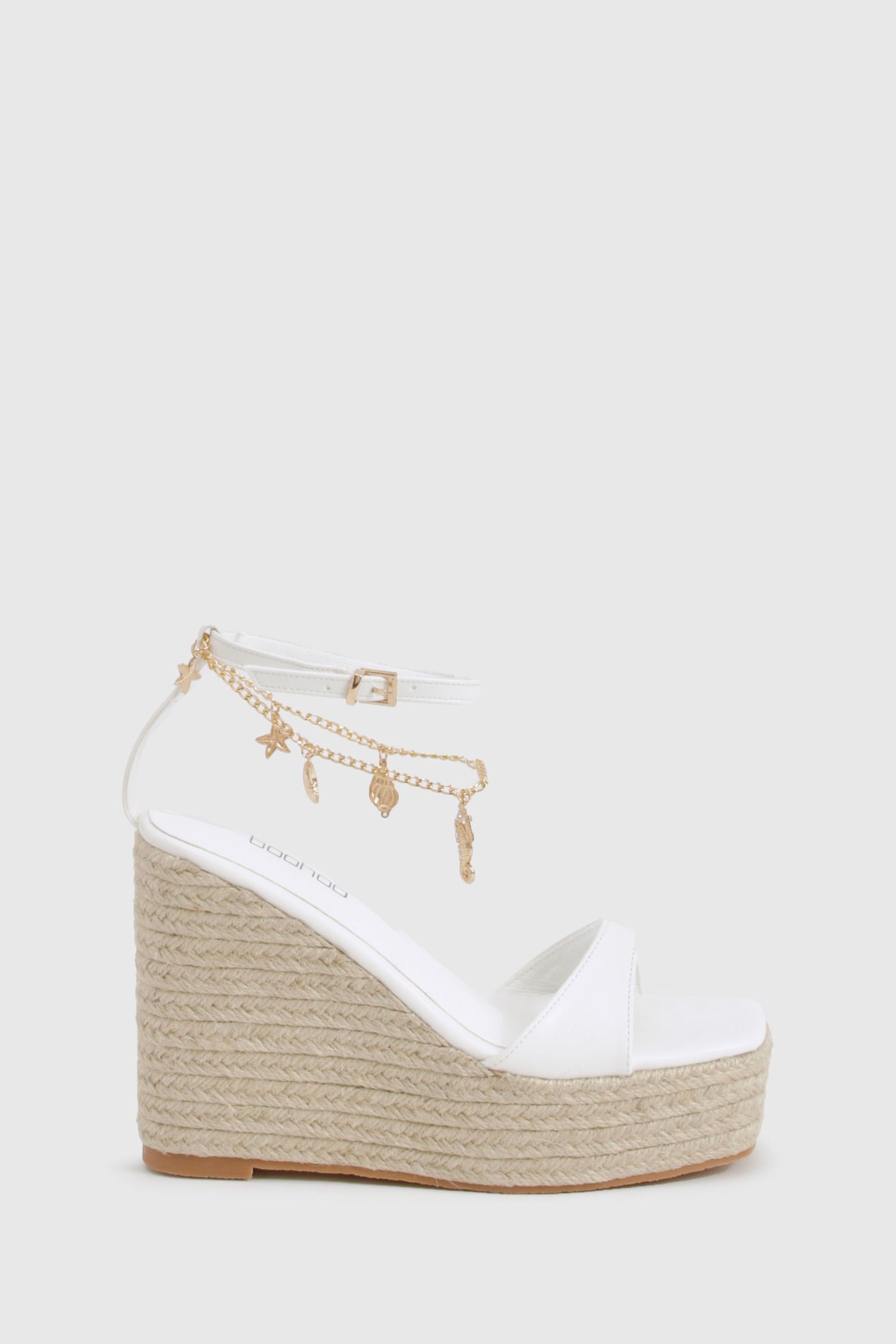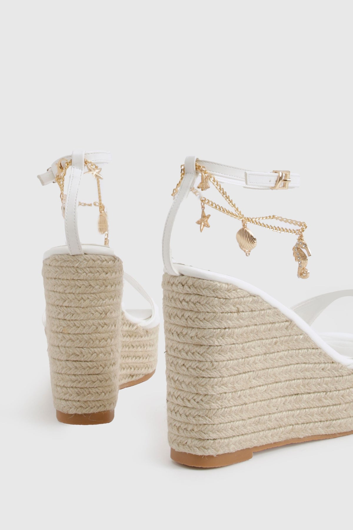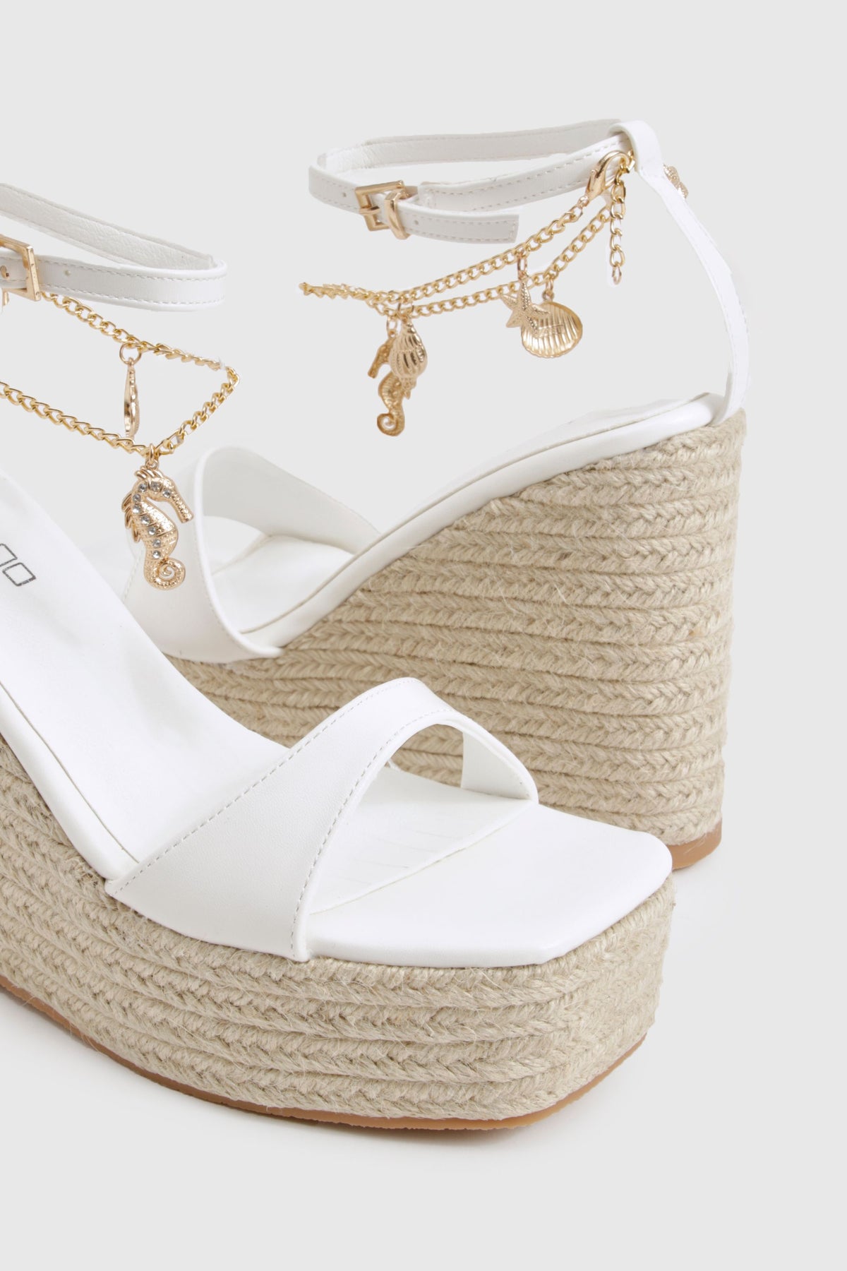 These statement wedges combine summer-ready style with night-out glamour. The high 8cm platform provides impressive height while remaining comfortable enough for dancing the night away. The delicate charm detailing featuring starfish motifs creates a distinctive look that draws attention with every step. Style these showstoppers with a flowing midi dress for drinks at a beachside bar, or pair with distressed denim shorts and an off-shoulder top when meeting friends for cocktails. The versatile design works brilliantly for daytime festivals or evening soires alike. The secure ankle strap ensures these beauties stay put no matter how lively the night becomes, while the textured platform adds a natural element to your going-out ensemble. Perfect for the fashion-forward woman who wants to make a statement without sacrificing comfort.Discover Starfish & Shell Charm Detail Wedges available to buy online at us.boohoo.com. Available with quick delivery and easy return options. Shop now!Discover Starfish & Shell Charm Detail Wedges available to buy online at us.boohoo.com. Available with quick delivery and easy return options. Shop now!