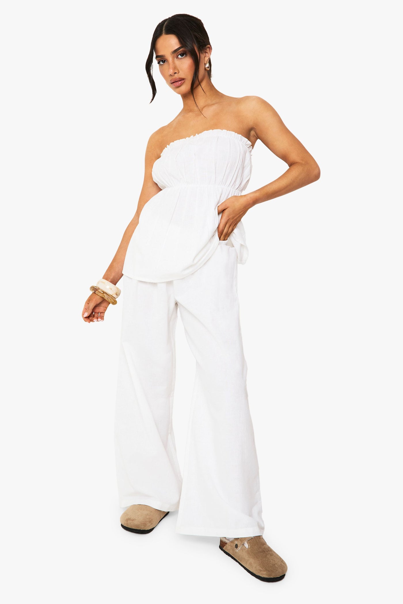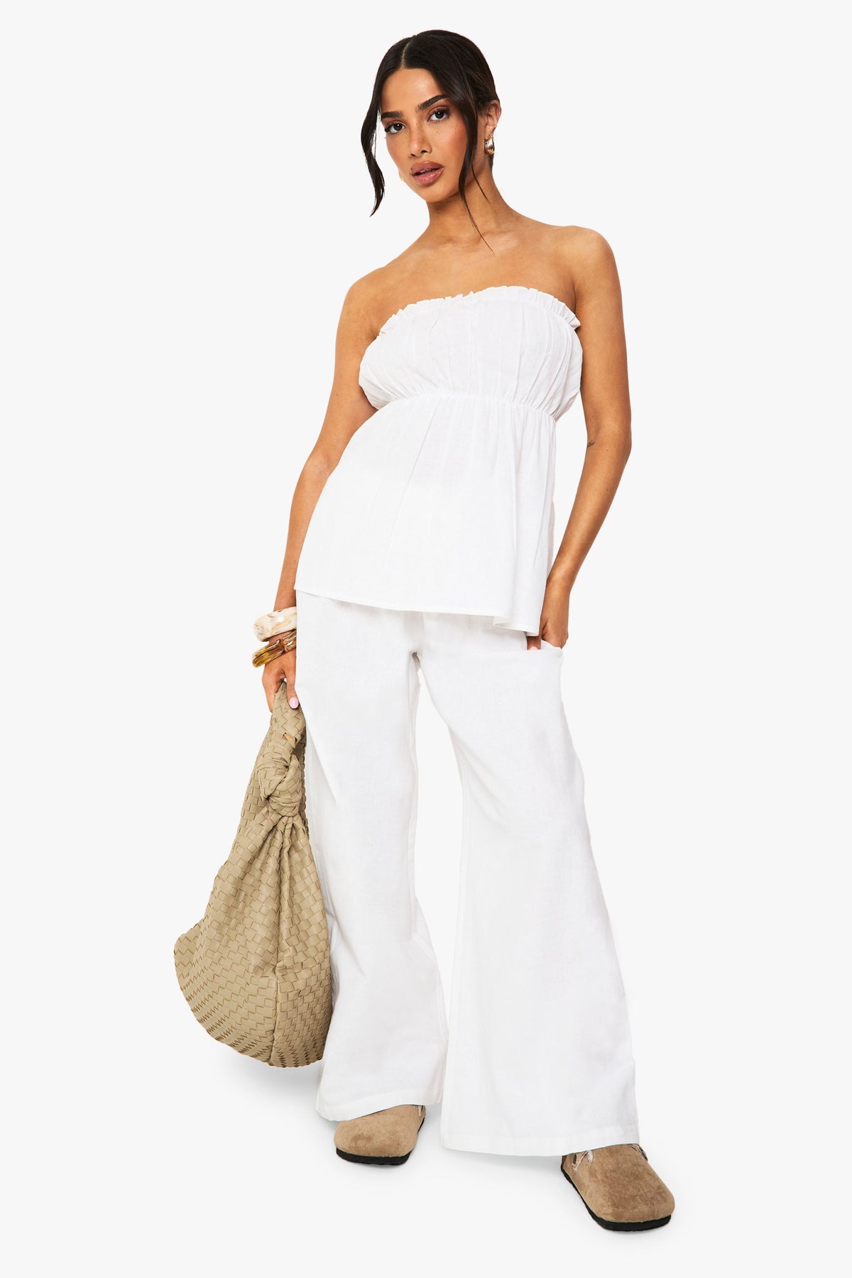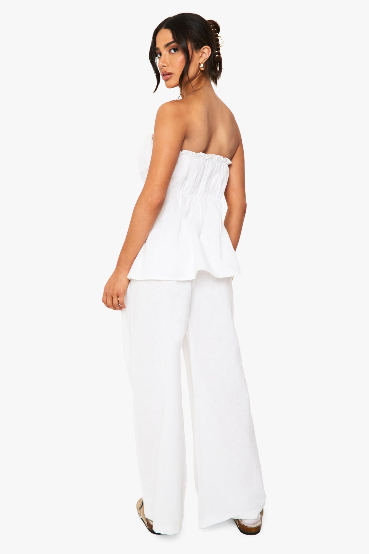 This effortlessly chic Boohoo Petite co-ord combines comfort with contemporary style. The bandeau top features delicate gathering that creates visual interest while the peplum shape adds a feminine touch to your silhouette. The wide-leg trousers offer a relaxed fit that moves beautifully with every step, creating a breezy, carefree look perfect for warmer days. Style this linen set with woven accessories as seen on our model - the natural straw bag complements the ensemble beautifully. For casual daytime events, pair with flat sandals or espadrilles, or dress up with wedges for garden parties and summer gatherings. The clean lines and minimalist design make this co-ord an essential addition to your warm-weather wardrobe, offering endless styling possibilities for the fashion-forward woman who values both comfort and trend-led style.Discover Petite Bandeau and Wide Leg Trouser Co ord available to buy online at us.boohoo.com. Available with quick delivery and easy return options. Shop now!Discover Petite Bandeau and Wide Leg Trouser Co ord available to buy online at us.boohoo.com. Available with quick delivery and easy return options. Shop now!