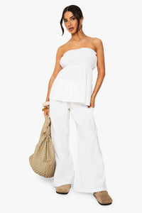 Breezy linen bandeau top with elegant gathered detailing across the bust