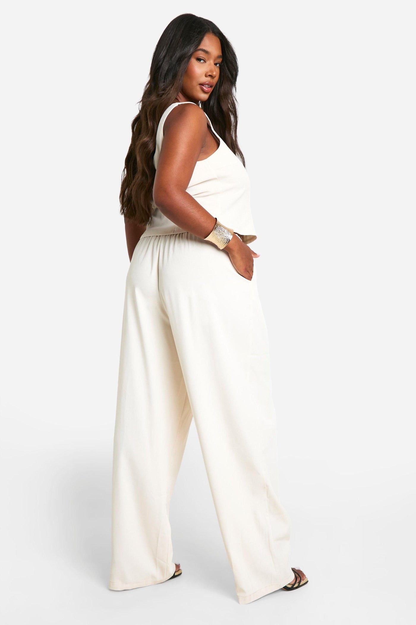 Make a statement with this striking plus-size co-ord set, perfect for your next night out. The corset-inspired top features a trendy hook and eye closure, creating a flattering shape that accentuates your curves. Paired with wide-leg trousers, this ensemble offers both comfort and style. The coordinated set allows for easy mixing and matching, giving you multiple outfit options. Whether you're heading to a club or meeting friends for drinks, this co-ord set is sure to turn heads. Style it with strappy heels and a clutch bag for a glamorous evening look, or dress it down with trainers and a denim jacket for a more casual vibe. The versatile woven fabric ensures you'll feel confident and comfortable all night long. Embrace your individuality and showcase your fashion-forward style with this must-have Boohoo ensemble.Discover Plus Hook And Eye Corset And Slouchy Wide Leg Trouser Co-ord available to buy online at us.boohoo.com. Available with quick delivery and easy return options. Shop now!Discover Plus Hook And Eye Corset And Slouchy Wide Leg Trouser Co-ord available to buy online at us.boohoo.com. Available with quick delivery and easy return options. Shop now!